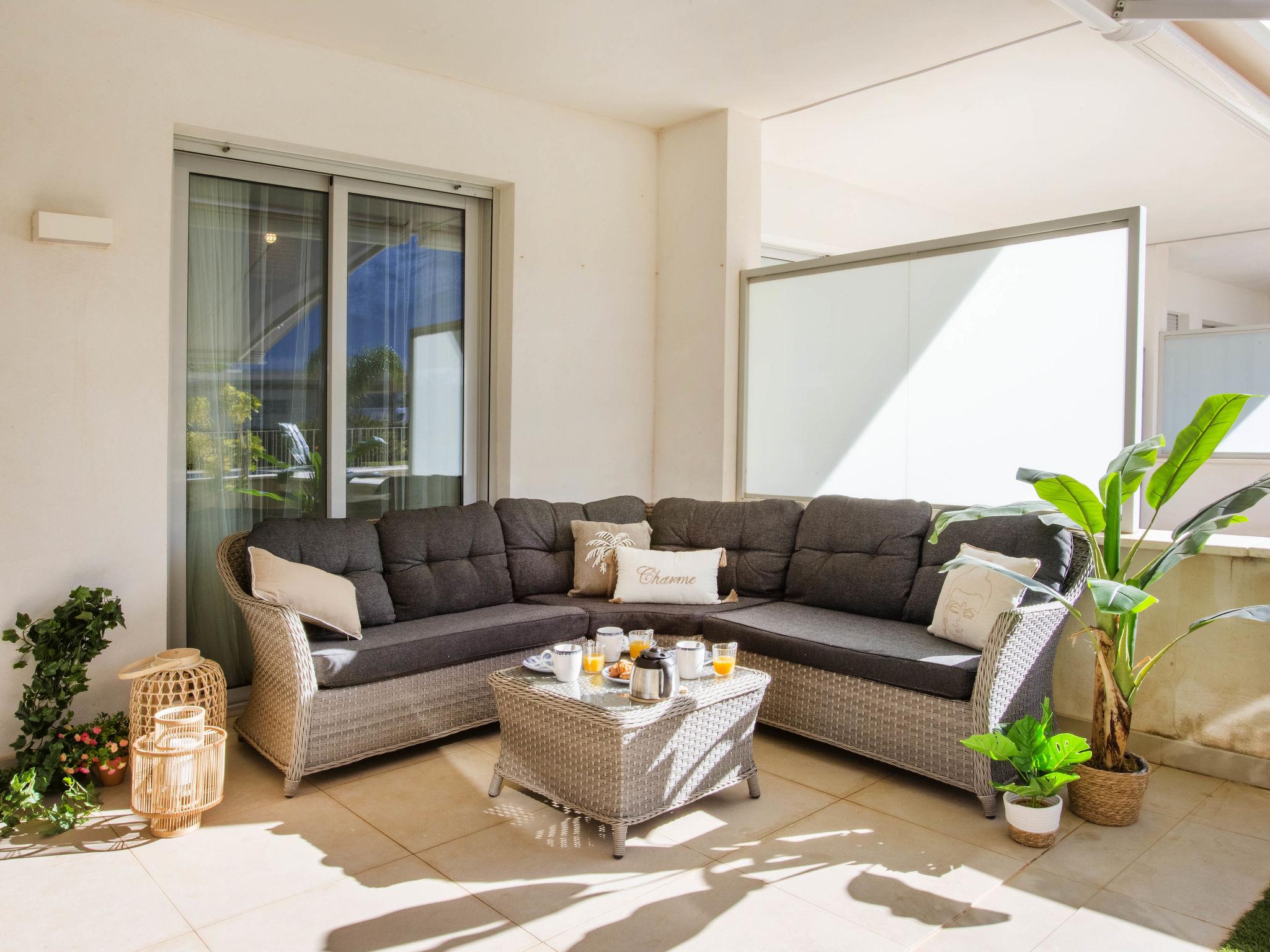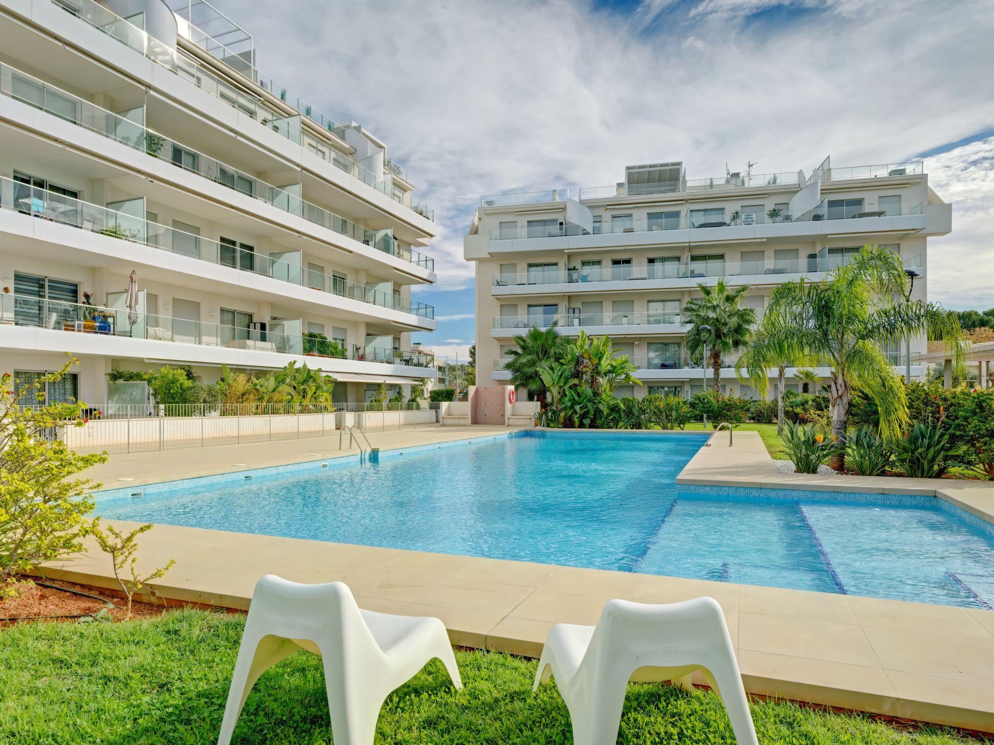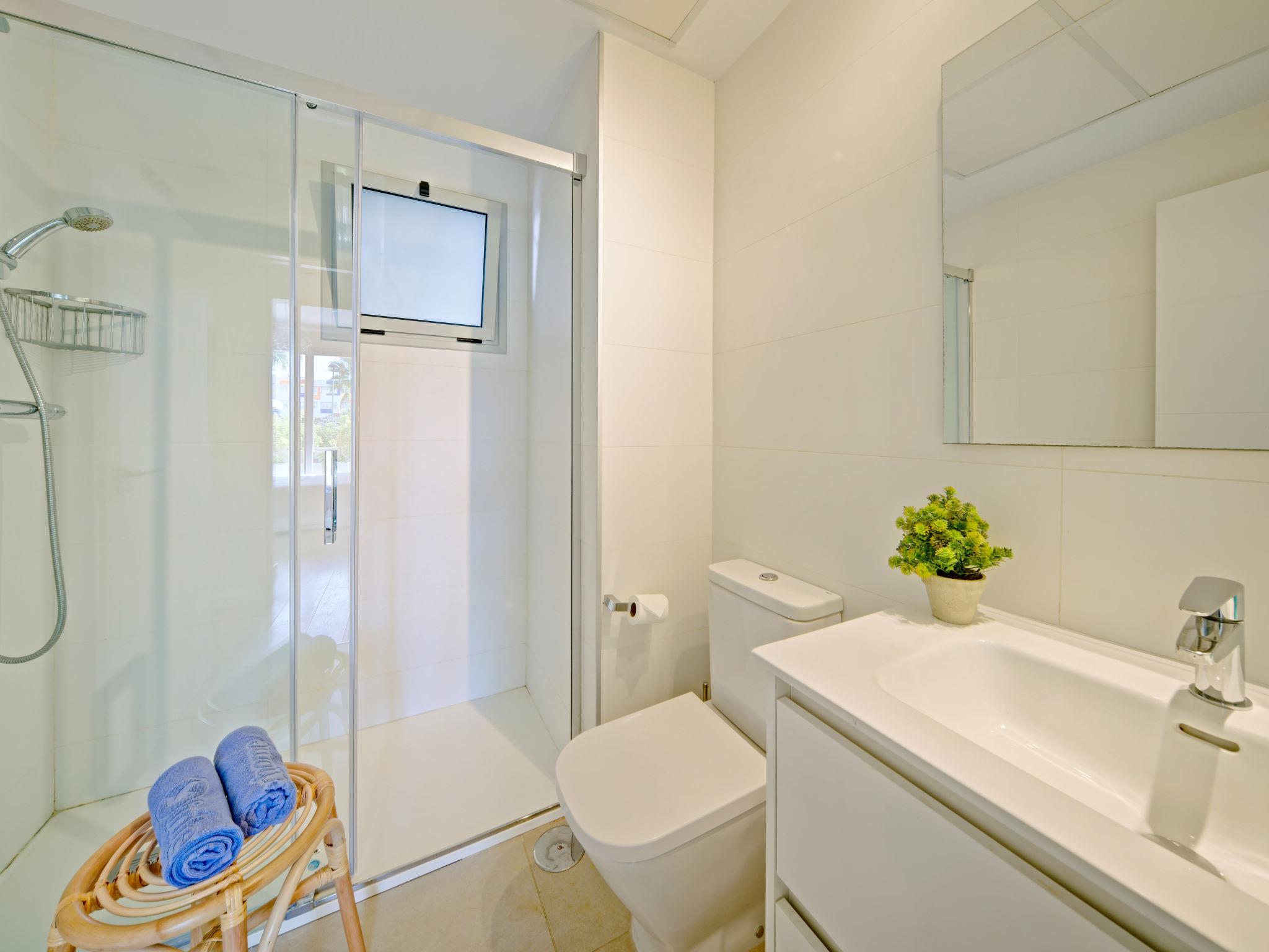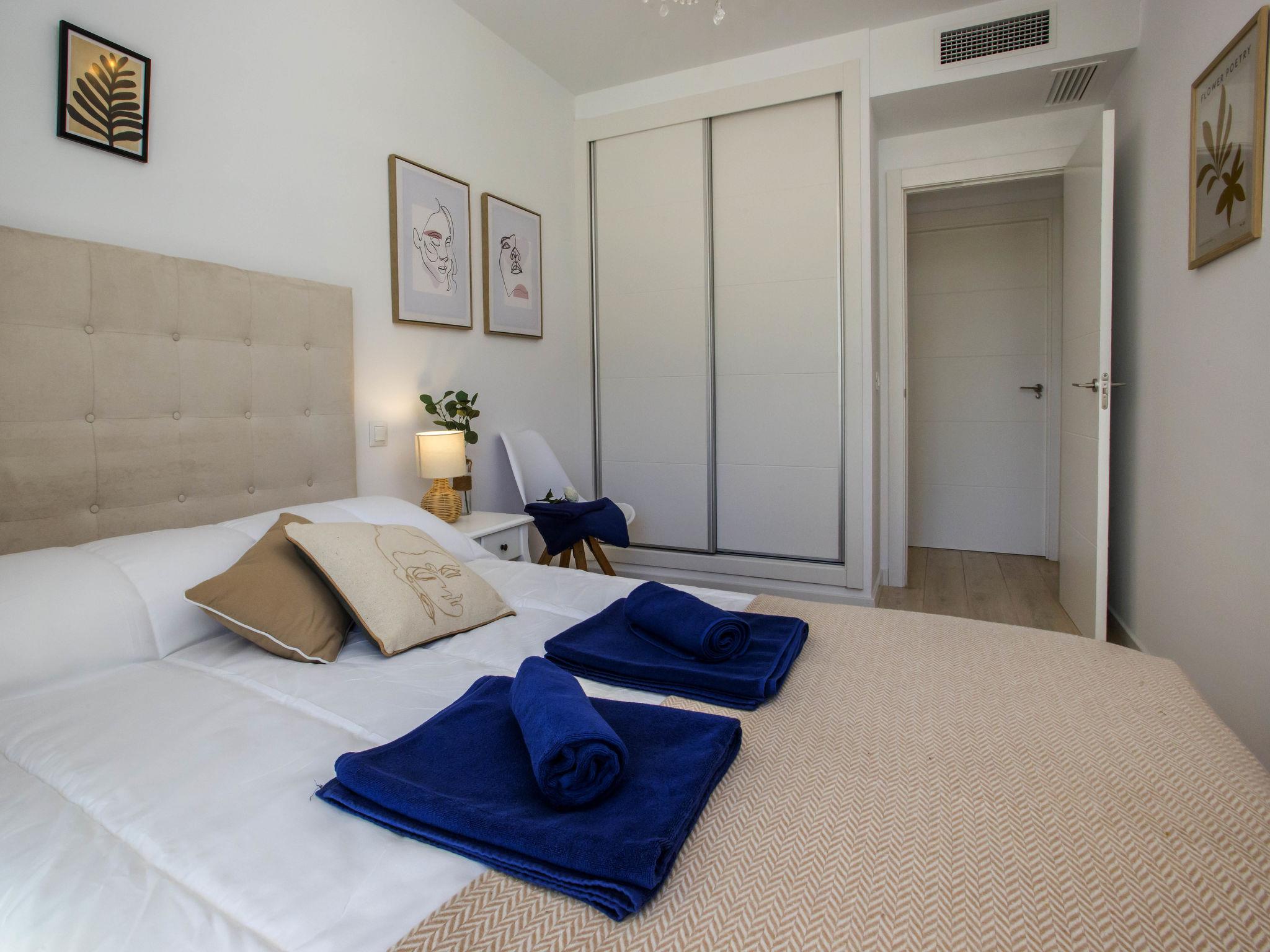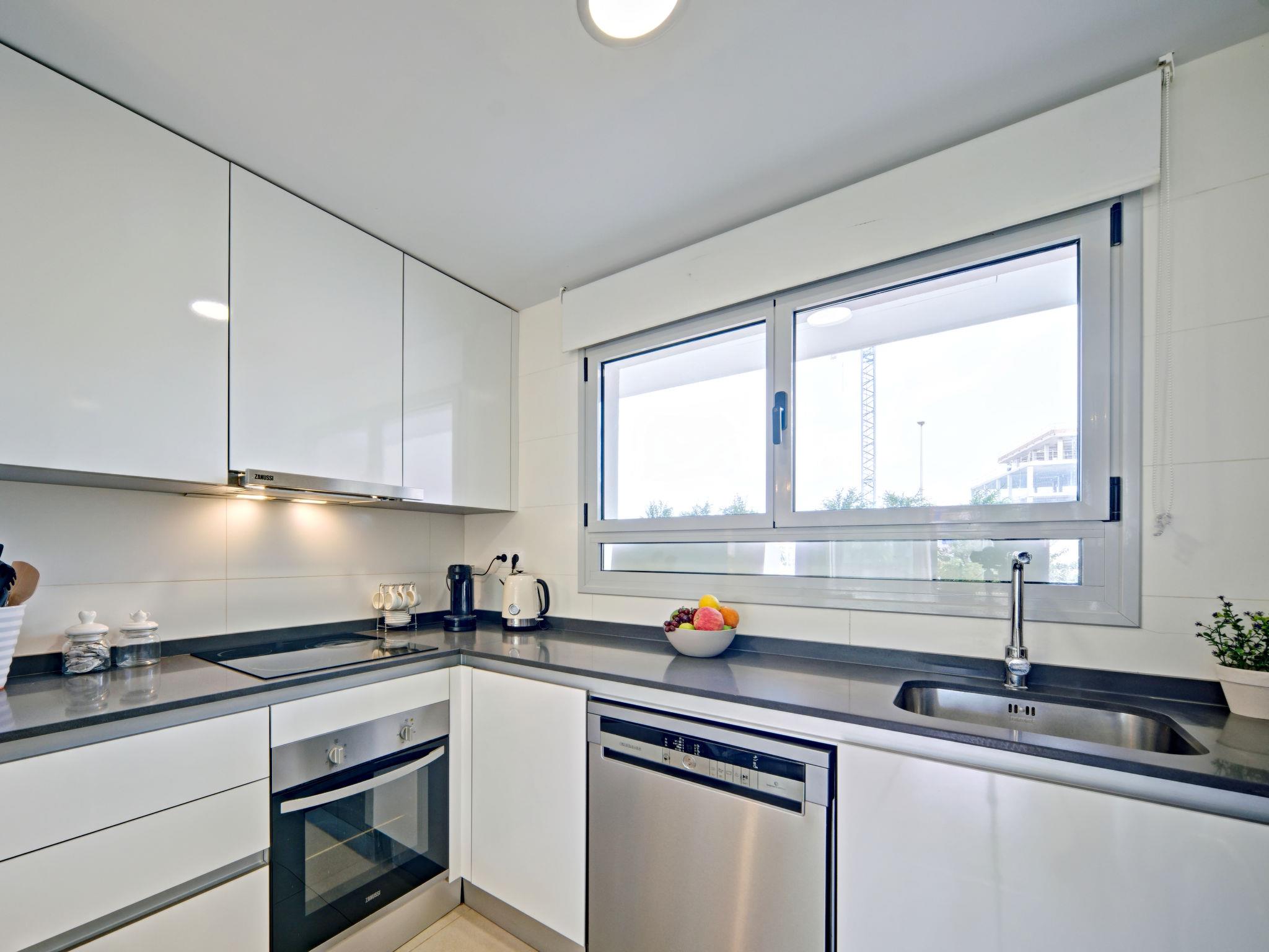 "Marina Real I", 3-room apartment 70 m2. Spacious and bright, very beautiful and stylish furnishings: living/dining room with digital TV, air conditioning and forced-air heating. Exit to the patio, to the swimming pool. 1 room with 1 french bed (160 cm, length 200 cm), shower/WC, air conditioning and forced-air heating. Exit to the terrace. 1 room with 1 french bed (140 cm, length 200 cm), air conditioning and forced-air heating. Exit to the terrace. Open kitchen (oven, dishwasher, 3 induction hot plates, toaster, kettle, microwave, freezer, electric coffee machine, Capsules for coffee machine (Senseo) extra). Shower/WC. Large terrace 40 m2. Terrace furniture, covered balcony. Very beautiful view of the mountains. Facilities: washing machine, dryer, iron, children's high chair, baby cot, hair dryer. Internet (WiFi, free). Garage space n 49. Please note: non-smokers only. CV-VUT0514959-A // Reg. Nr.: ESFCTU0000030550008251430000000000000CV-VUT0514959-A8