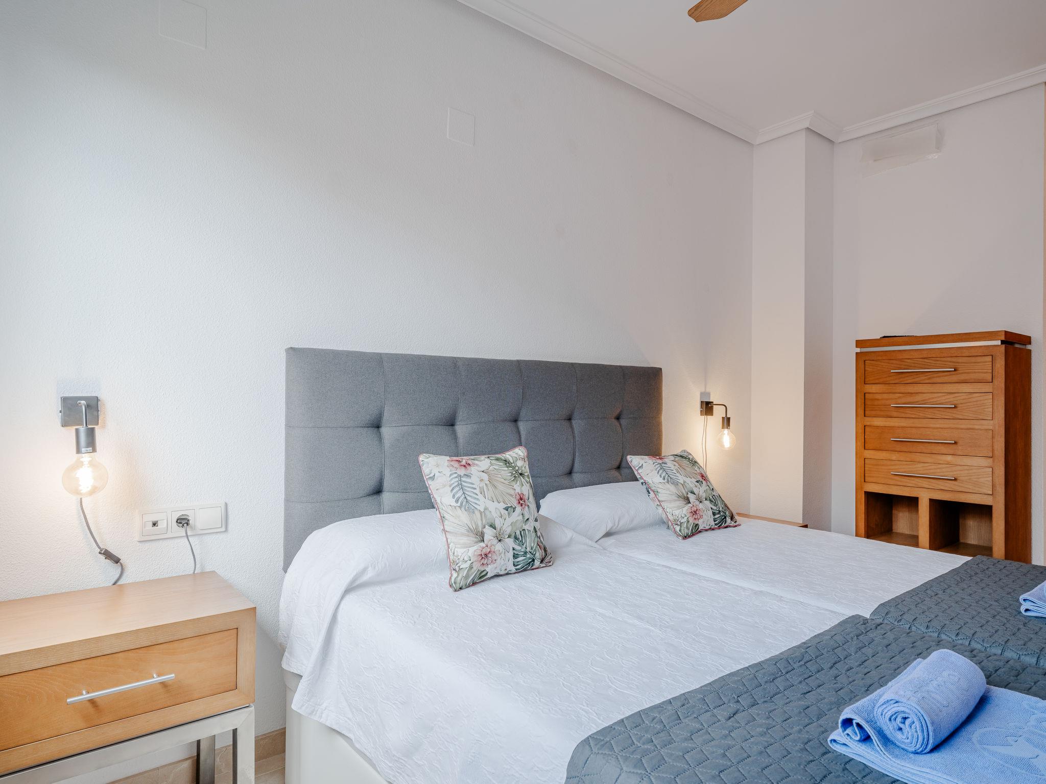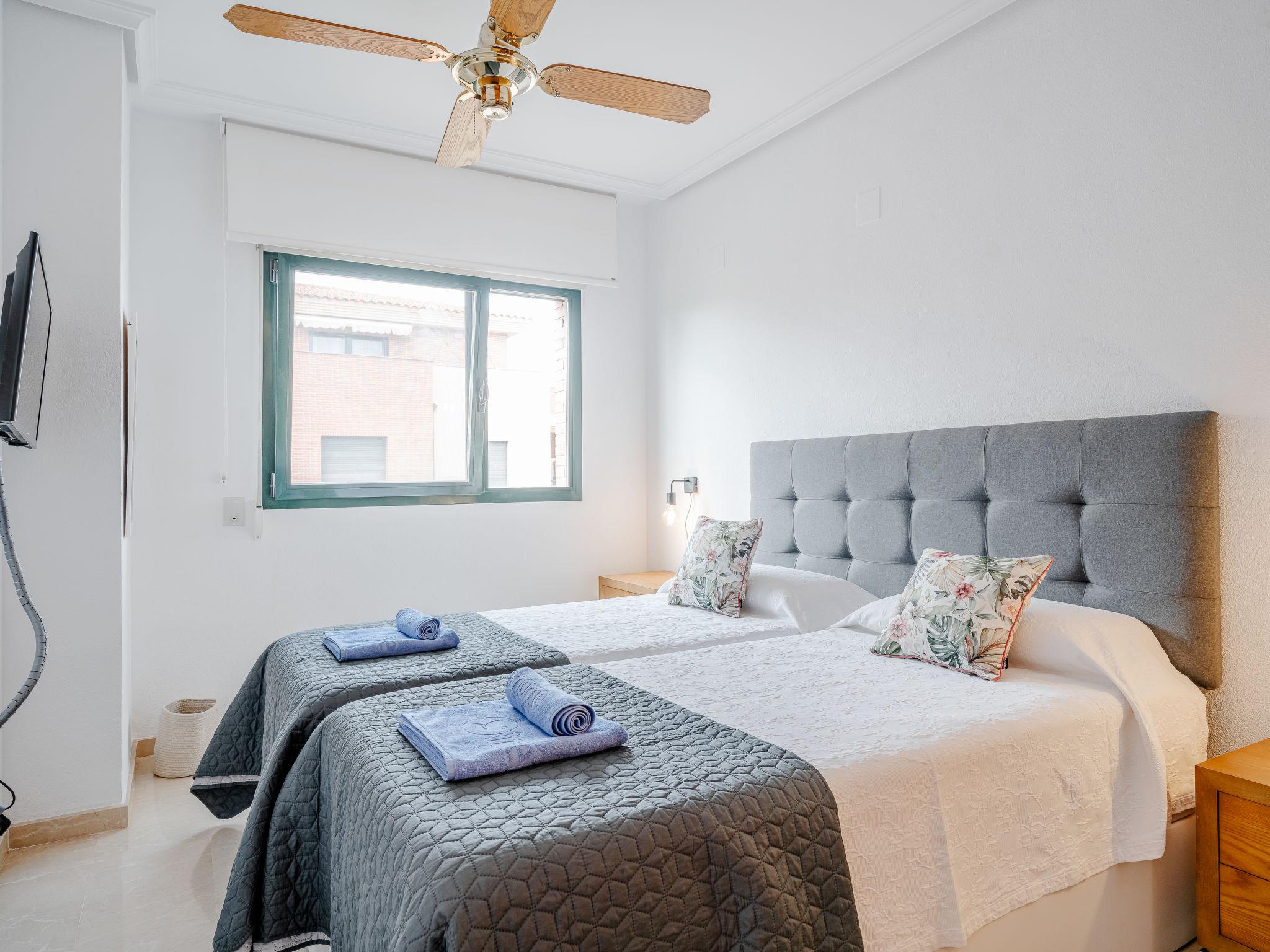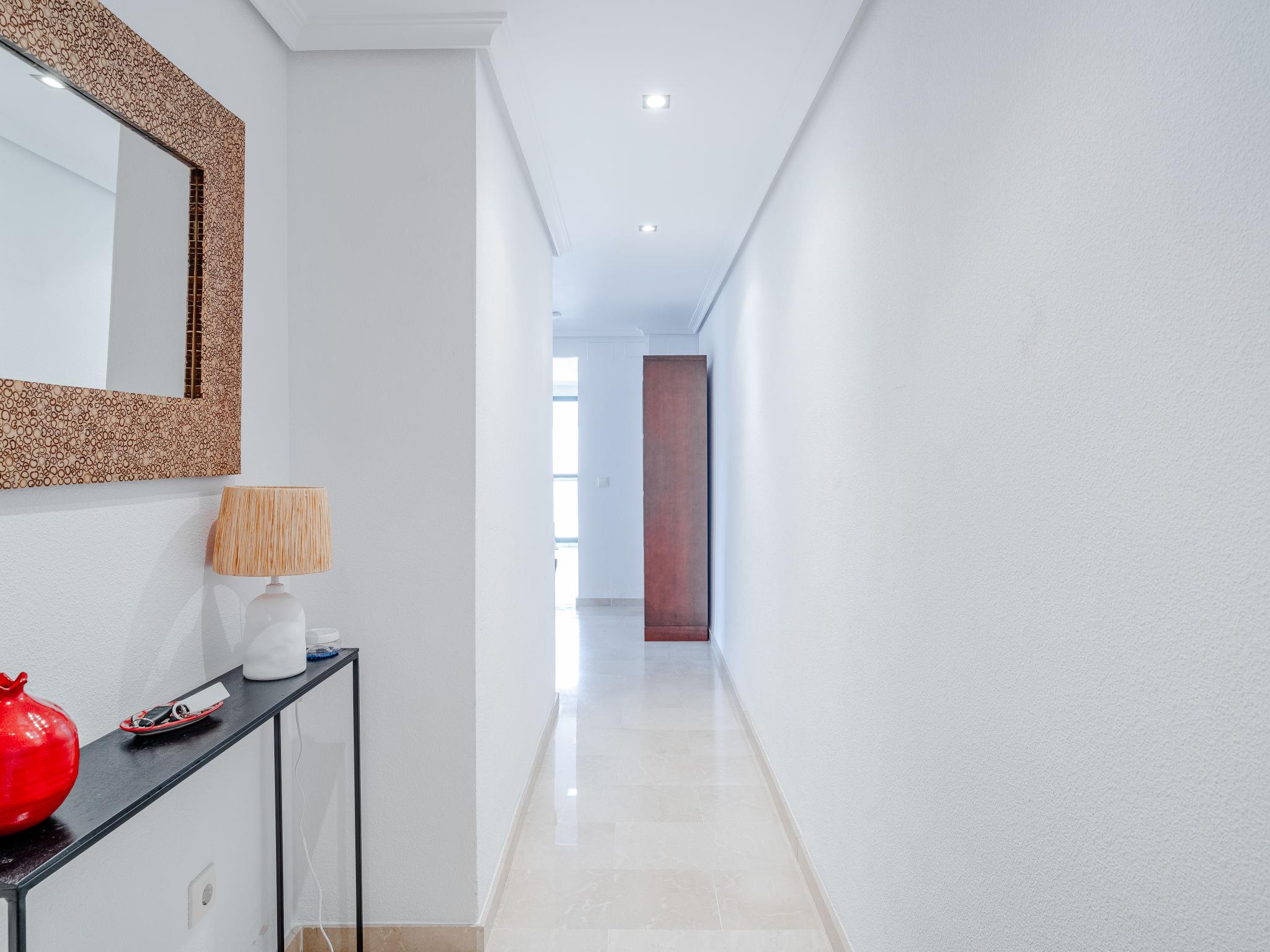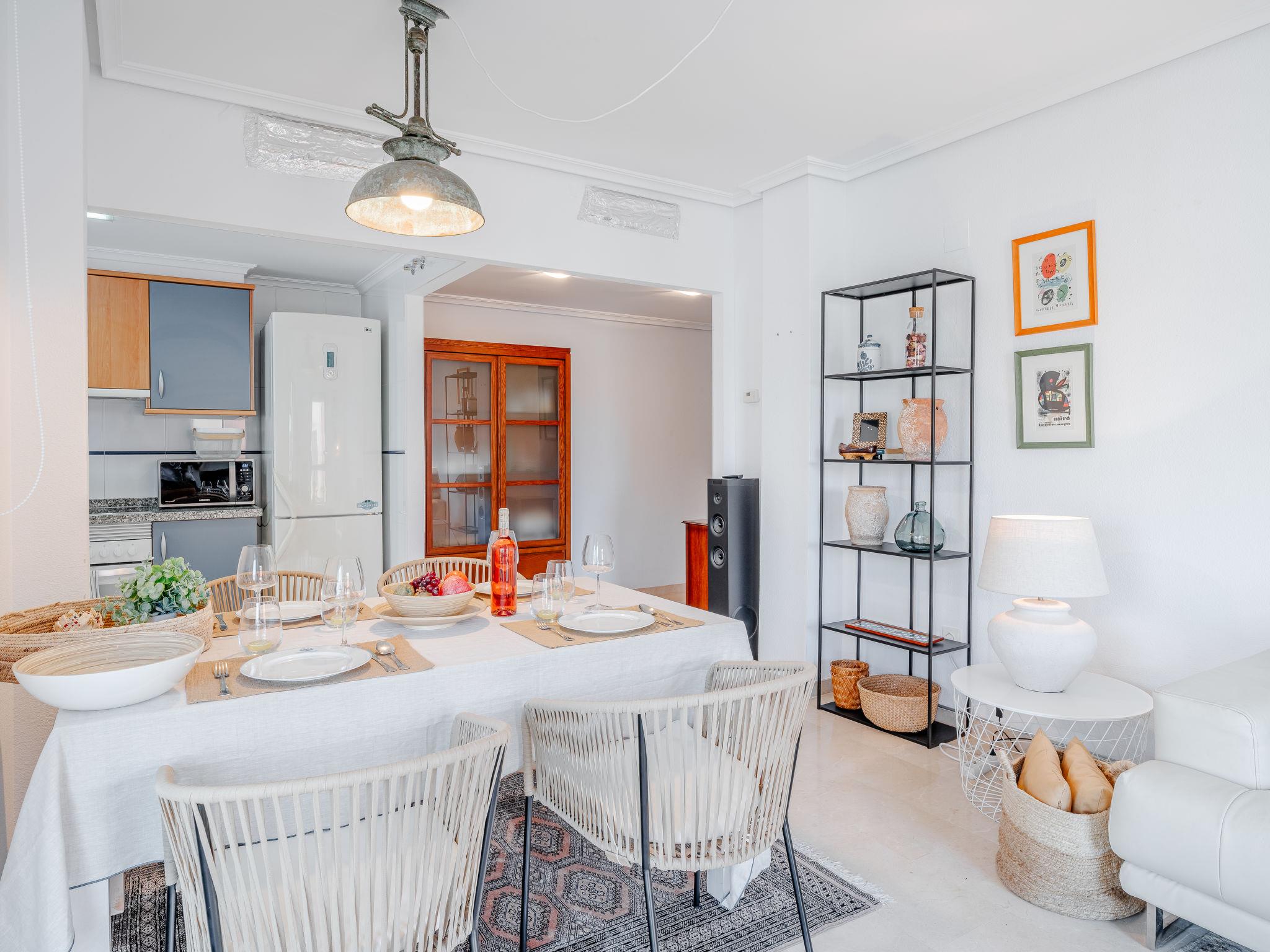 "La Darsena", 3-room apartment 88 m2. Spacious, comfortable and stylish furnishings: living/dining room with digital TV, air conditioning, fan and forced-air heating. Exit to the terrace. 1 room with 1 double bed (2 x 90 cm, length 190 cm), air conditioning and forced-air heating. 1 room with 2 beds (90 cm, length 190 cm), digital TV, air conditioning, fan and forced-air heating. Open kitchen (oven, dishwasher, 4 ceramic glass hob hotplates, toaster, kettle, microwave, freezer, electric coffee machine, Capsules for coffee machine (Nespresso) extra). Bath/bidet/WC. Large terrace. Terrace furniture. Beautiful view. Facilities: washing machine, iron, hair dryer. Internet (WiFi, free). Garage space n 6. Please note: TV only ES. CV-VUT0491706-A // Reg. Nr.: ESFCTU0000030550005773010000000000000CV-VUT0491706-A8