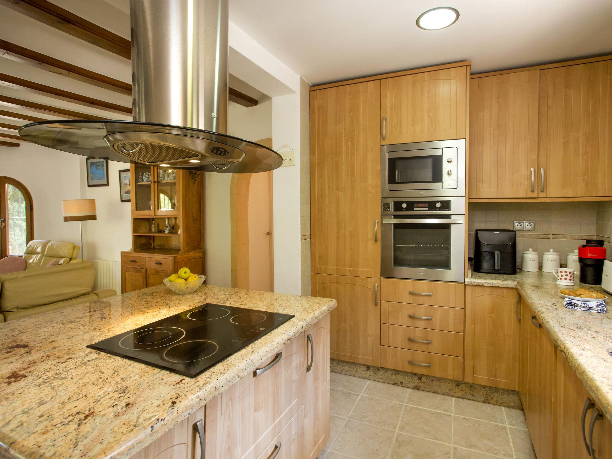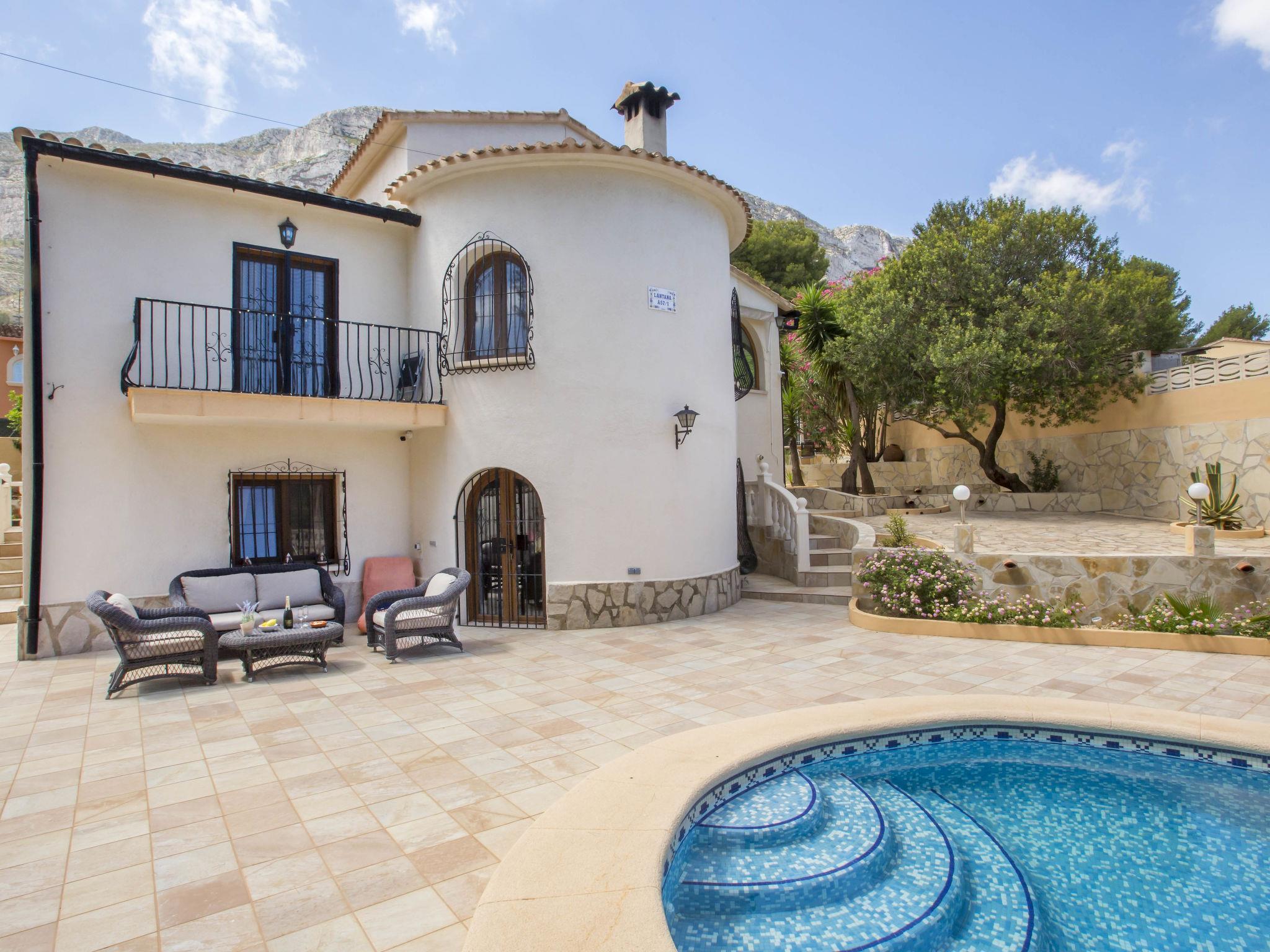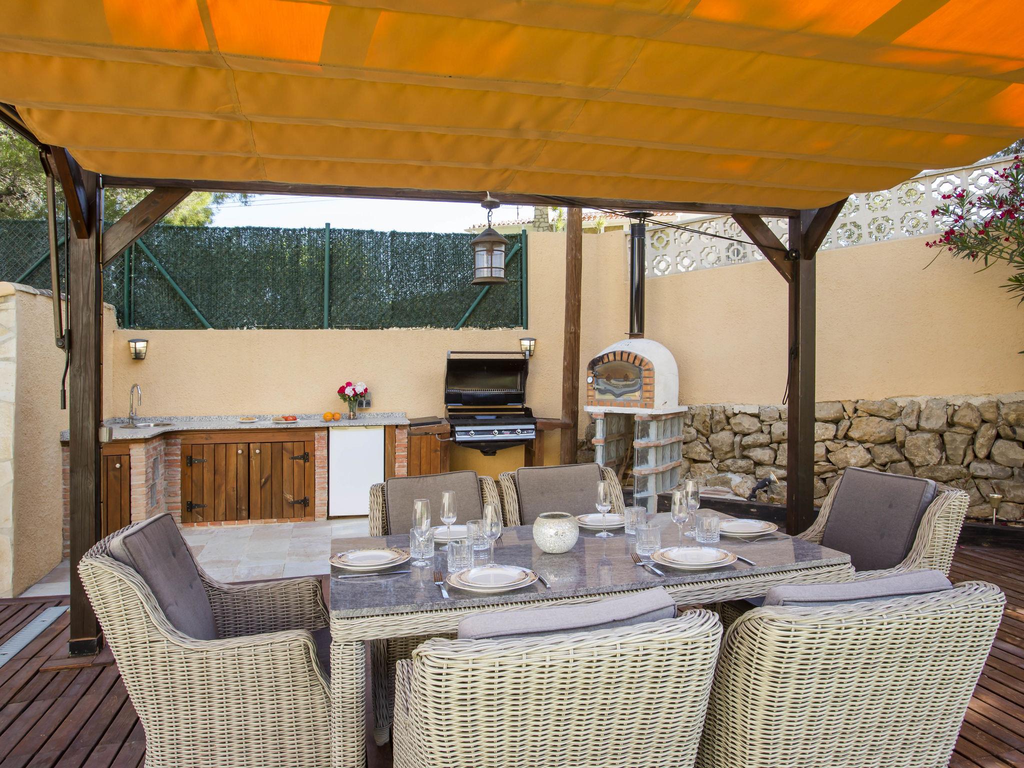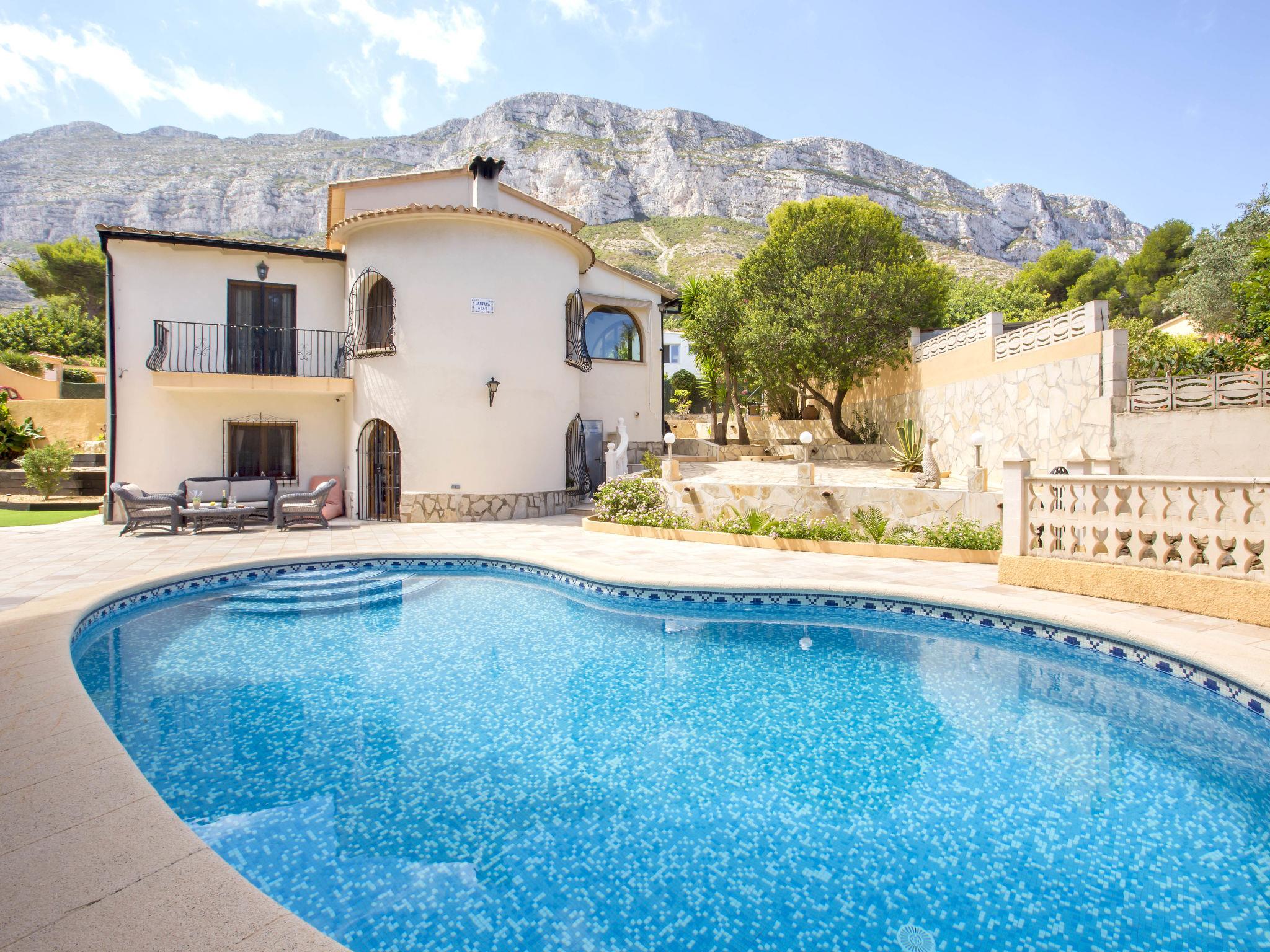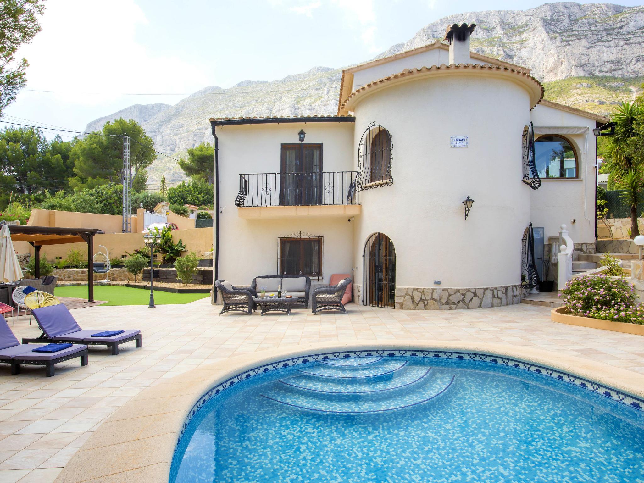 Large, very beautiful, very comfortable house "Lorraine". In the district of Montgó, 2.5 km from the centre of Dénia, in an elevated position, 2.3 km from the sea, 2.3 km from the beach. Private: property (fenced), garden with lawn and trees, swimming pool (8 x 4 m, depth 40 - 210 cm, seasonal availability: 01.Jan. - 31.Dec.) with internal staircase. Outdoor shower, pool house with fridge and cooking stove, patio, arbour, pergola, barbecue. Stepped path to the house. Parking (for 2 cars) on the premises. Supermarket 1.6 km, restaurant 1.1 km, bar 1.3 km, café 1.6 km, bus stop 6 km, railway station 2.7 km, ferry 5 km, sandy beach "Marineta Cassiana" 2.3 km. Sports harbour 2.5 km, marina 2.5 km, golf course (18 hole) 12 km, surf school 2.5 km, sailing school 2.5 km. The owner does not accept any youth groups.