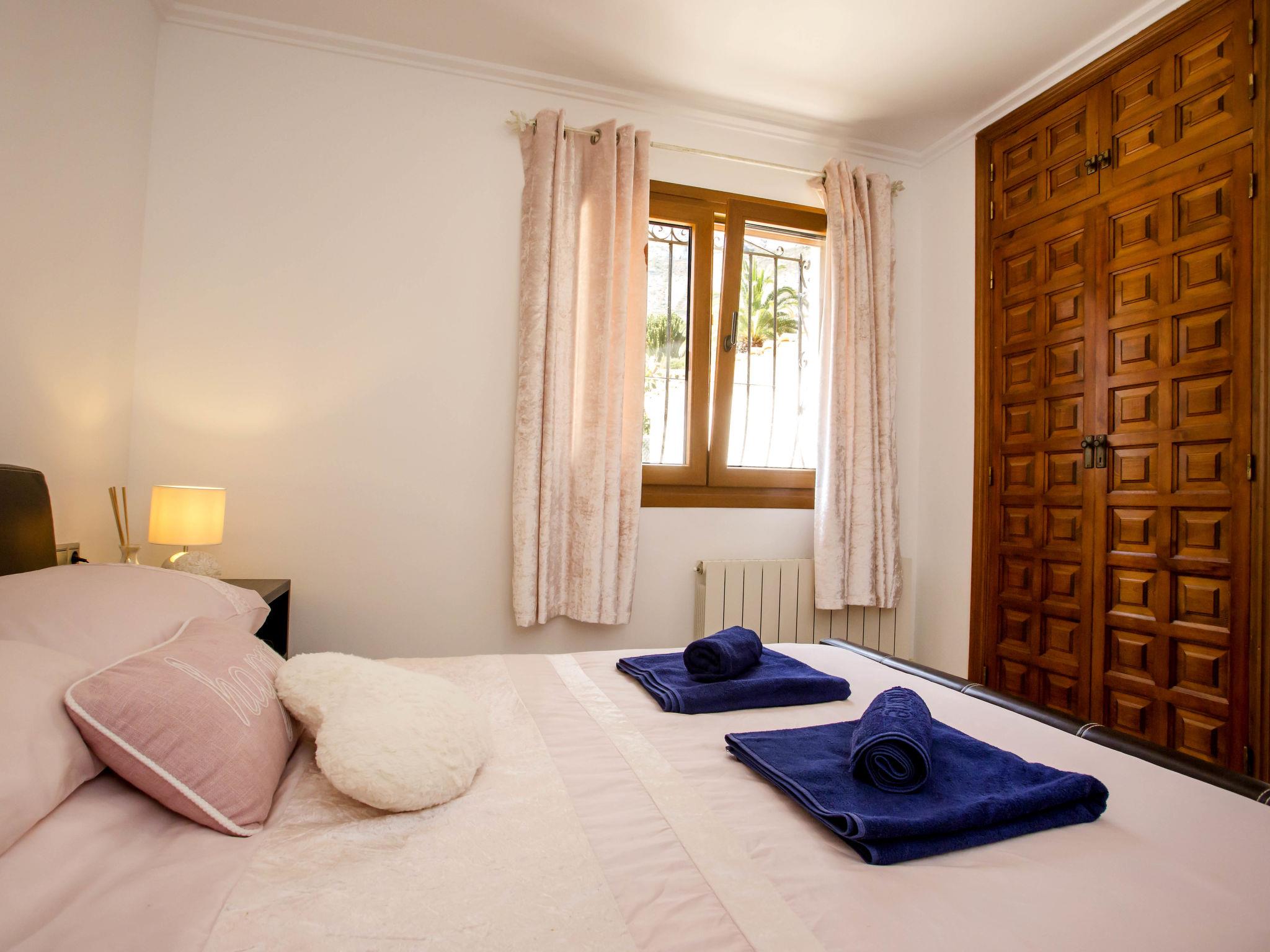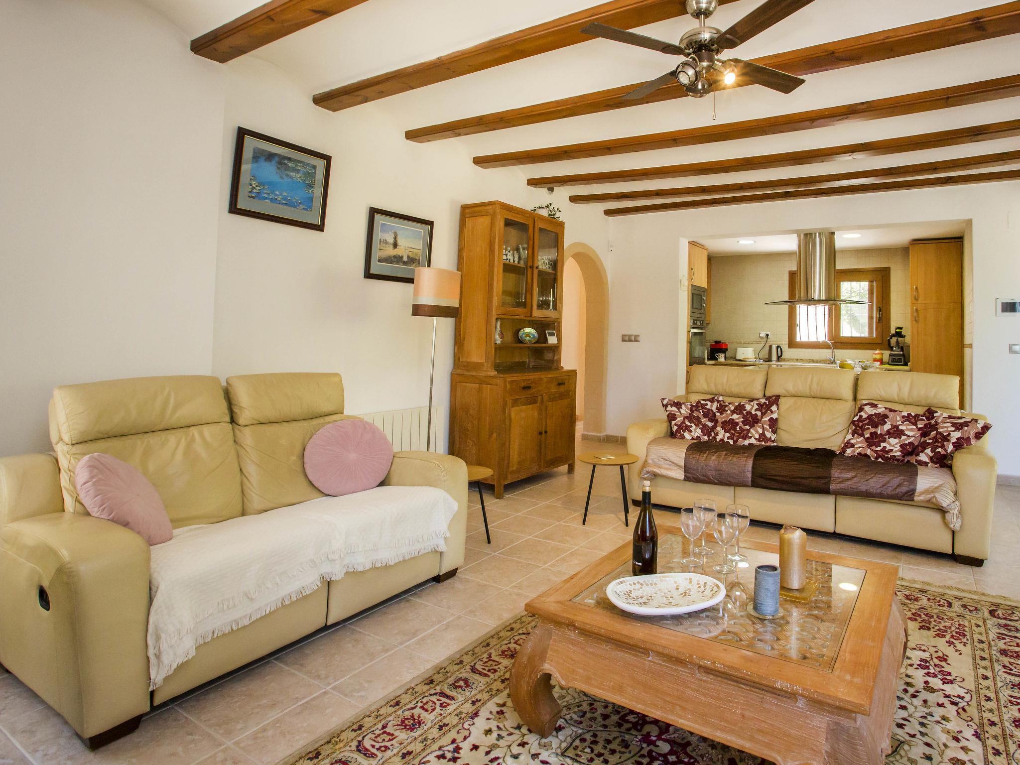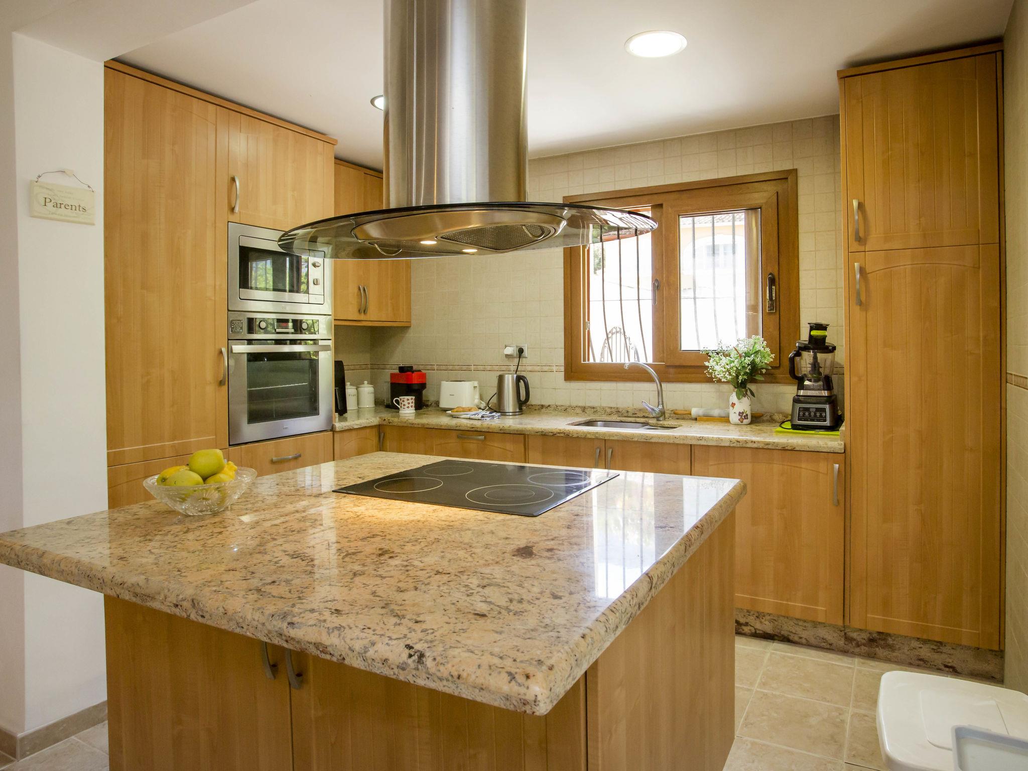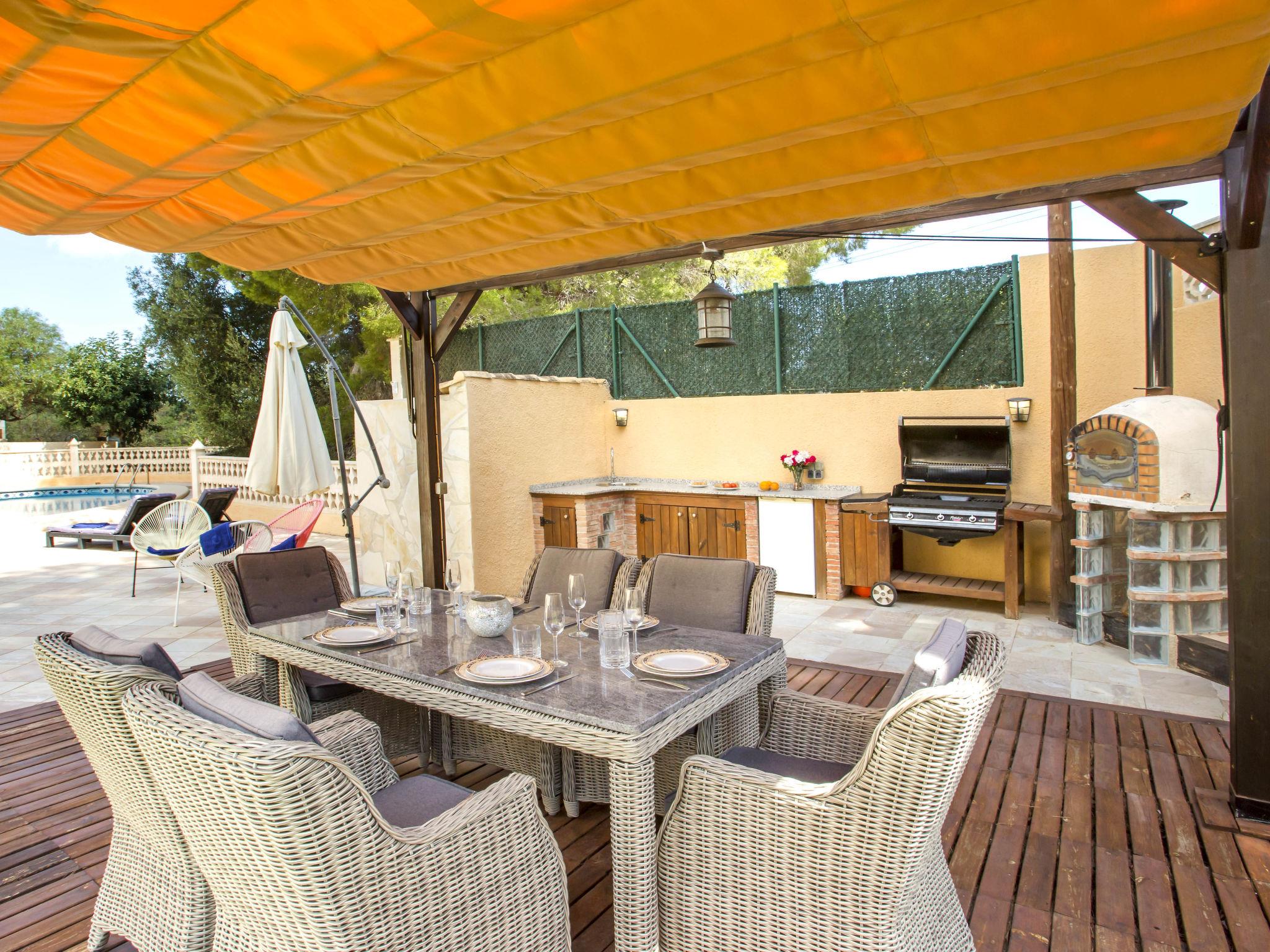 Large, very beautiful, very comfortable house "Lorraine". In the district of Montgó, 2.5 km from the centre of Dénia, in an elevated position, 2.3 km from the sea, 2.3 km from the beach. Private: property (fenced), garden with lawn and trees, swimming pool (8 x 4 m, depth 40 - 210 cm, seasonal availability: 01.Jan. - 31.Dec.) with internal staircase. Outdoor shower, pool house with fridge and cooking stove, patio, arbour, pergola, barbecue. Stepped path to the house. Parking (for 2 cars) on the premises. Supermarket 1.6 km, restaurant 1.1 km, bar 1.3 km, café 1.6 km, bus stop 6 km, railway station 2.7 km, ferry 5 km, sandy beach "Marineta Cassiana" 2.3 km. Sports harbour 2.5 km, marina 2.5 km, golf course (18 hole) 12 km, surf school 2.5 km, sailing school 2.5 km. The owner does not accept any youth groups.