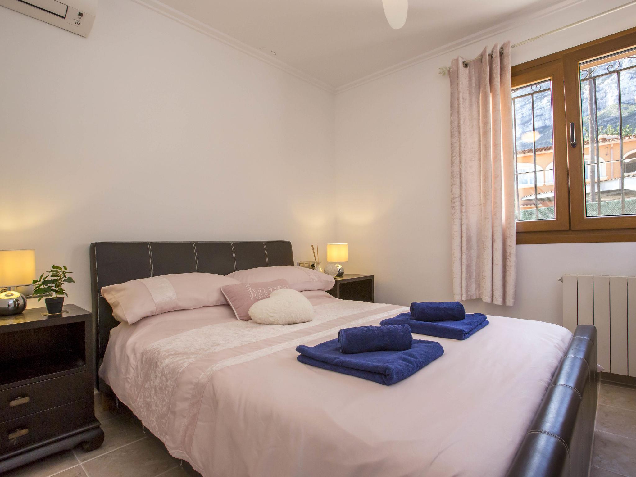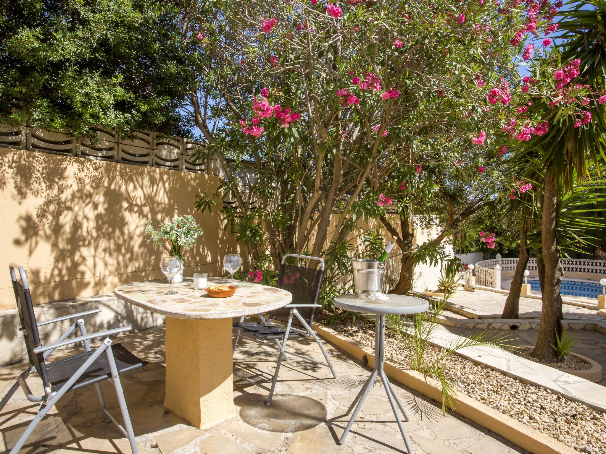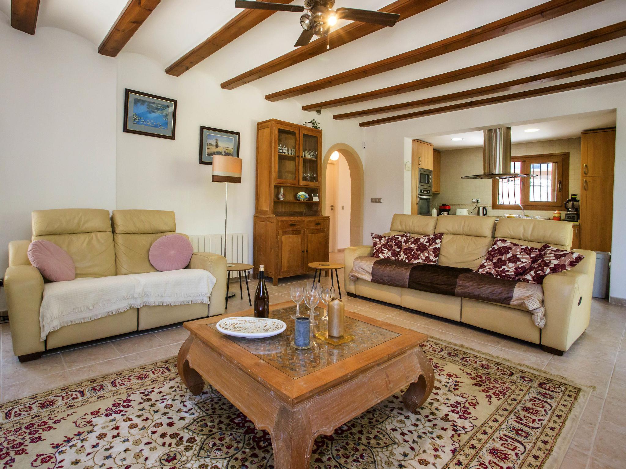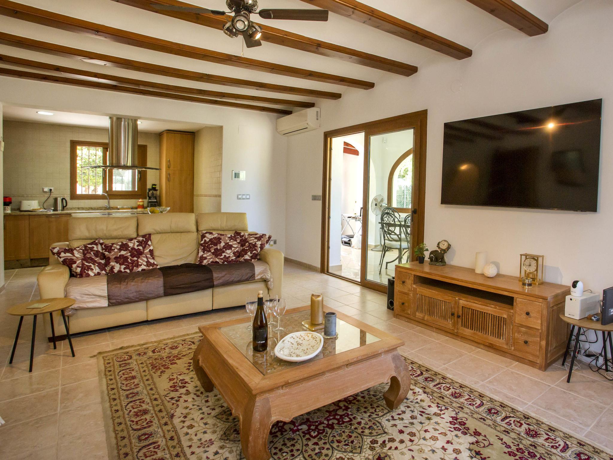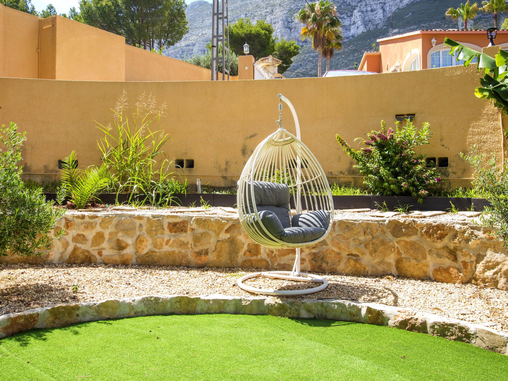 Large, very beautiful, very comfortable house "Lorraine". In the district of Montgó, 2.5 km from the centre of Dénia, in an elevated position, 2.3 km from the sea, 2.3 km from the beach. Private: property (fenced), garden with lawn and trees, swimming pool (8 x 4 m, depth 40 - 210 cm, seasonal availability: 01.Jan. - 31.Dec.) with internal staircase. Outdoor shower, pool house with fridge and cooking stove, patio, arbour, pergola, barbecue. Stepped path to the house. Parking (for 2 cars) on the premises. Supermarket 1.6 km, restaurant 1.1 km, bar 1.3 km, café 1.6 km, bus stop 6 km, railway station 2.7 km, ferry 5 km, sandy beach "Marineta Cassiana" 2.3 km. Sports harbour 2.5 km, marina 2.5 km, golf course (18 hole) 12 km, surf school 2.5 km, sailing school 2.5 km. The owner does not accept any youth groups.