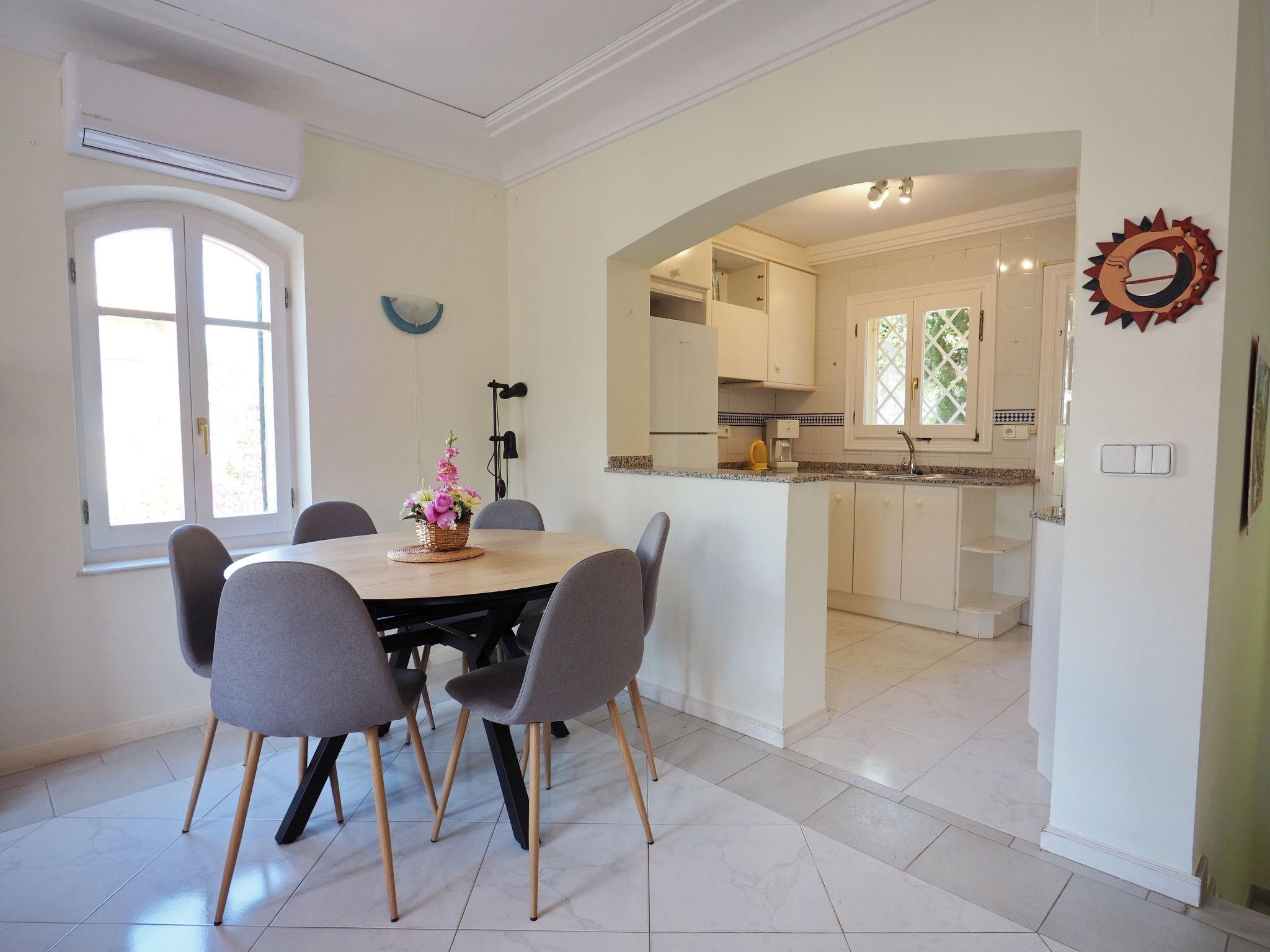 Modern, beautiful, comfortable terraced house "Al Zur", 3 storeys, built in 1996. Outside the resort, 2.5 km from the centre of Denia, in a quiet position. For shared use: garden with lawn, swimming pool (9 x 18 m, seasonal availability: 01.Jan. - 31.Dec.). Private: terrace (12 m2), garden furniture. Supermarket 2.5 km, restaurant 2.5 km, bus stop 1 km, railway station 1.7 km, ferry 2.5 km, sandy beach 1.7 km, outdoor swimming pool 50 m. The owner does not accept any youth groups.