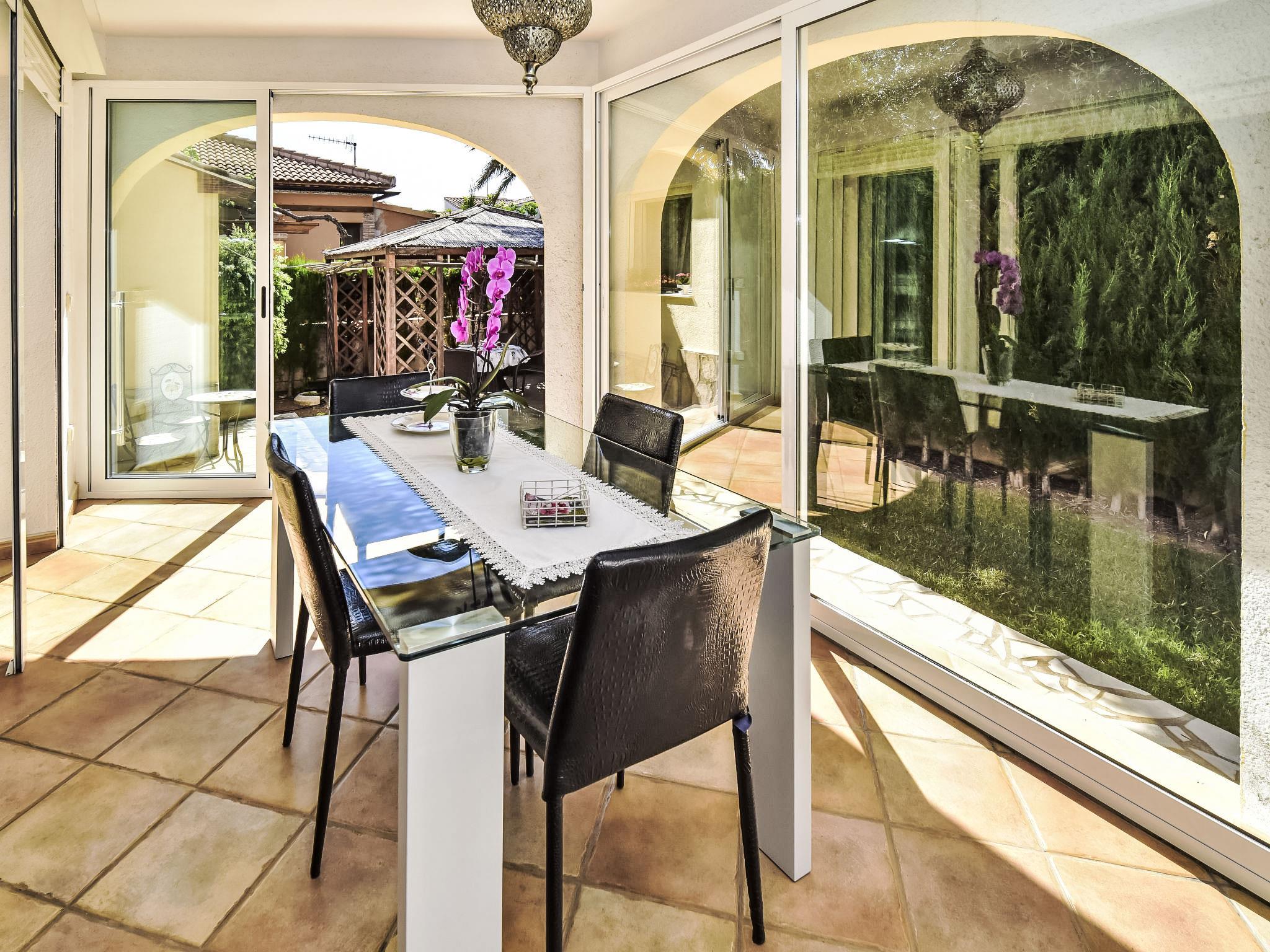 "Villa Buena Vida", 5-room house 160 m2 on 2 levels. Spacious and bright, very beautiful and tasteful furnishings: living/dining room with satellite TV, digital TV, international TV channels, air conditioning and forced-air heating. Exit to the veranda, to the patio, to the swimming pool. 1 room with 1 french bed, shower/WC, air conditioning and forced-air heating. 1 room with 2 beds and bath/WC. Open kitchen (oven, dishwasher, 5 ceramic glass hob hotplates, microwave). Upper floor: 1 room with Dressing room with 1 french bed, air conditioning and forced-air heating. Exit to the balcony. 1 room with 1 french bed, air conditioning and forced-air heating. Shower/WC. Large terrace roofed, south facing position, garden, porch. Facilities: washing machine. Internet (WiFi, free). Parking. AT-468387-A // Reg. Nr.: ESFCTU00000305500058573300000000000000000AT-468387-A2