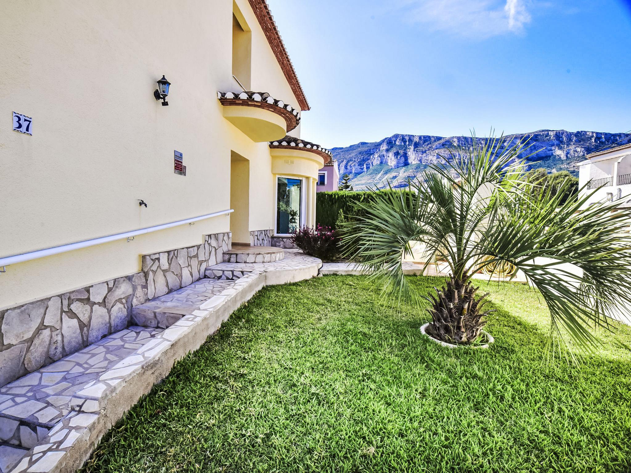 Very large, very beautiful, very comfortable house "Villa Buena Vida". In the resort 1 km from the centre of Dénia, in a quiet, sunny position, 1 km from the sea, 2 km from the beach. Private: natural state property with lawn and wildlife garden, beautiful garden to relax, swimming pool angular (6 x 4 m, depth 200 cm, seasonal availability: 01.Jan. - 31.Dec.). Outdoor shower, patio, arbour. Supermarket 200 m, restaurant, bar, café 700 m, bus stop 1.2 km, railway station 750 m, ferry 3.4 km, sandy beach 2 km. Sports harbour 1 km, marina 1 km, surf school 1 km, sailing school 1 km. The owner does not accept any youth groups.