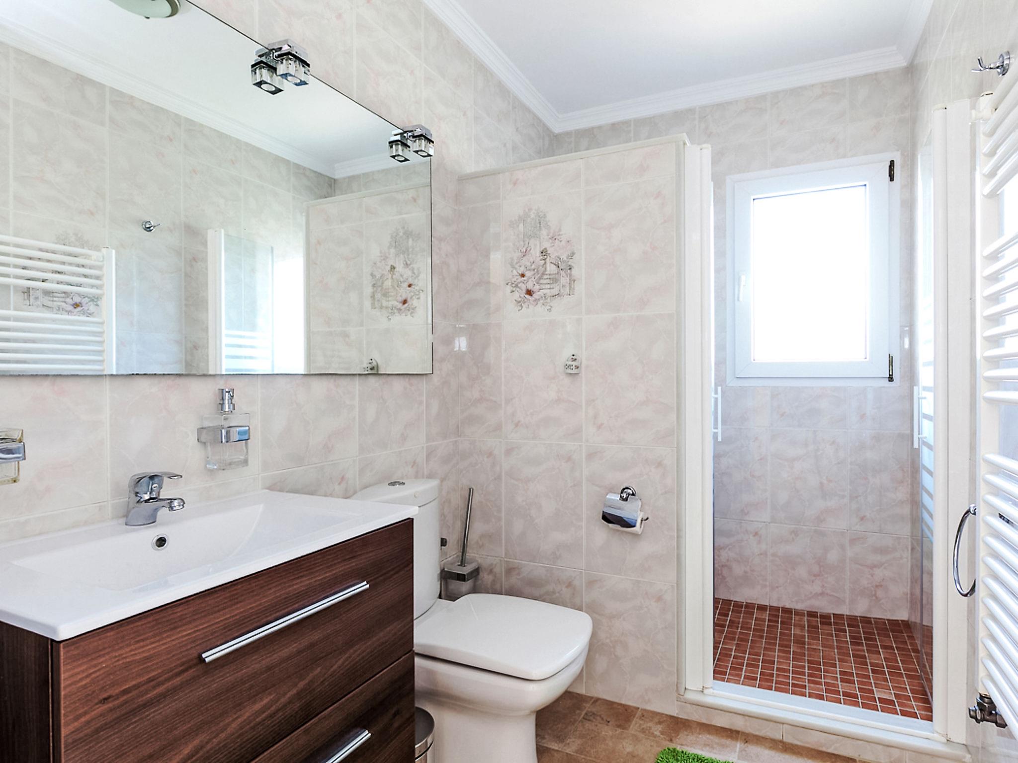 "Tulipanes", 4-room villa 160 m2 on 2 levels. Very comfortable and cosy furnishings: living/dining room with open-hearth fireplace, digital TV, international TV channels, gas heating and air conditioning. 1 room with 2 beds (90 cm, length 200 cm), gas heating and air conditioning. 1 room with 1 french bed and bath/bidet/WC (private) gas heating and air conditioning. Kitchen (oven, dishwasher, 4 ceramic glass hob hotplates, microwave, freezer, electric coffee machine) with bar. Shower/WC. On the lower ground floor: 1 room with 1 french bed, air conditioning and forced-air heating. Exit to the garden, to the swimming pool. Kitchenette (microwave). Shower/WC. Small balcony 9 m2, large terrace 45 m2, 2 small terraces 9 m2, garden 450 m2. Barbecue. Facilities: washing machine, dryer, children's high chair, baby cot. Internet (WiFi, free). Garage. No internal connecting door between the floors. AT-445567-A // Reg. Nr.: ESFCTU00000305500049138600000000000000000AT-445567-A7
