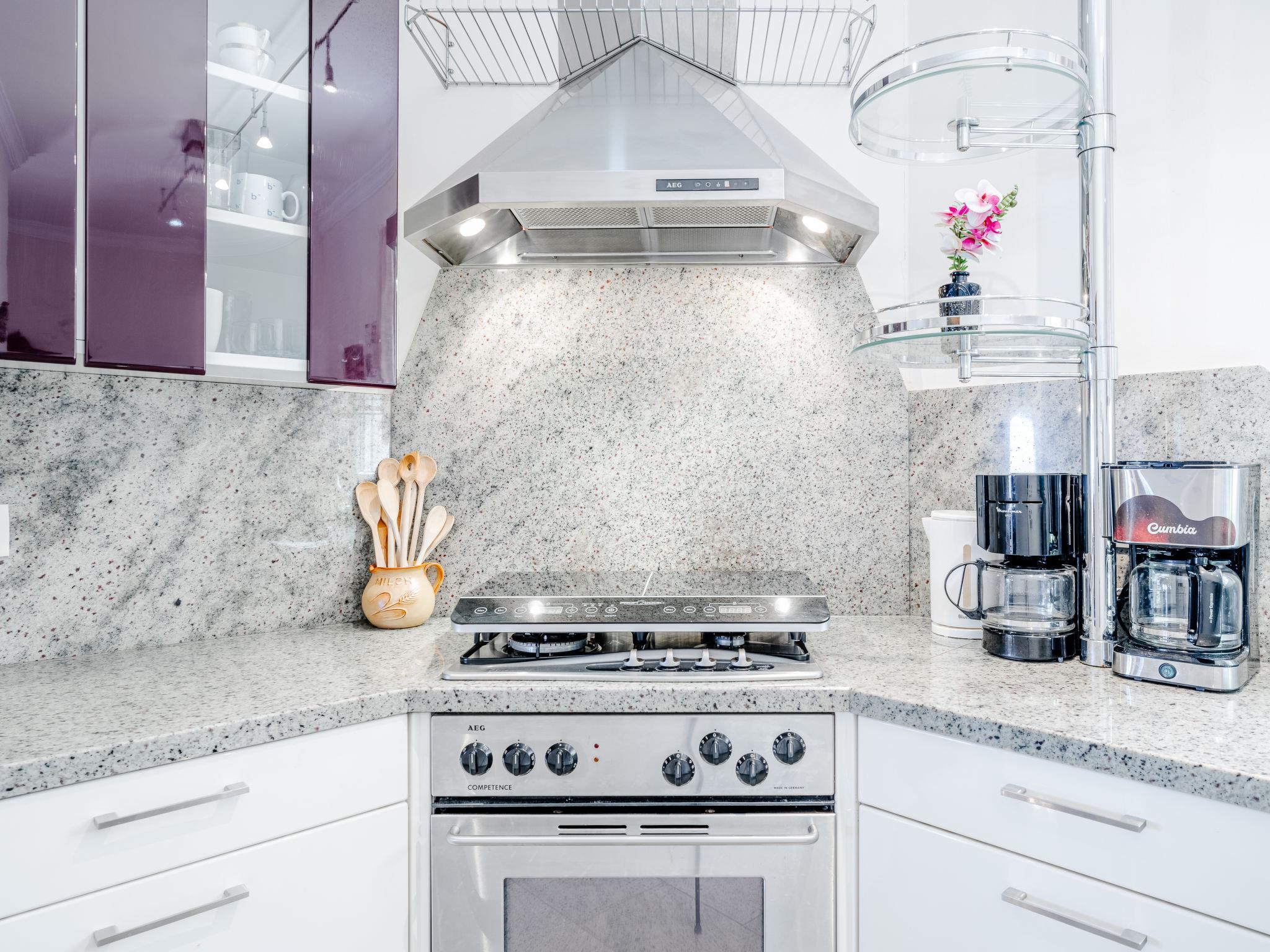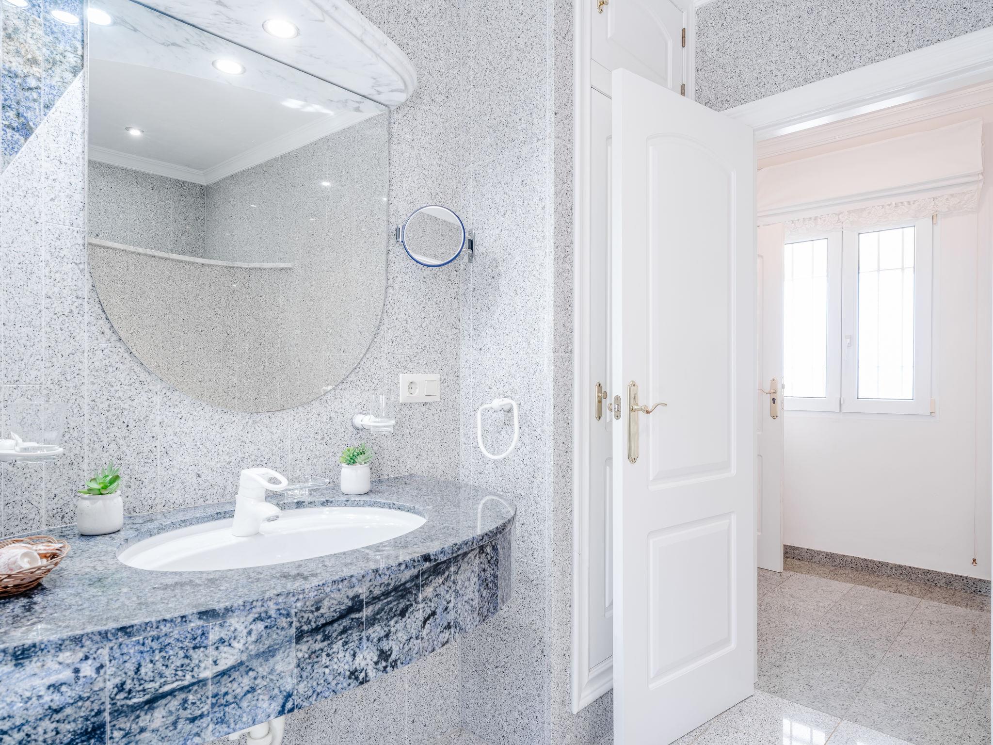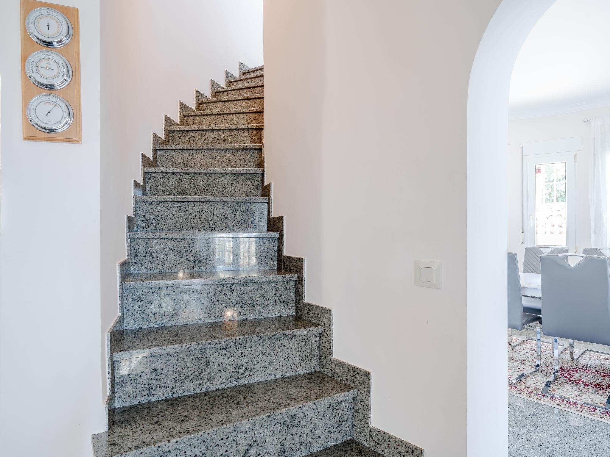 "Villa Rosa", 5-room house 270 m2 on 2 levels. Spacious and bright, very comfortable and cosy furnishings: living/dining room with open-hearth fireplace, satellite TV, air conditioning, fan and forced-air heating. Exit to the terrace. 1 room with 1 french bed (2 x 90 cm, length 200 cm), air conditioning and forced-air heating. Open kitchen (4 hot plates, oven, dishwasher, 2 ceramic glass hob hotplates, toaster, microwave, freezer, electric coffee machine). Sep. WC, bath/shower/WC. Floor heating. On the lower ground floor: living/dining room with air conditioning and forced-air heating. Upper floor: 1 room with 2 beds (90 cm, length 200 cm). 1 room with 1 french bed (2 x 90 cm, length 200 cm), shower/WC, air conditioning and forced-air heating. Patio. Terrace furniture, barbecue, covered balcony. Very beautiful view of the sea. Facilities: washing machine, dryer, iron, hair dryer. Internet (WiFi, free). CV-VUT0519341-A // Reg. Nr.: ESFCTU00000305500025946700000000000000000AT-437917-A3