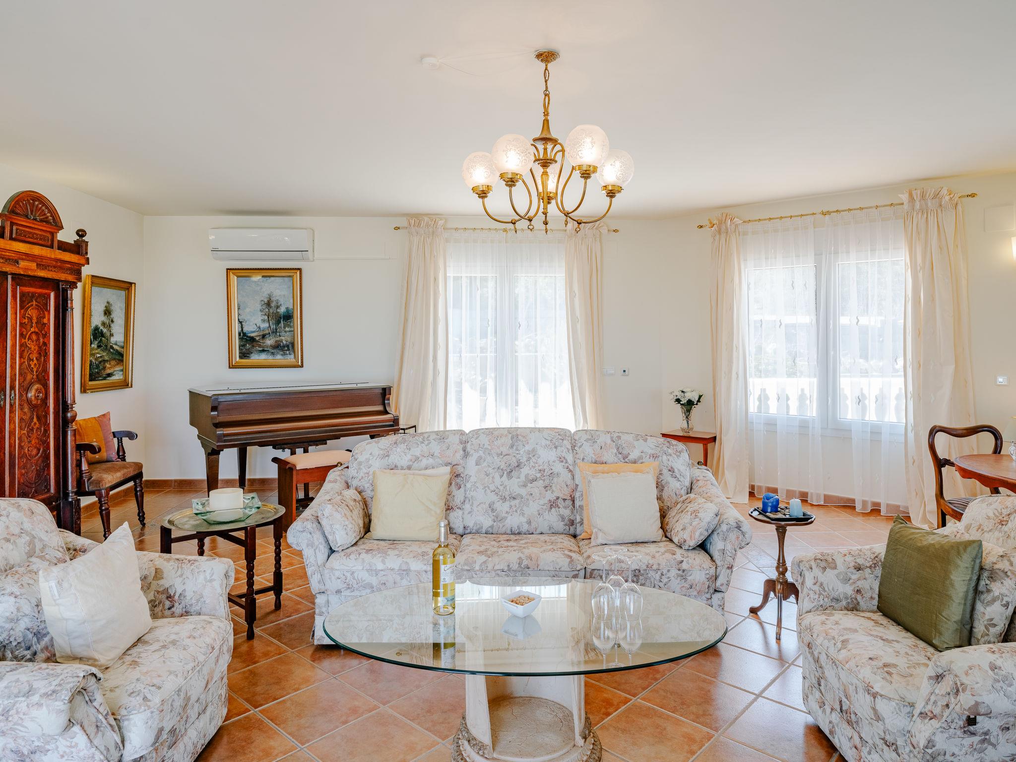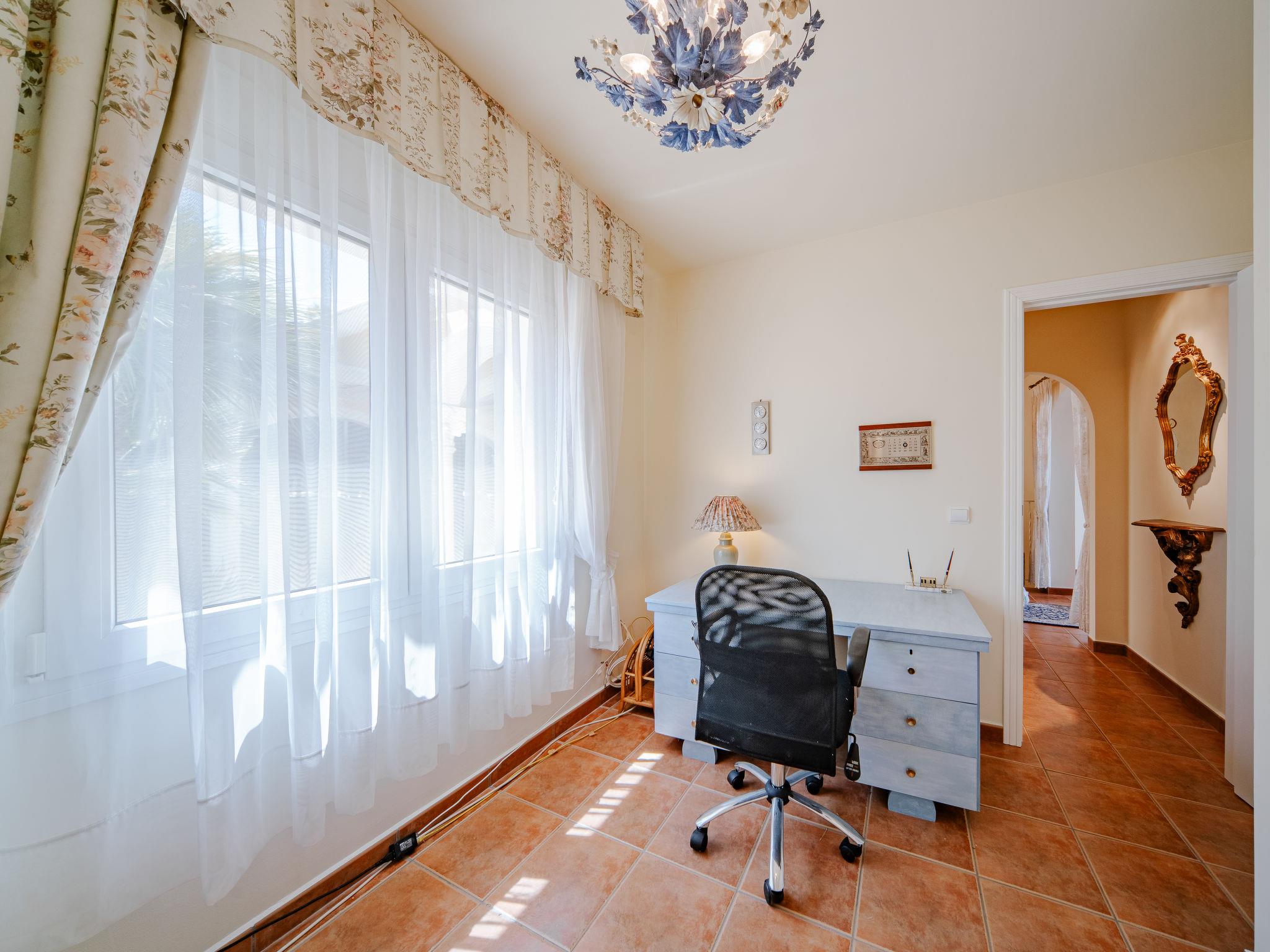 Very large, very beautiful villa "Marques", 2 storeys. In the district of Marquesa VI, in a quiet, sunny position residential area (villas), 5.3 km from the sea, 5.3 km from the beach. Private: large, beautiful, well-kept terraced garden, swimming pool angular (6 x 4 m, depth 120 - 170 cm, seasonal availability: 01.Jan. - 31.Dec.) with internal staircase. Outdoor shower, pergola, parking (for 3 cars) on the premises. Supermarket 3.7 km, restaurant 2.8 km, bus stop 4.3 km, railway station 4.1 km, sandy beach "La Marineta Cassiana" 5.8 km. Surf school 5.8 km, sailing school 5.8 km. The owner does not accept any youth groups.