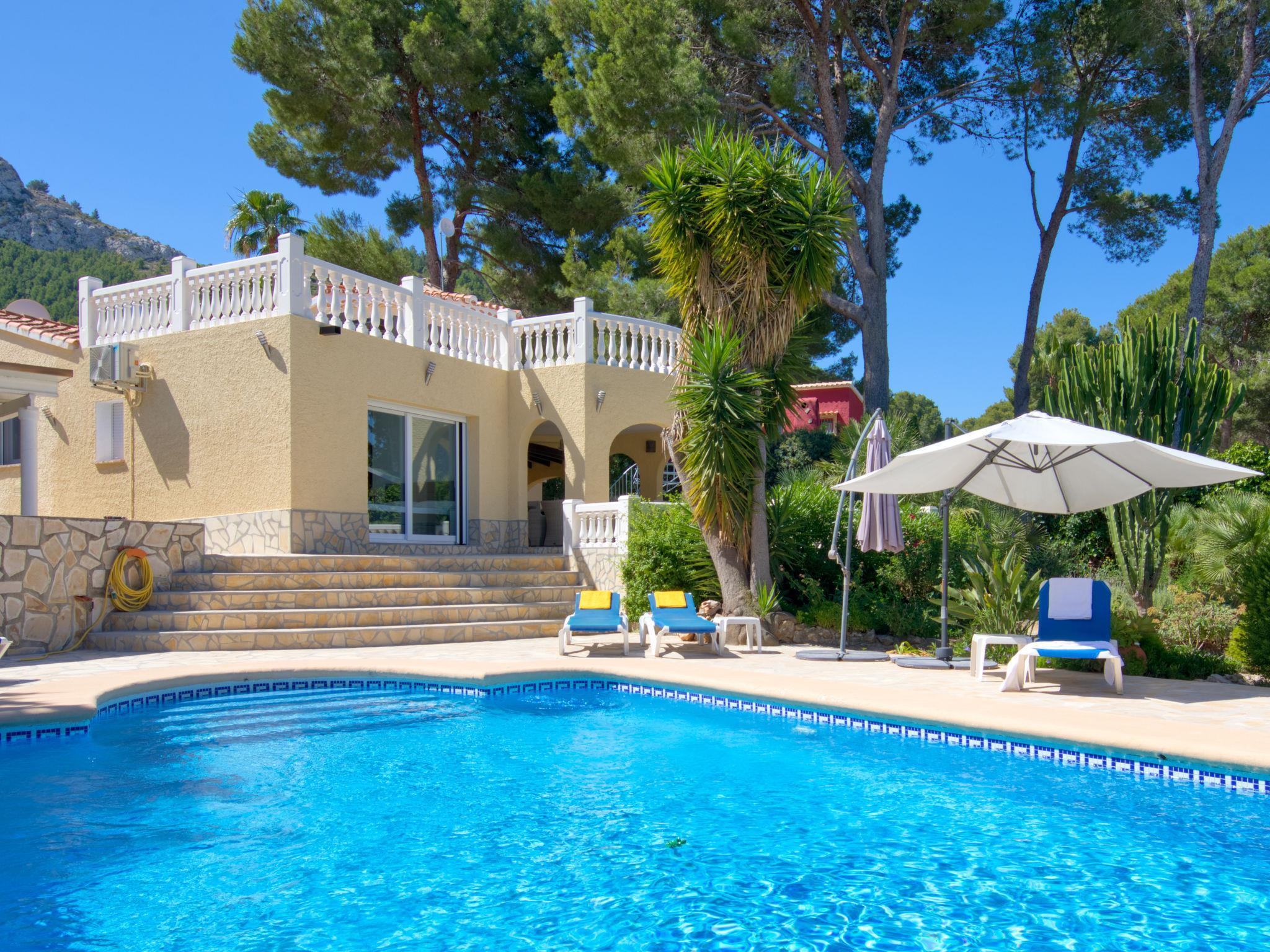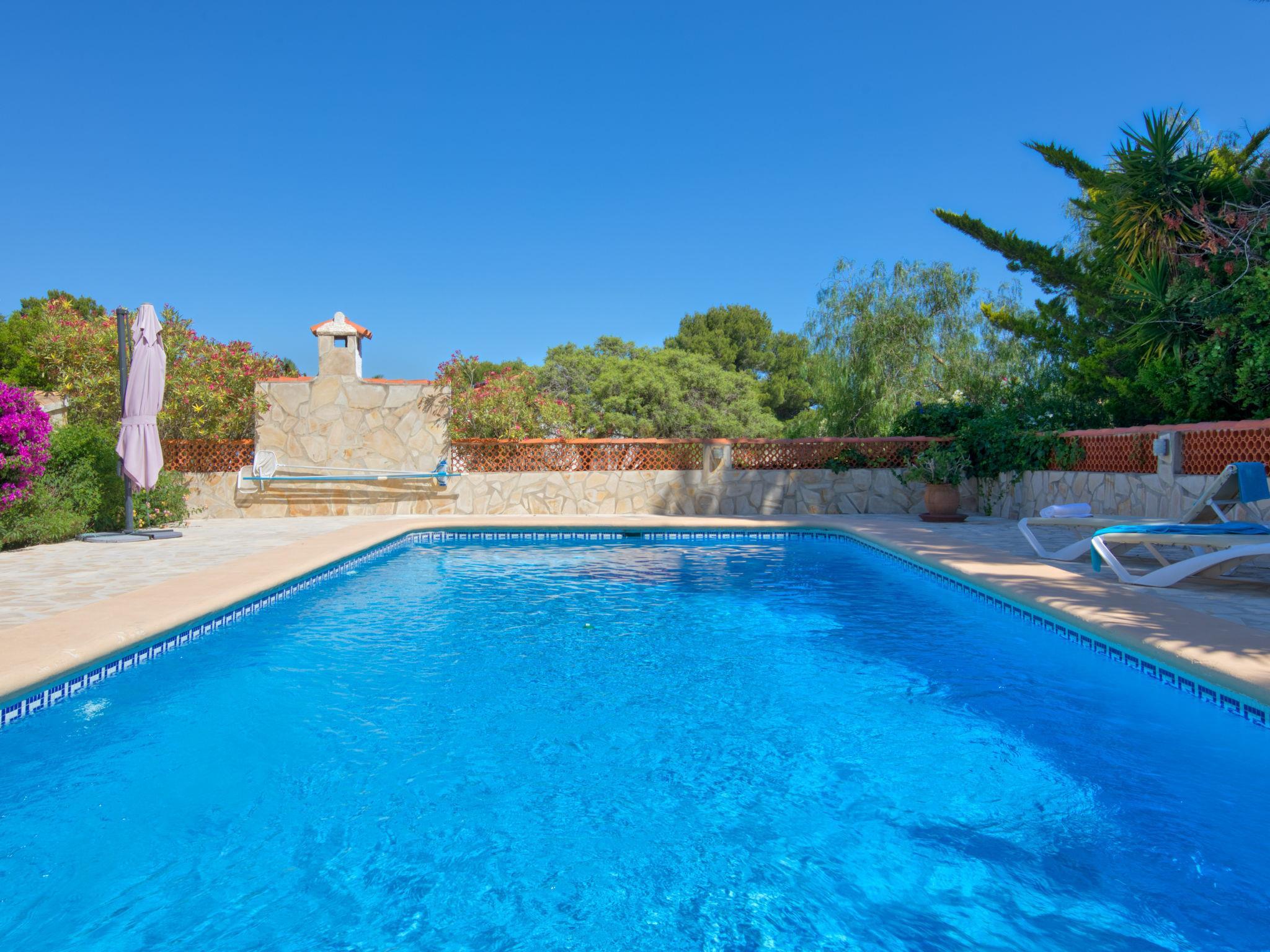 La Marquesa V 4 km from Dénia: Beautiful, cosy villa "La Marquesa", renovated in 2019. In the district of Montgó, 4 km from the centre of Dénia, on a slope, 4.5 km from the sea. Private: well-kept garden 600 m2 (fenced), swimming pool (10 x 5 m, seasonal availability: 01.Jan. - 31.Dec.) with internal staircase. Outdoor shower, terrace. In the house: air conditioning. Stepped path (3 steps) to the house. Roofed, parking at the house. Supermarket 3 km, bar 2 km, bus stop 4.2 km, railway station 4.1 km, ferry 4.2 km, sandy beach 5 km. The owner does not accept any youth groups.