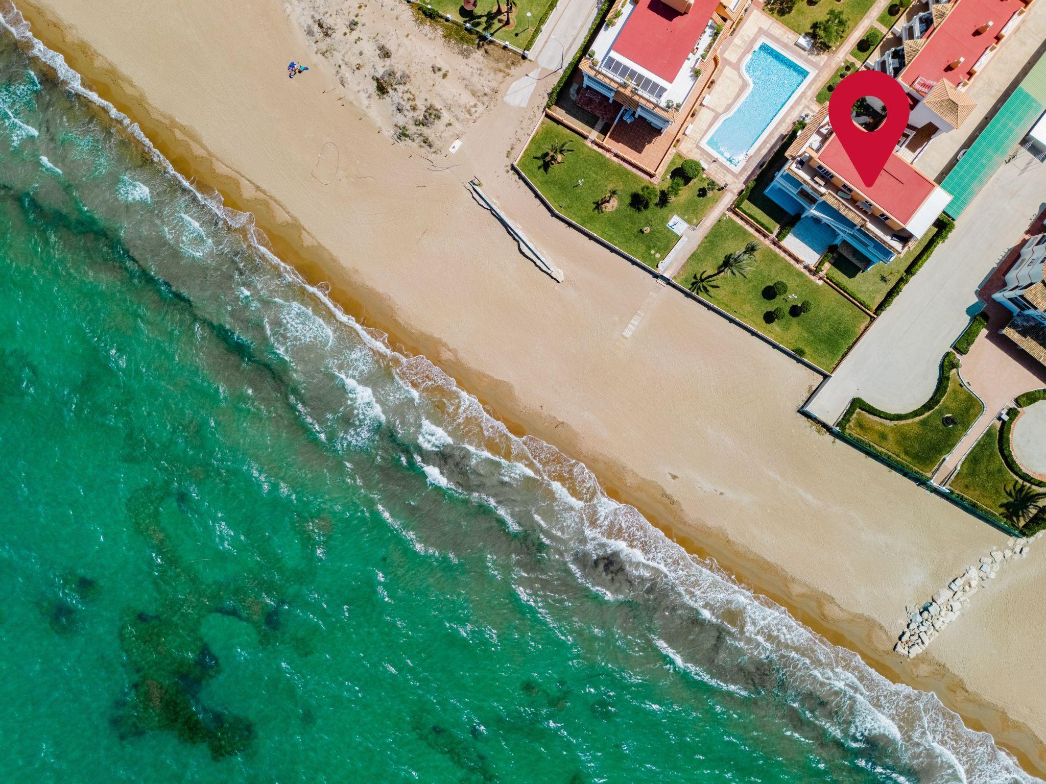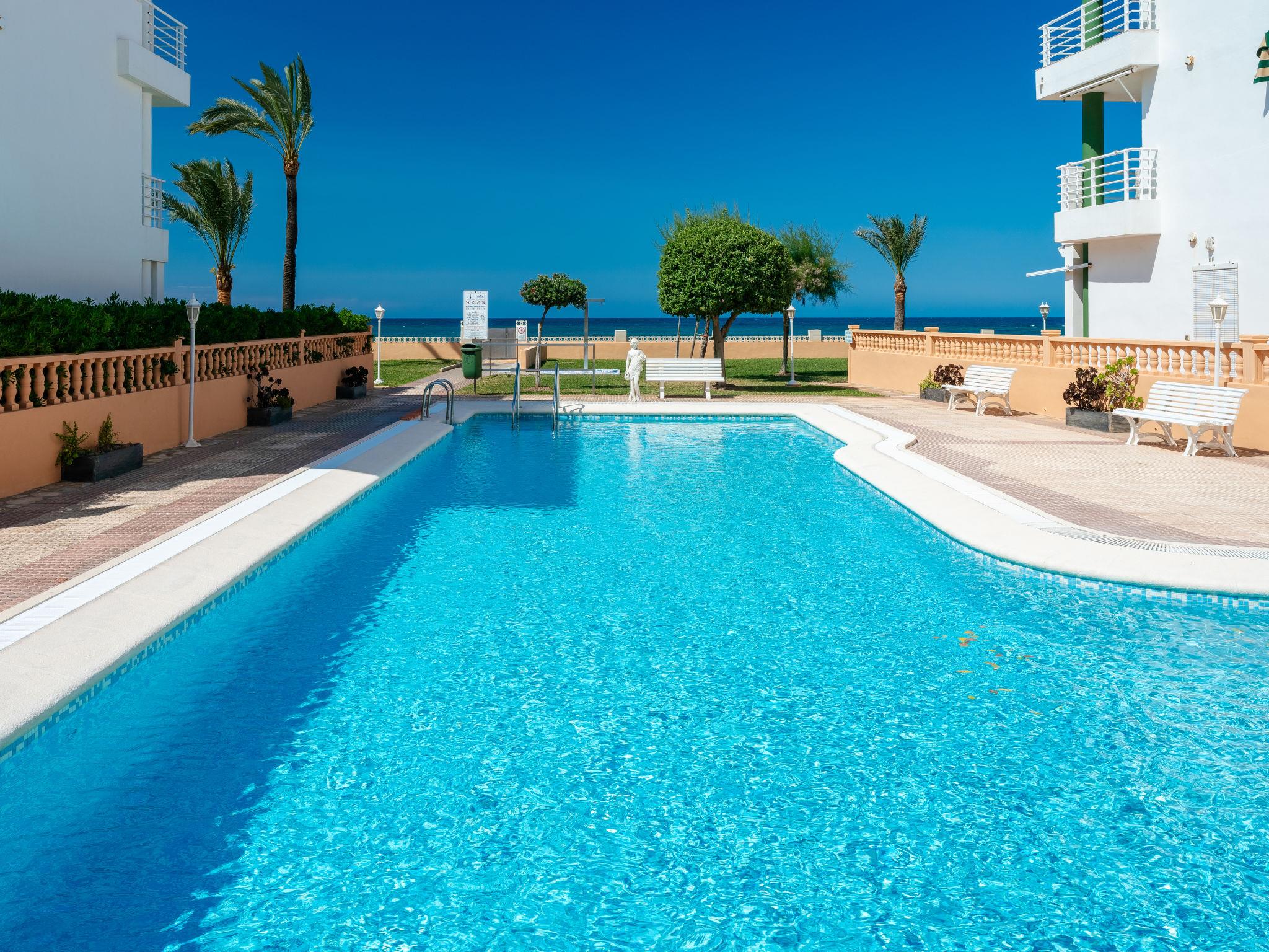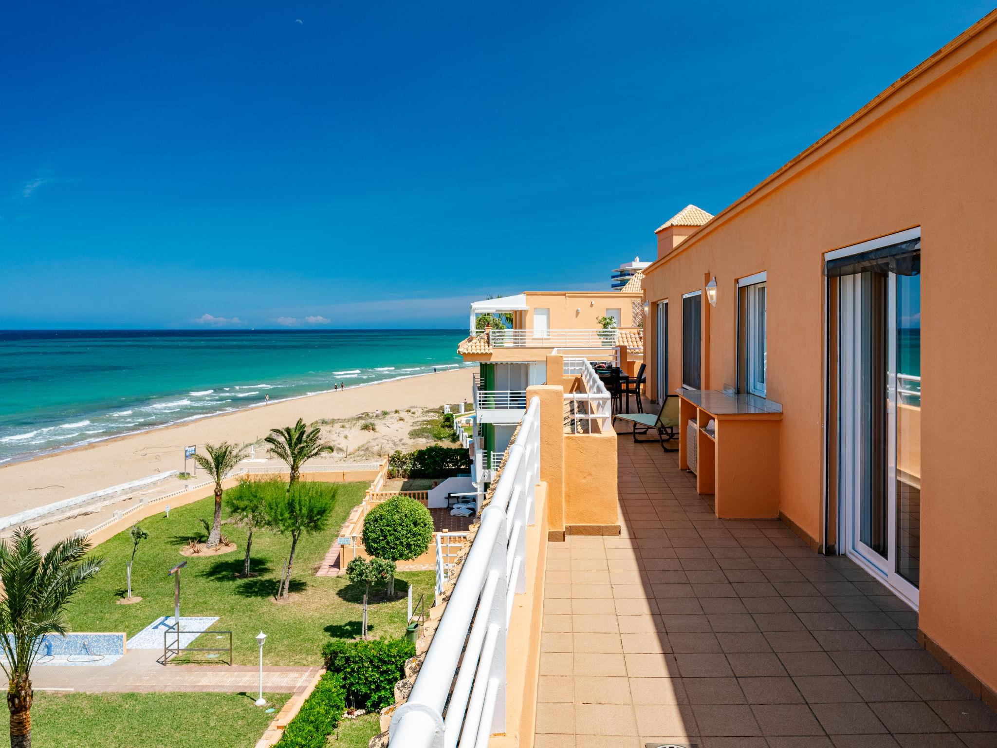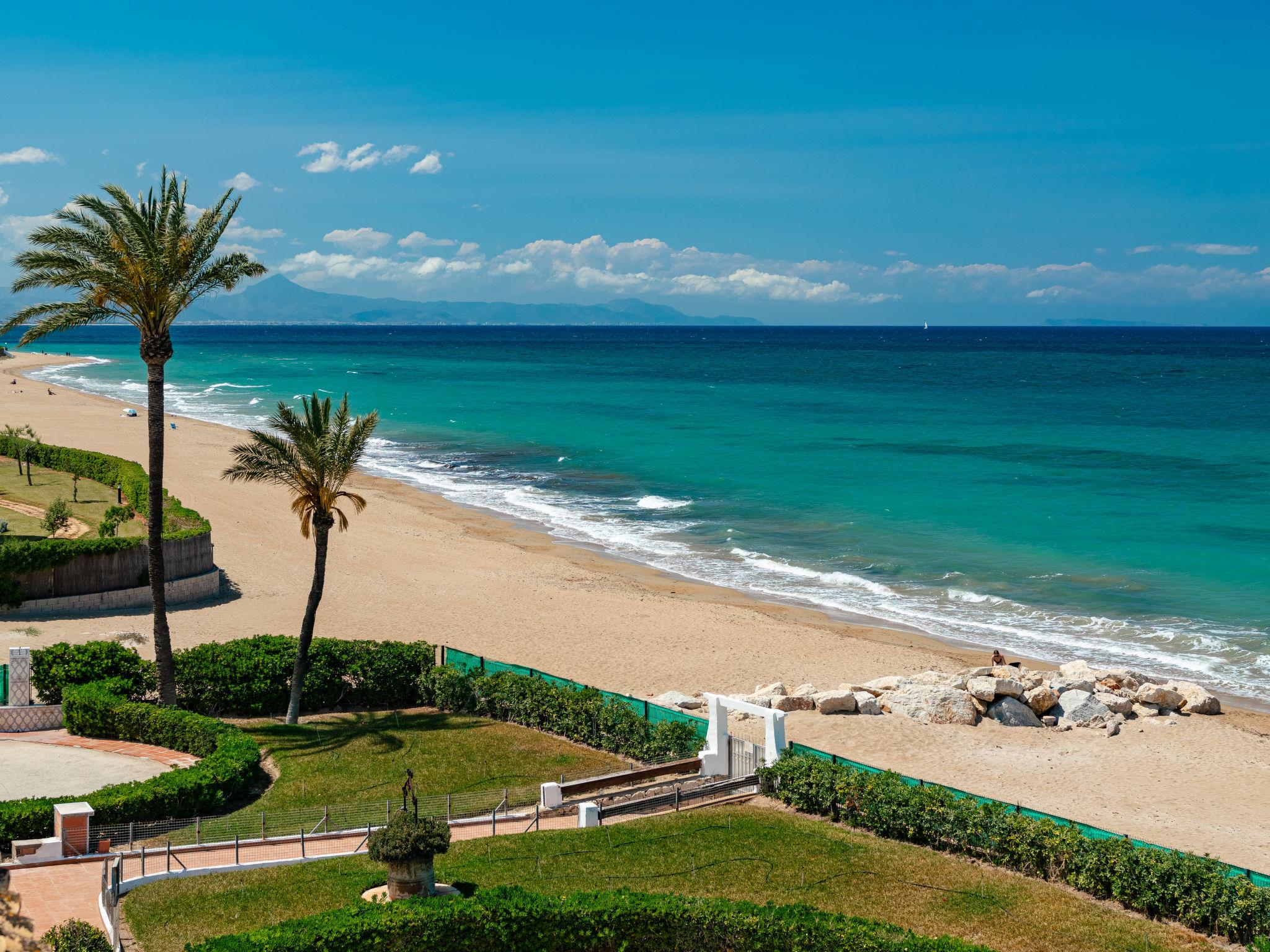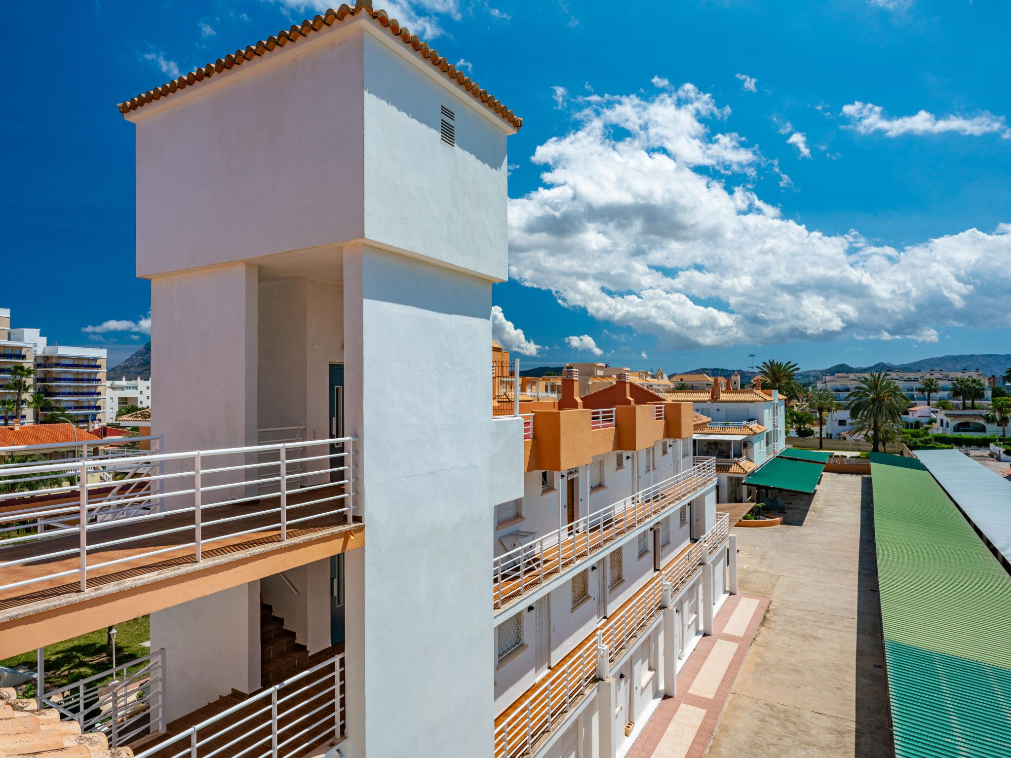 Les Marines 4 km from Dénia: Apartment block "Talima". In the district Les Marines, 50 m from the sea, 15 m from the beach, direct access to the beach, in a cul-de-sac. For shared use: garden (fenced) with lawn, swimming pool (16 x 8 m, depth 75 - 250 cm, seasonal availability: 01.Jan. - 31.Dec.). Outdoor shower. Supermarket 450 m, restaurant 200 m, bar, café, bus stop 450 m, railway station 6.4 km, ferry 5.4 km, sandy beach 30 m.