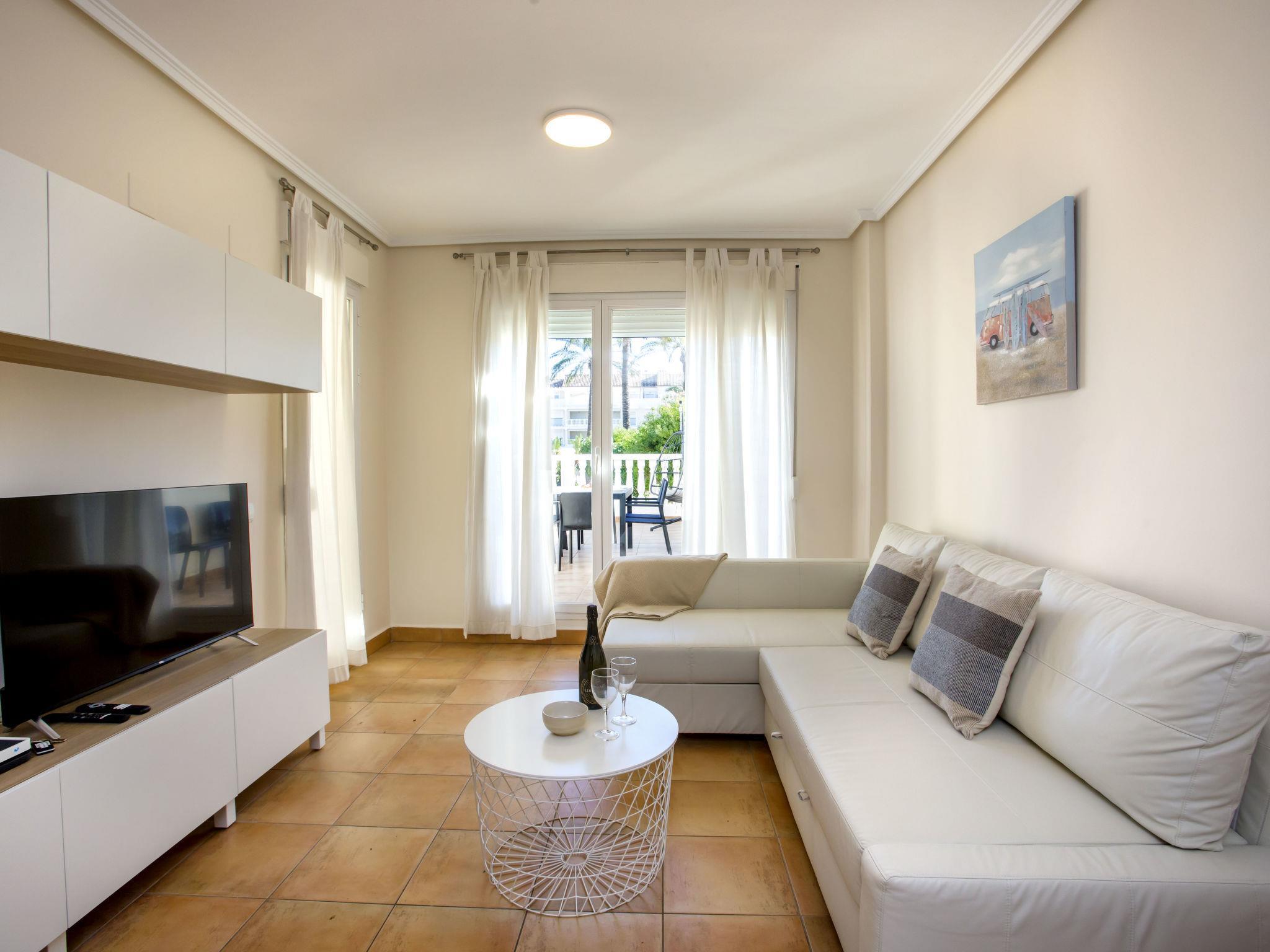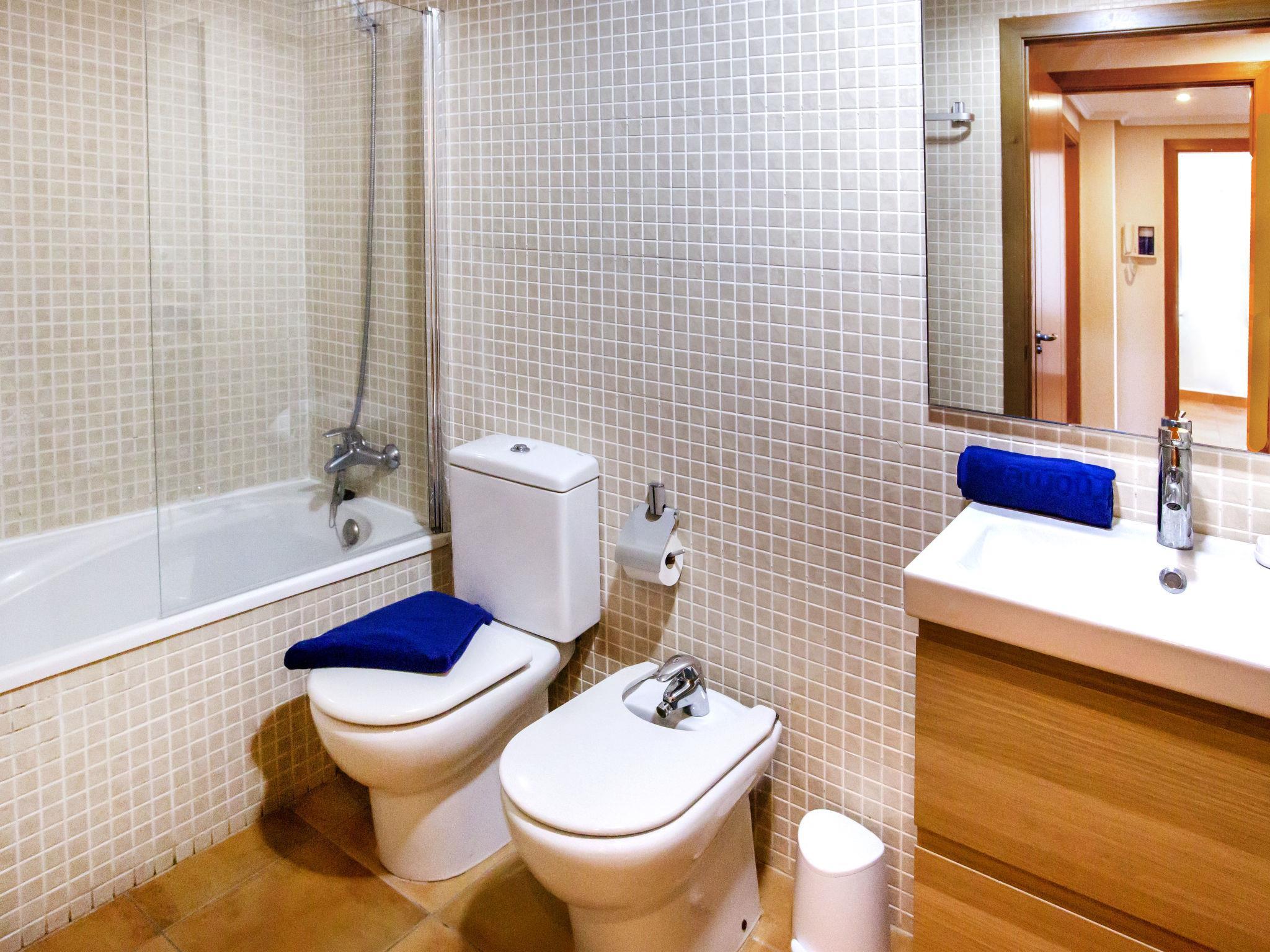 "Aquamarina", 3-room apartment 100 m2. Spacious and bright, comfortable and beautiful furnishings: living/dining room with digital TV, air conditioning and forced-air heating. Exit to the terrace, to the swimming pool. 1 room with 1 french bed (150 cm, length 200 cm), shower/WC, air conditioning and forced-air heating. Exit to the terrace, to the swimming pool. 1 room with 2 beds (90 cm, length 200 cm), air conditioning and forced-air heating. Kitchen (oven, dishwasher, 3 ceramic glass hob hotplates, toaster, kettle, microwave, freezer, electric coffee machine). Shower/WC. Large terrace 35 m2. Terrace furniture, deck chairs. Facilities: washing machine, iron, children's high chair, baby cot, hair dryer. Internet (WiFi, free). Garage. Please note: TV only ES. To be taken into account: the residence has a paddle tennis court. VT-512621A // Reg. Nr.: ESFCTU000003045000752709000000000000000000VT-512621A5