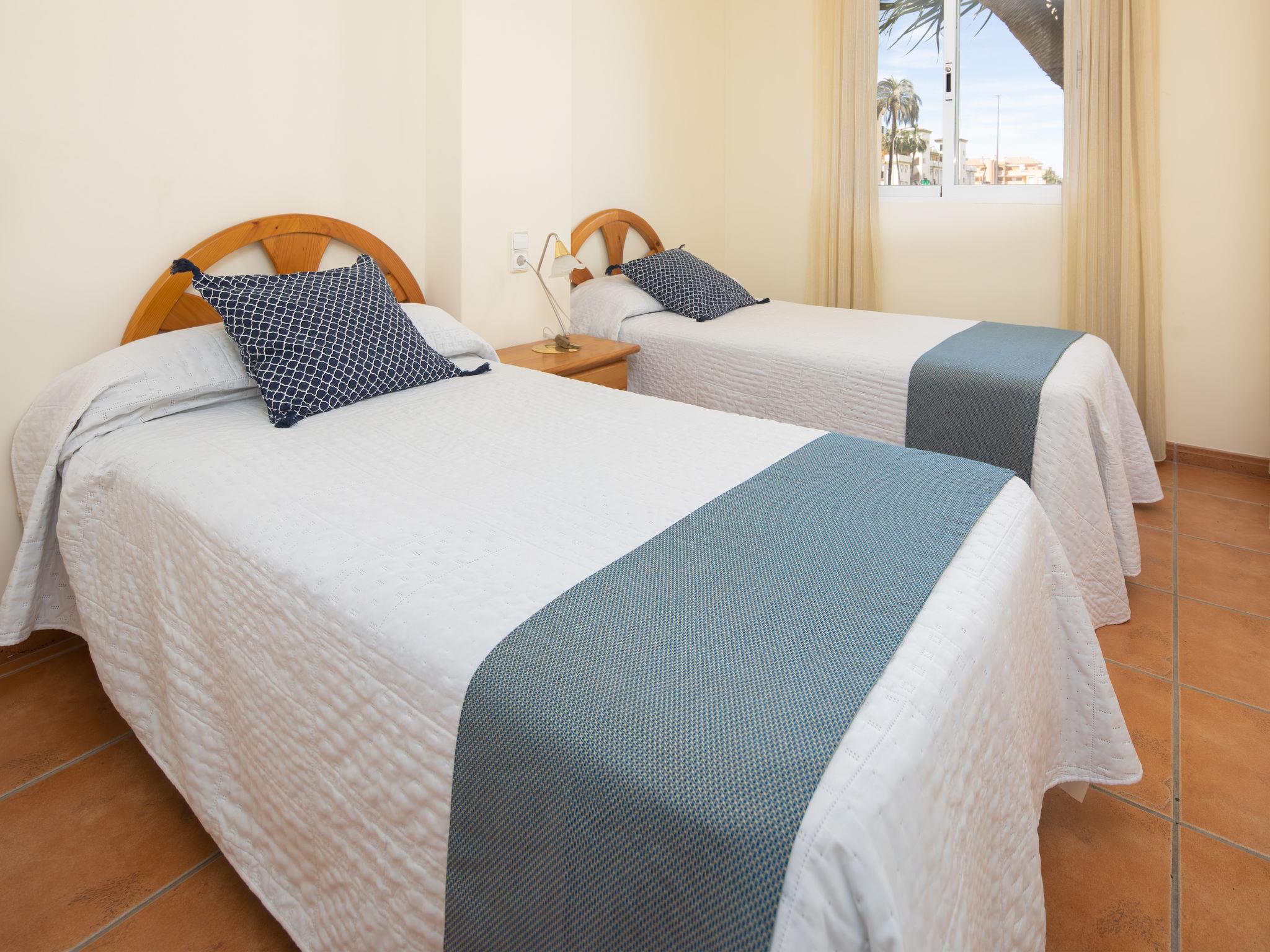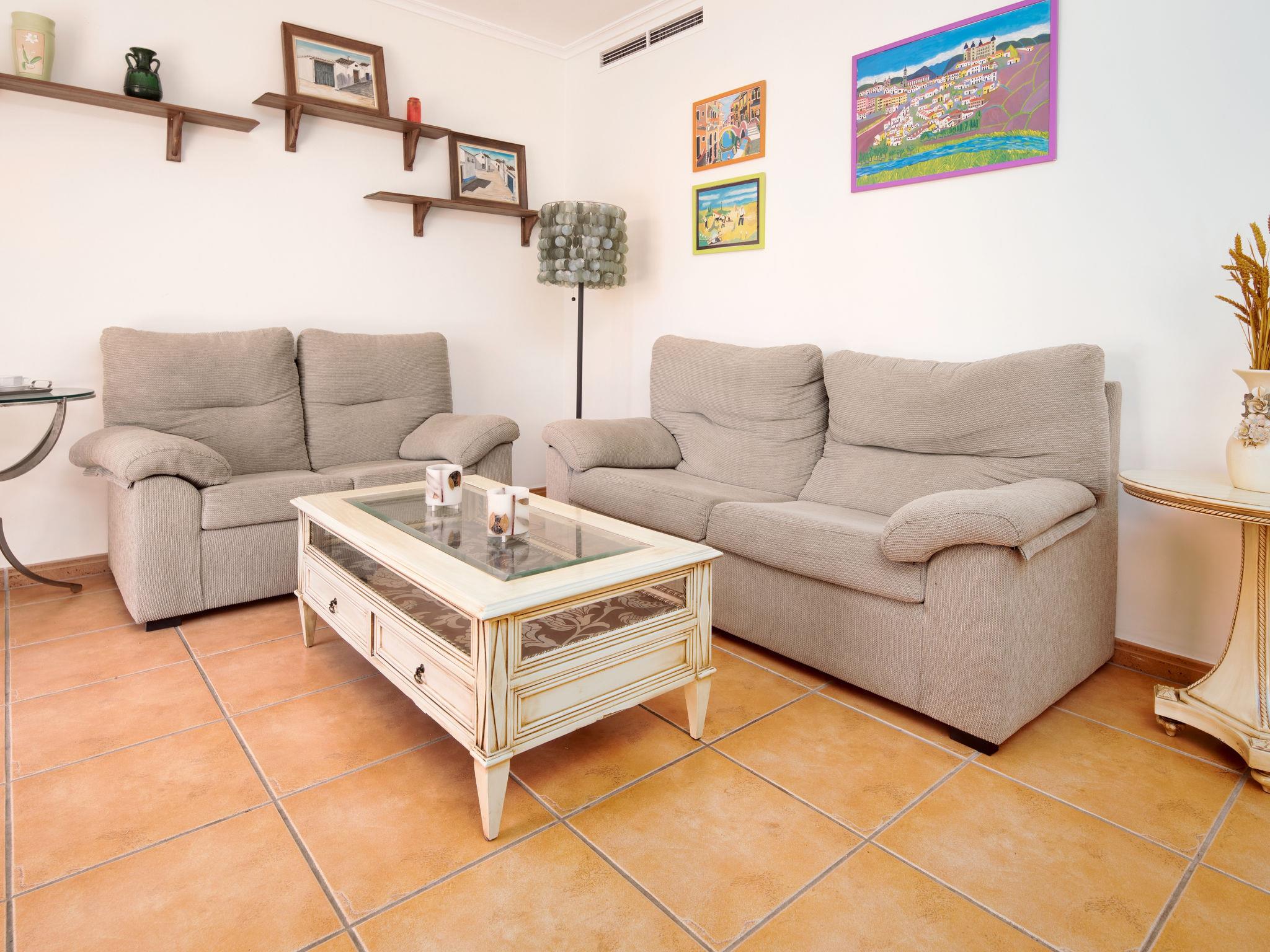"Los Aticos", 4-room apartment 120 m2. Spacious and bright, very comfortable and cosy furnishings: living/dining room with digital TV, air conditioning, fan and forced-air heating. Exit to the terrace, to the swimming pool. 1 room with 1 french bed (160 cm, length 200 cm), bath/bidet/WC, air conditioning and forced-air heating. 1 room with 2 beds (90 cm, length 200 cm), air conditioning and forced-air heating. Exit to the balcony. 1 room with 2 beds (90 cm, length 200 cm), air conditioning and forced-air heating. Kitchen (oven, dishwasher, 3 ceramic glass hob hotplates, toaster, microwave, freezer, electric coffee machine). Shower/WC. Large terrace 50 m2. Terrace furniture. Facilities: washing machine, iron, children's high chair, baby cot, hair dryer. Internet (WiFi, free). Garage. Please note: TV only ES. CV-VUT0463857-A