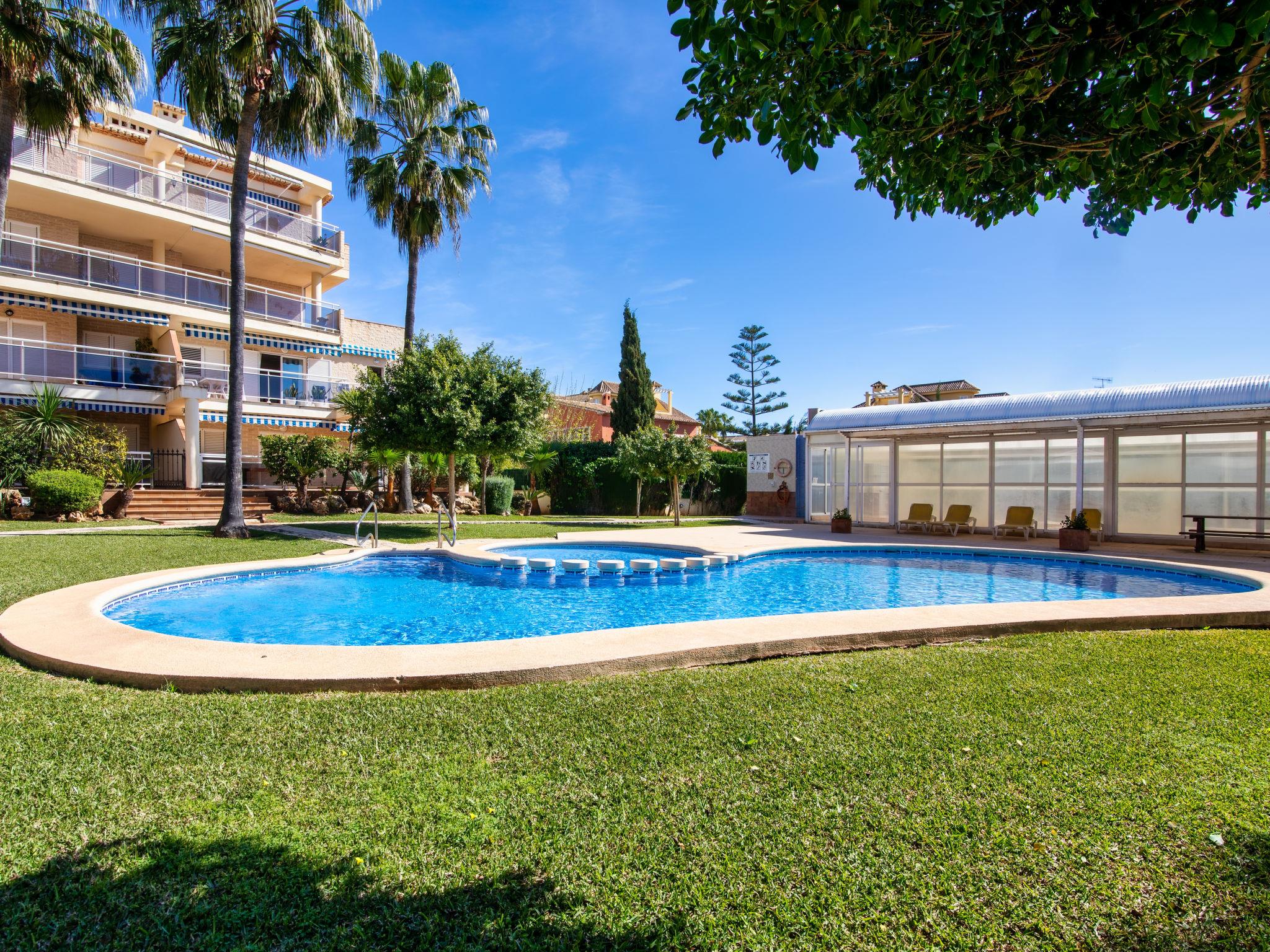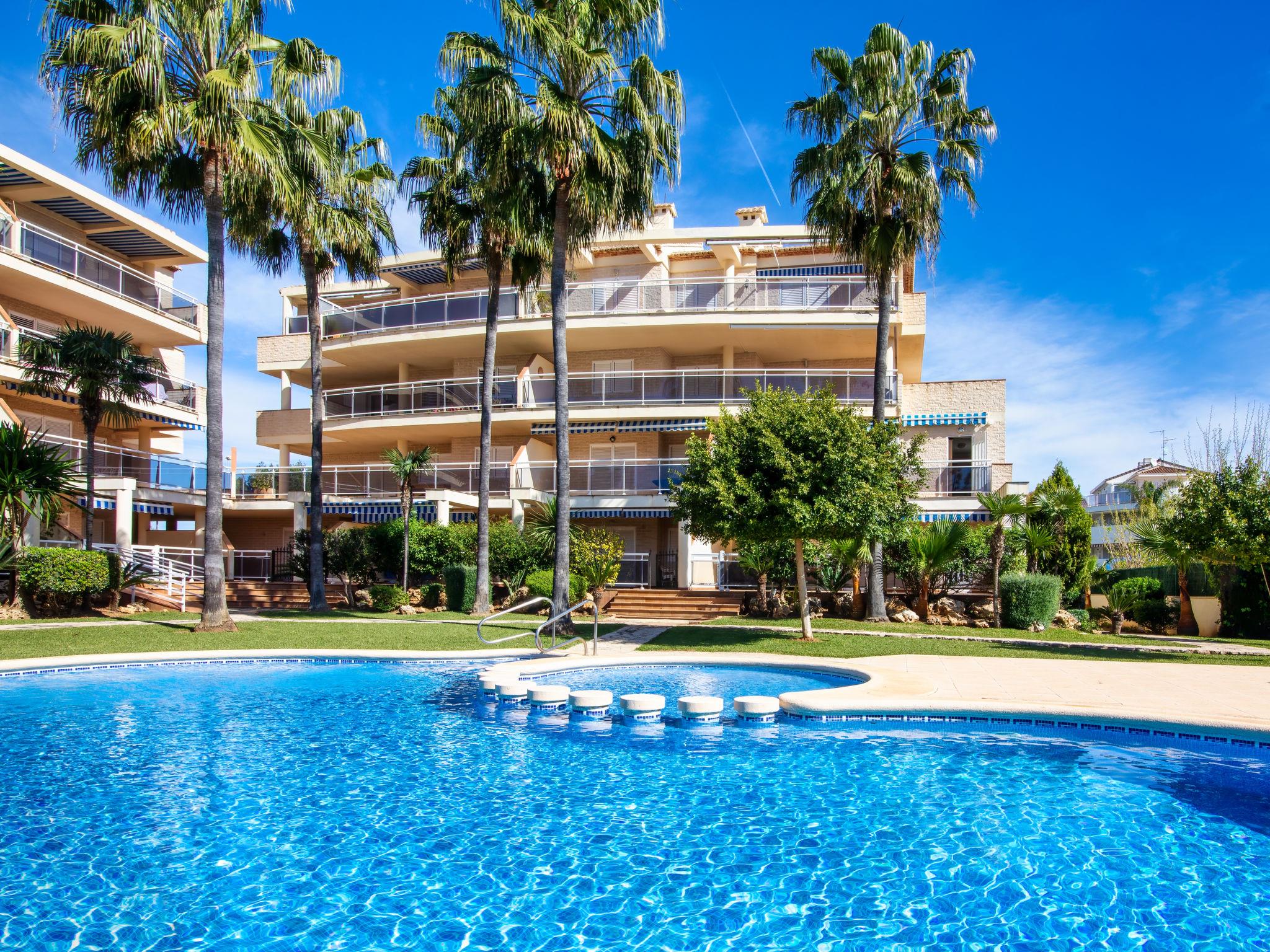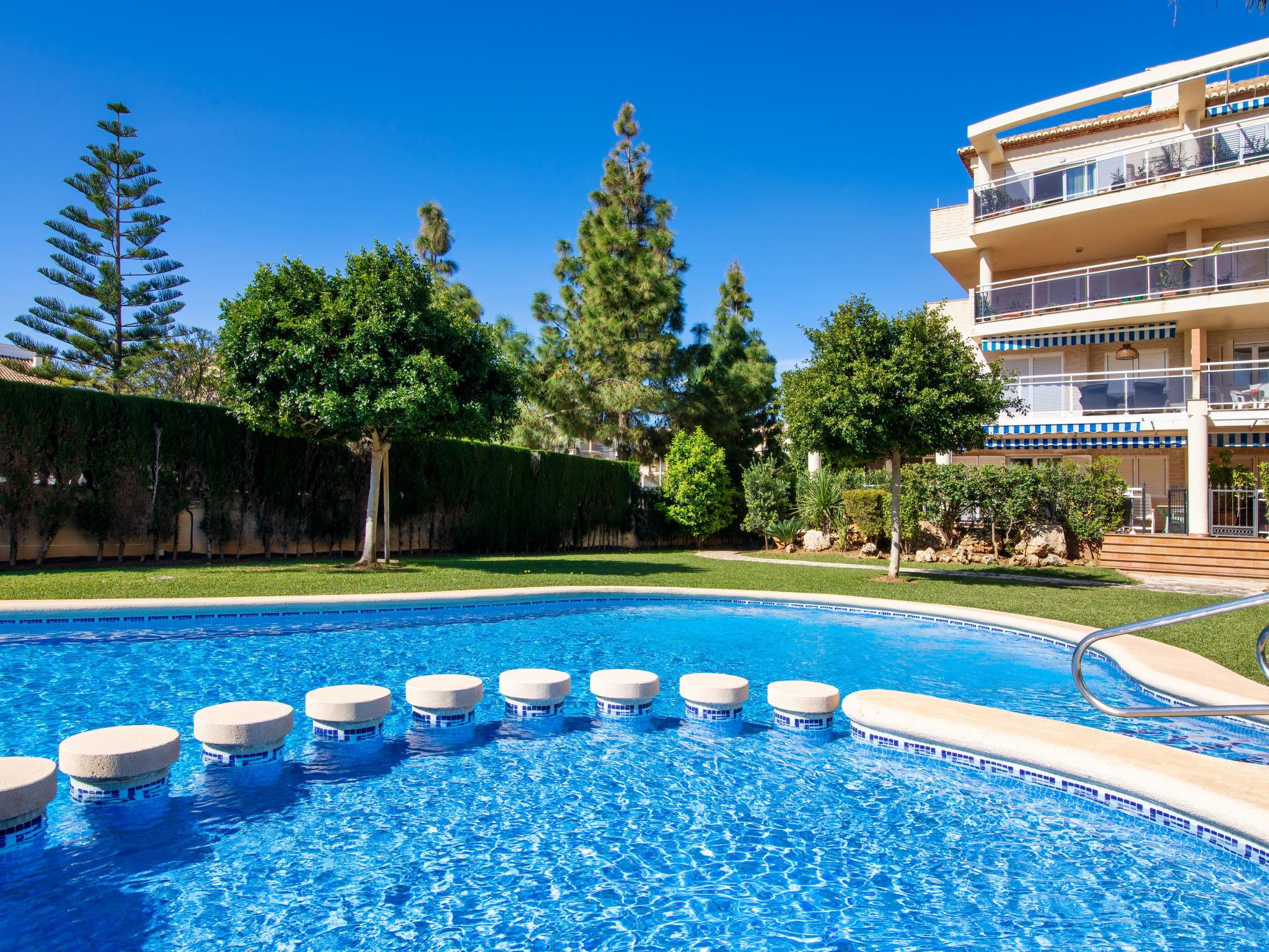 Very large, very beautiful, very comfortable apartment block "Los Aticos". In the resort 5 km from the centre of Dénia, in a quiet, sunny position, 350 m from the sea, 350 m from the beach. For shared use: large, beautiful, well-kept garden with lawn, 2 swimming pools, indoor pool (15 x 8 m, depth 110 - 210 cm, seasonal availability: 01.Jan. - 31.Dec.) with internal staircase. Shower/WC in the pool area, children's pool. Private: terrace (50 m2), garden furniture. In the complex: WiFi. Single garage. Shop 300 m, supermarket 170 m, restaurant, café 300 m, bus stop 100 m, railway station 6.2 km, ferry 5.7 km, sandy beach "Playa les Bovetes" 350 m. Surf school, sailing school 400 m. The owner does not accept any youth groups.