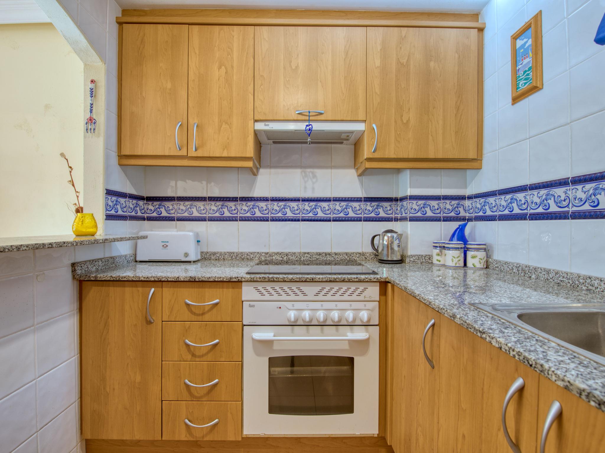 "Medina Sol I", 3-room apartment on the ground floor. Comfortable and cosy furnishings: living/dining room with digital TV, air conditioning and forced-air heating. Exit to the terrace, to the swimming pool. 1 room with 1 french bed (140 cm, length 190 cm), bath/bidet/WC, air conditioning and forced-air heating. 1 room with 2 beds (90 cm, length 180 cm), air conditioning and forced-air heating. Kitchen (oven, 4 ceramic glass hob hotplates, toaster, kettle, microwave, freezer, electric coffee machine). Shower/WC. Large terrace 38 m2, roofed, south facing position, large terrace 31 m2, roofed, north facing position. Terrace furniture, barbecue. Facilities: washing machine, iron, children's high chair, baby cot, hair dryer. Internet (WiFi, free). Please note: suitable for families. TV only ES. R0000000001