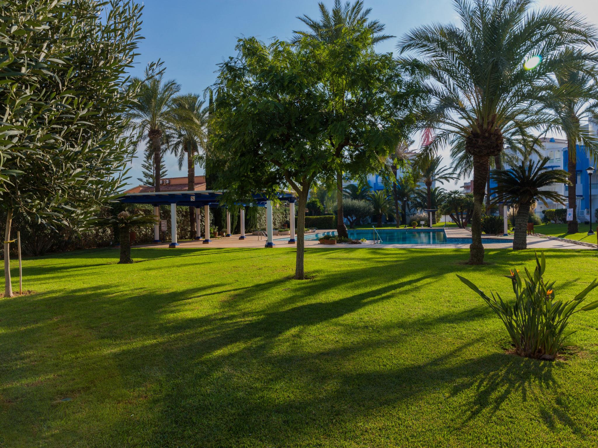 Very beautiful, cosy apartment block "Cala Blanca Denia". In the resort 5 km from the centre of Dénia, in a quiet, sunny position, from the sea, 400 m from the beach. For shared use: large, beautiful, well-kept garden with lawn, swimming pool angular (34 x 15 m, depth 40 - 180 cm, seasonal availability: 01.Jan. - 31.Dec.). Outdoor shower, parking on the premises. Supermarket 600 m, restaurant 140 m, bar 150 m, bus stop 400 m, railway station 6.5 km, ferry 6.5 km, sandy beach "Playa Els Molins" 400 m. Sports harbour 5 km, surf school, sailing school 500 m. The owner does not accept any youth groups.