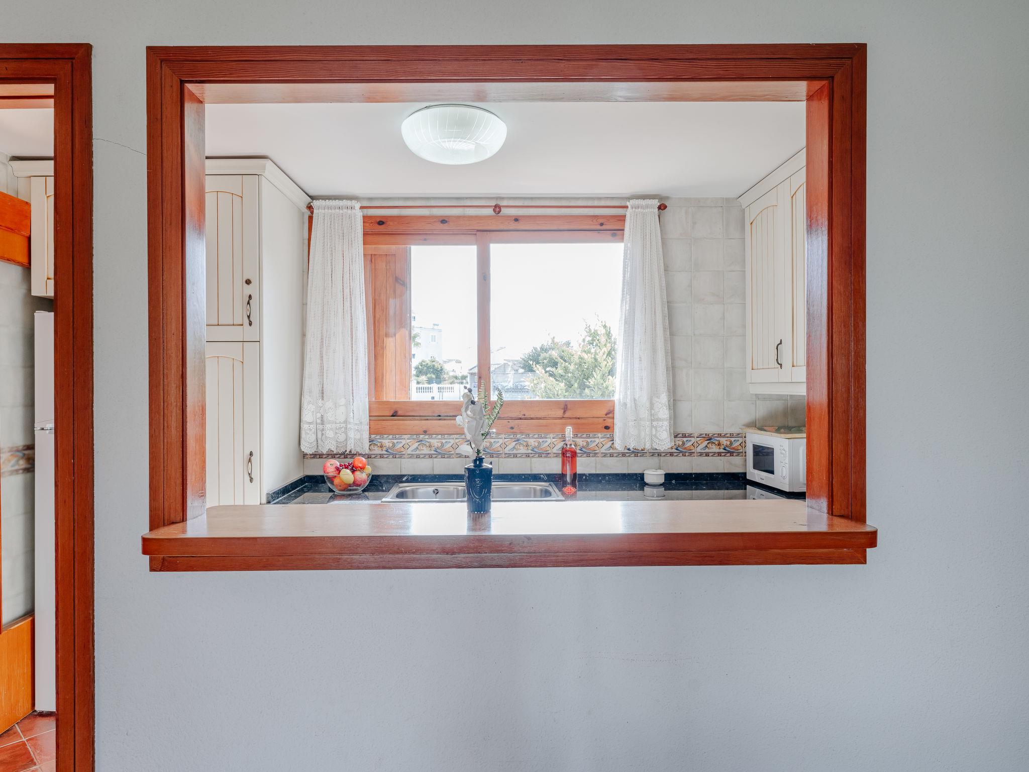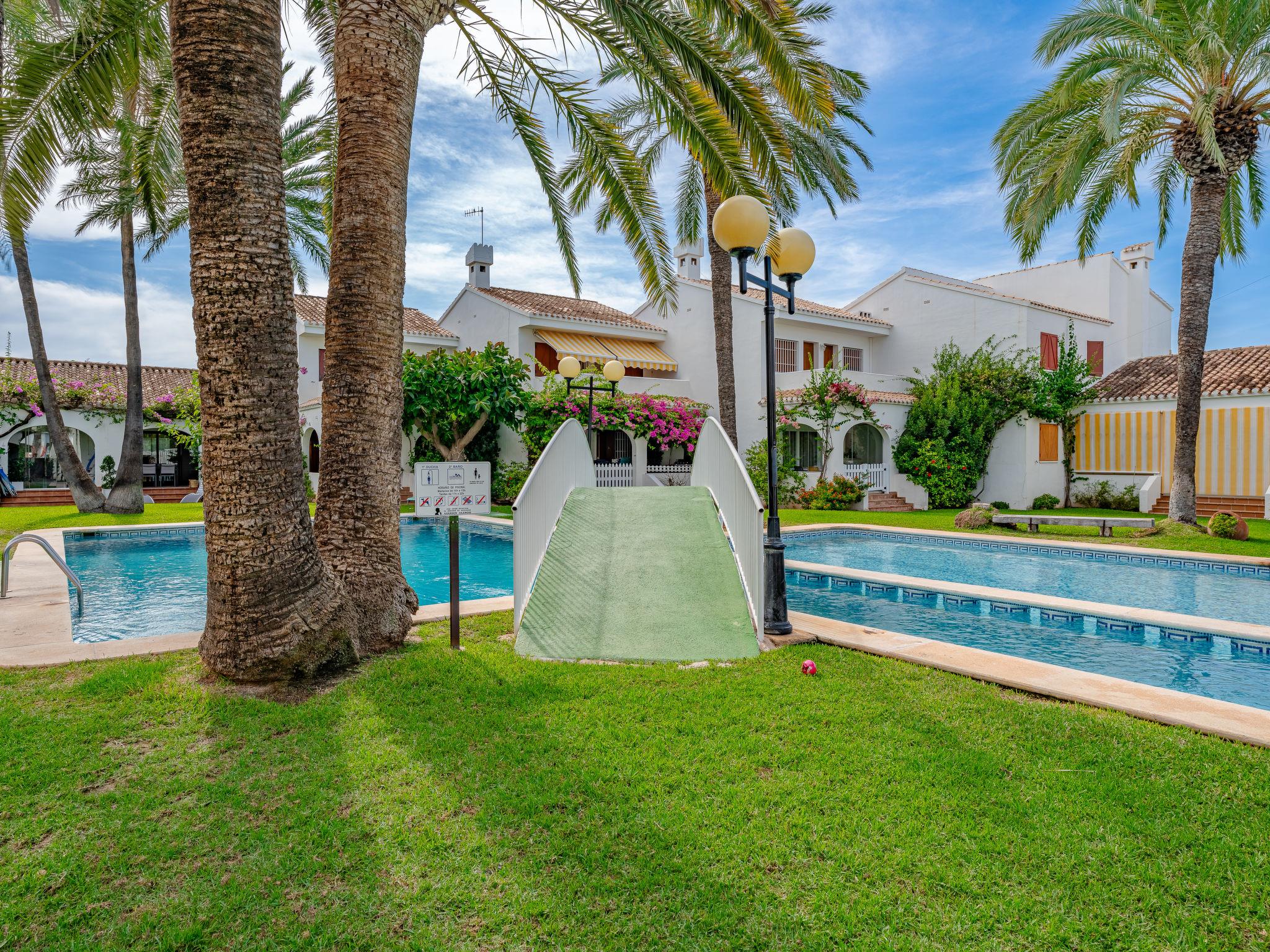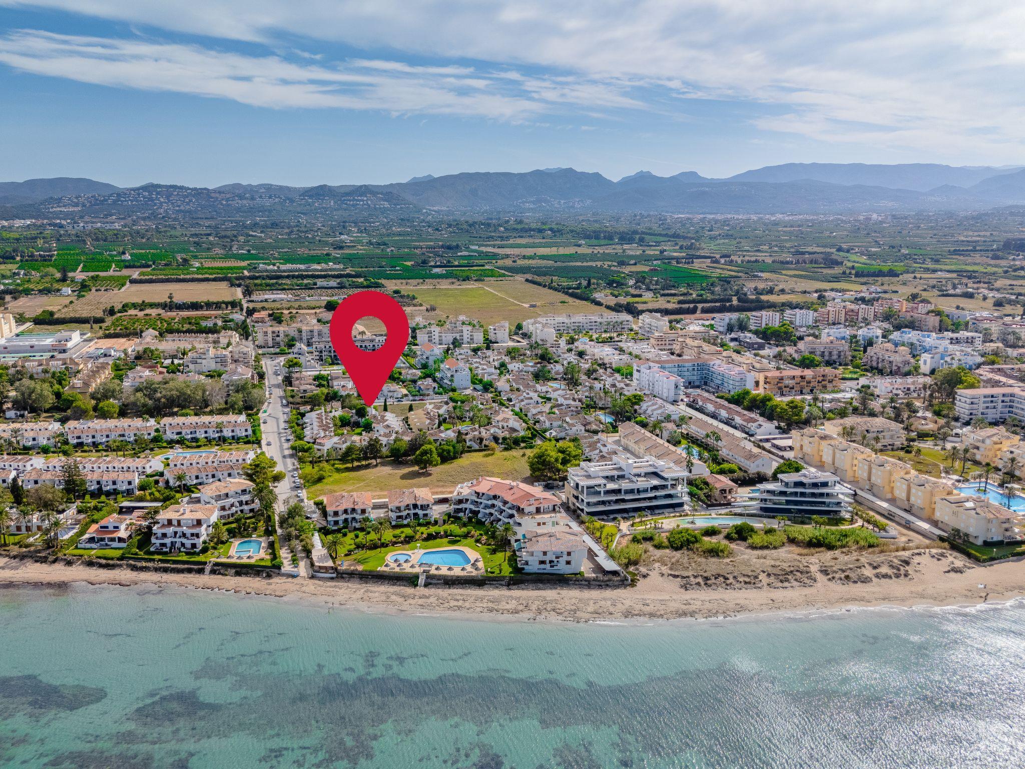 Beautiful, cosy apartment block "L'Escala". In the resort 5 km from the centre of Dénia, 10 m from the sea, direct access to the beach. For shared use: garden with lawn and plants, swimming pool kidney-shaped (19 x 14 m, depth 80 - 210 cm, seasonal availability: 01.Jan. - 31.Dec.) with internal staircase. Children's pool, outdoor shower, parking space n F4 on the premises. Supermarket 550 m, restaurant 600 m, bar 500 m, café 600 m, bus stop 400 m, railway station 6 km, ferry 5 km, sandy beach "Playa les Bovetes" 10 m. Surf school, sailing school 500 m. Please note: no lift. The owner does not accept any youth groups.
