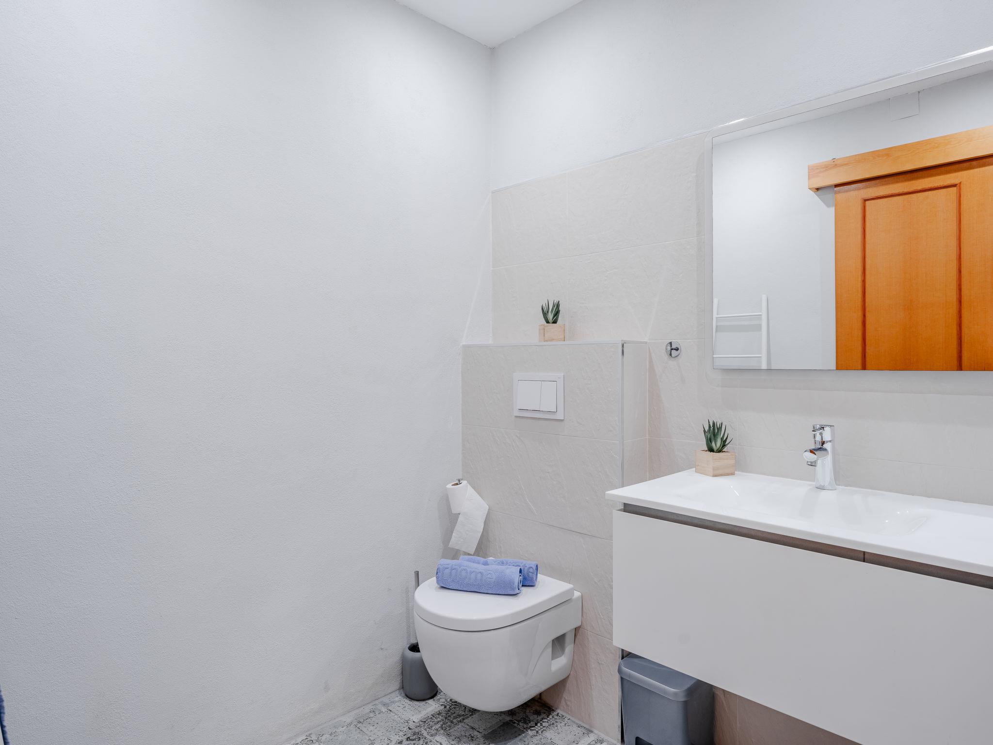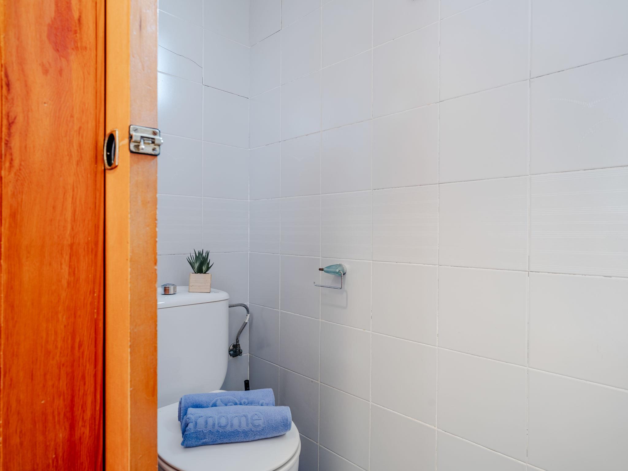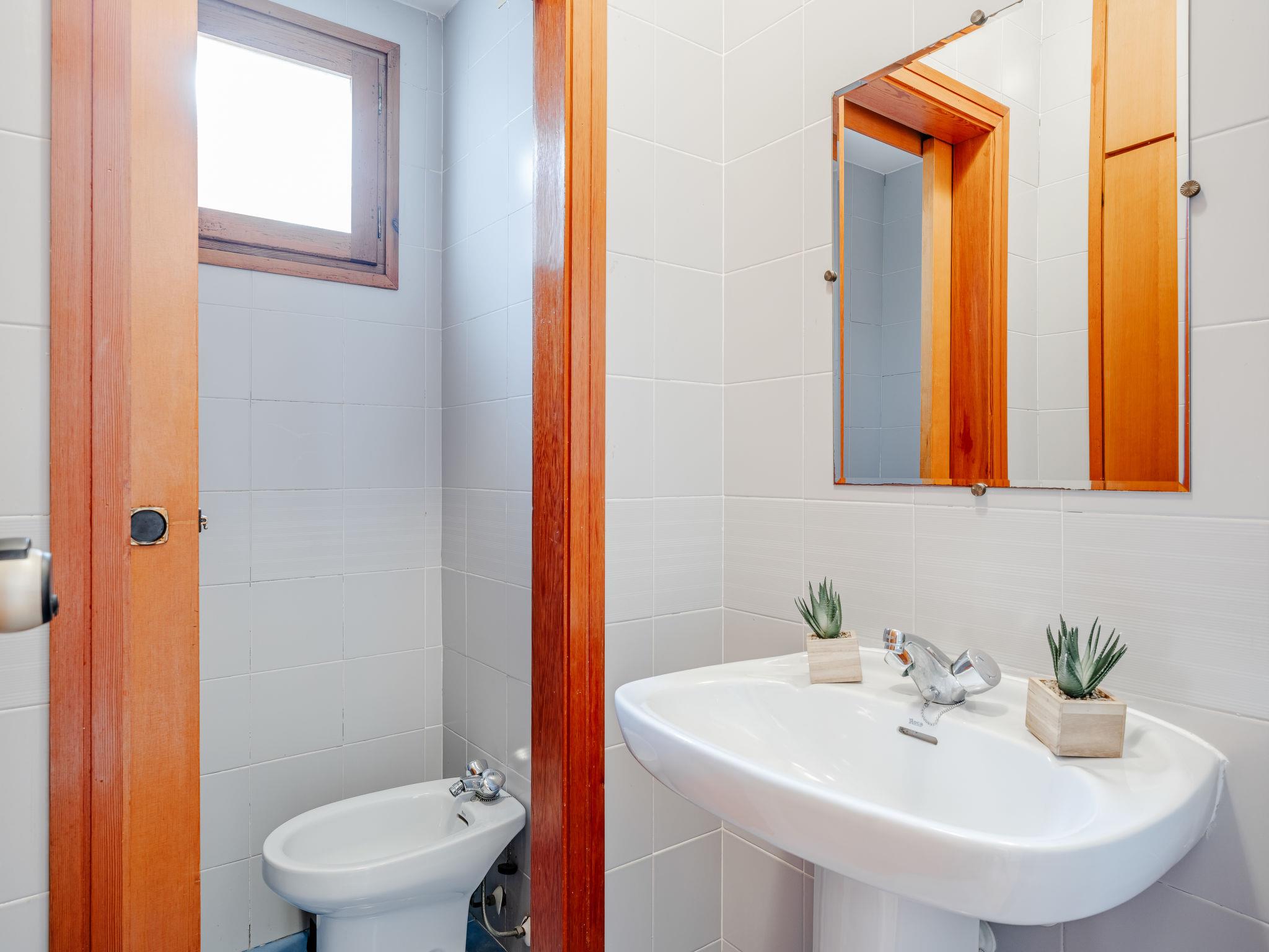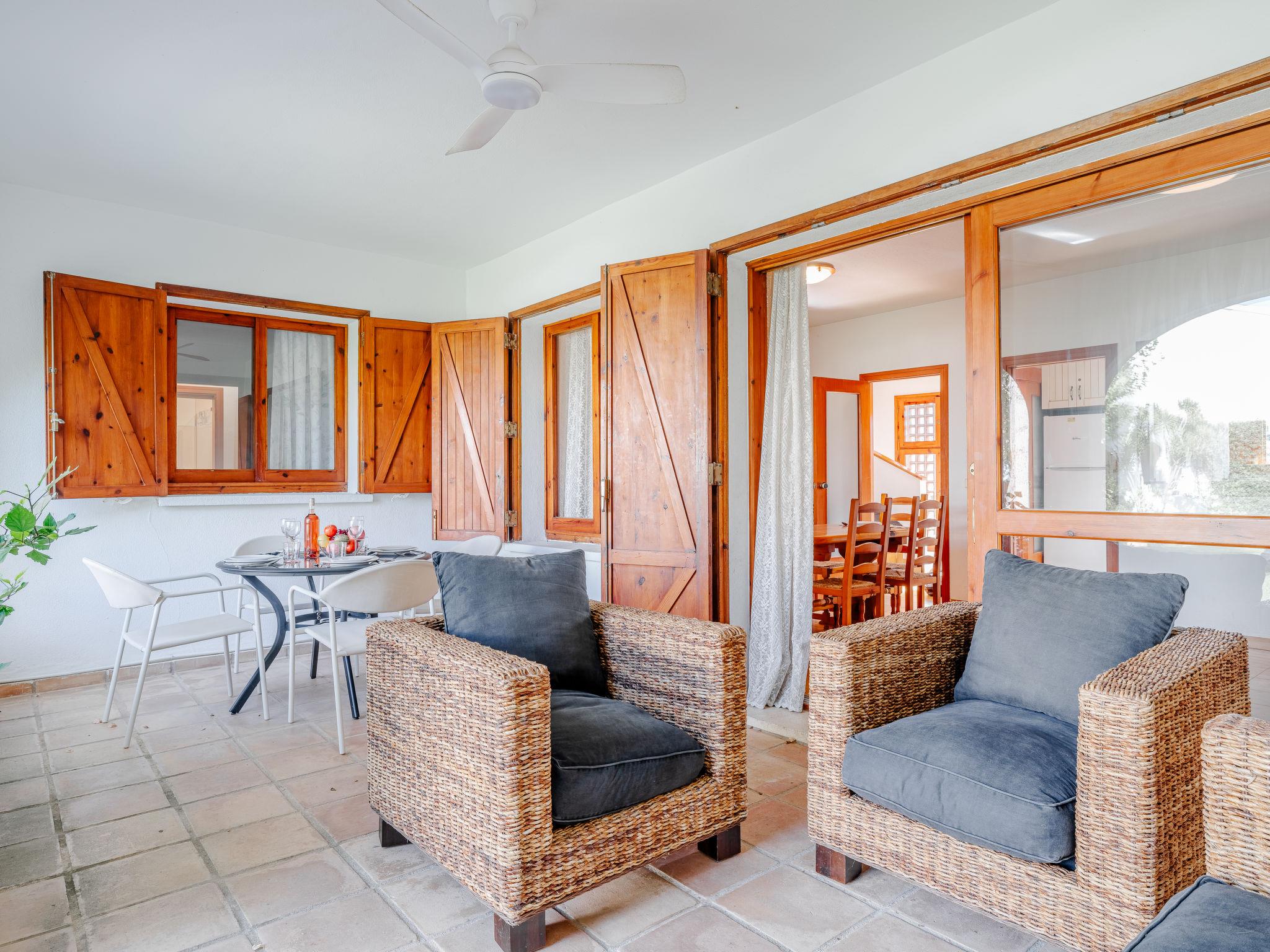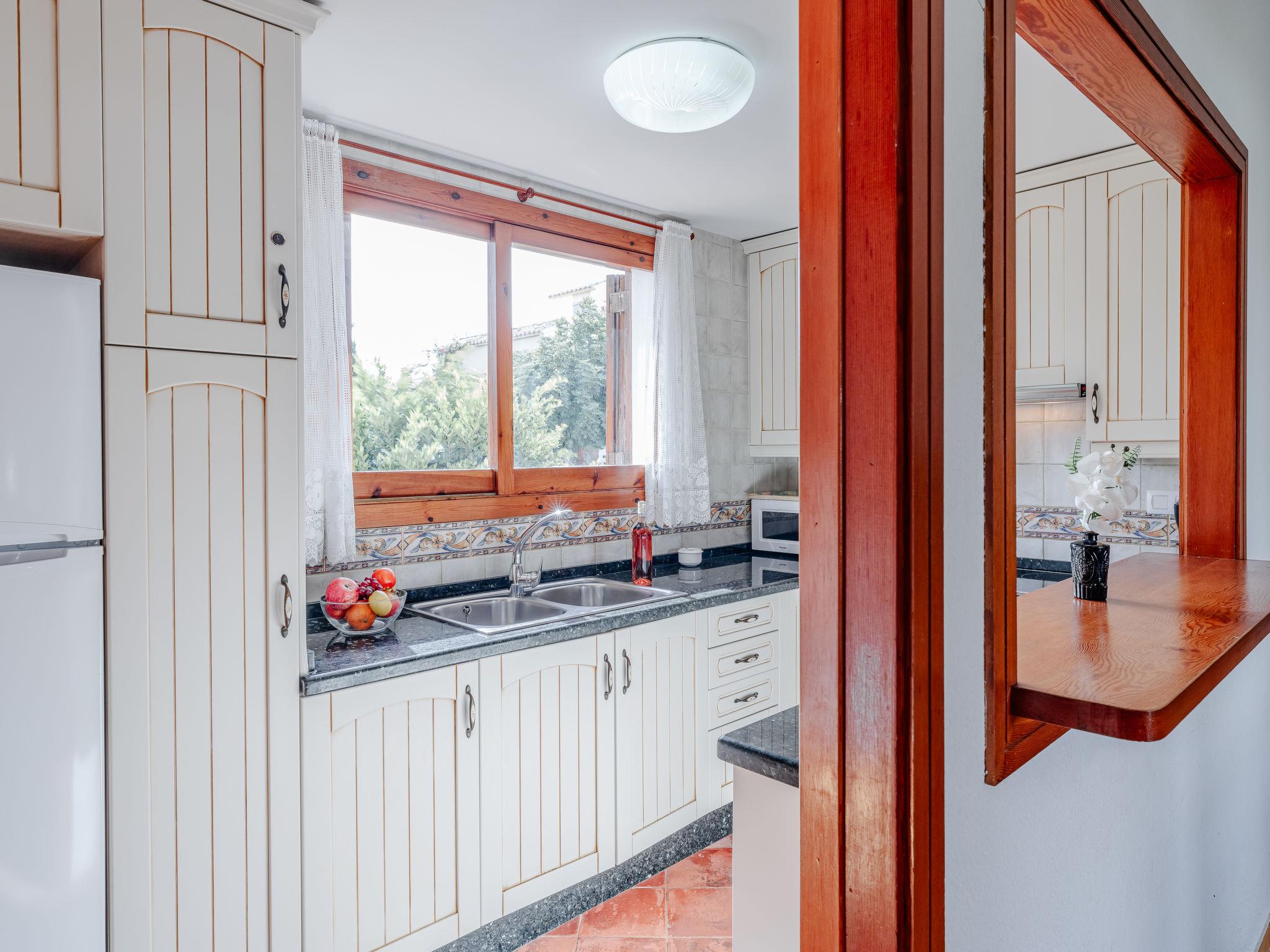 "L'Escala", 4-room terraced house 120 m2 on 3 levels. Spacious, simple and comfortable furnishings: living/dining room with satellite TV, digital TV, air conditioning and forced-air heating. Exit to the patio, to the swimming pool. Open kitchen (2 ceramic glass hob hotplates, 2 induction hot plates, toaster, kettle, microwave, freezer, electric coffee machine). On the lower ground floor: 1 room with 1 french bed (150 cm, length 190 cm), air conditioning, fan and forced-air heating. 1 room with 1 french bed (135 cm, length 190 cm), air conditioning and forced-air heating. Shower/WC. Upper floor: 1 room with 2 beds (90 cm, length 190 cm), air conditioning and forced-air heating. Exit to the balcony. Sep. WC. Large terrace. Terrace furniture. View of the garden. Facilities: washing machine, iron, hair dryer. Internet (WiFi, free). Garage. Please note: TV only ES, DE. CV-VUT0454025-A // Reg. Nr.: ESFCTU00000304500033741800000000000000000000004540258