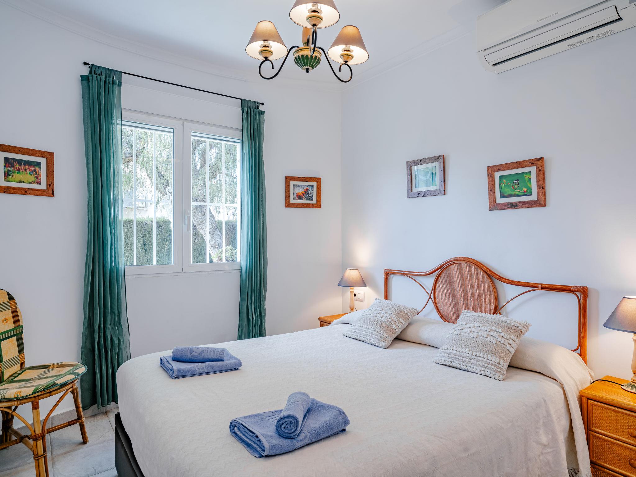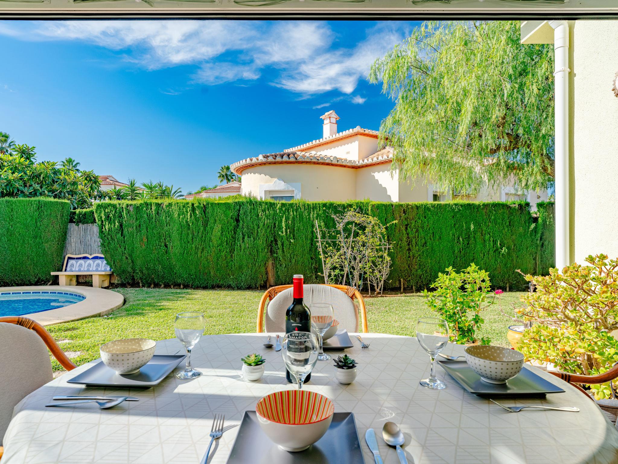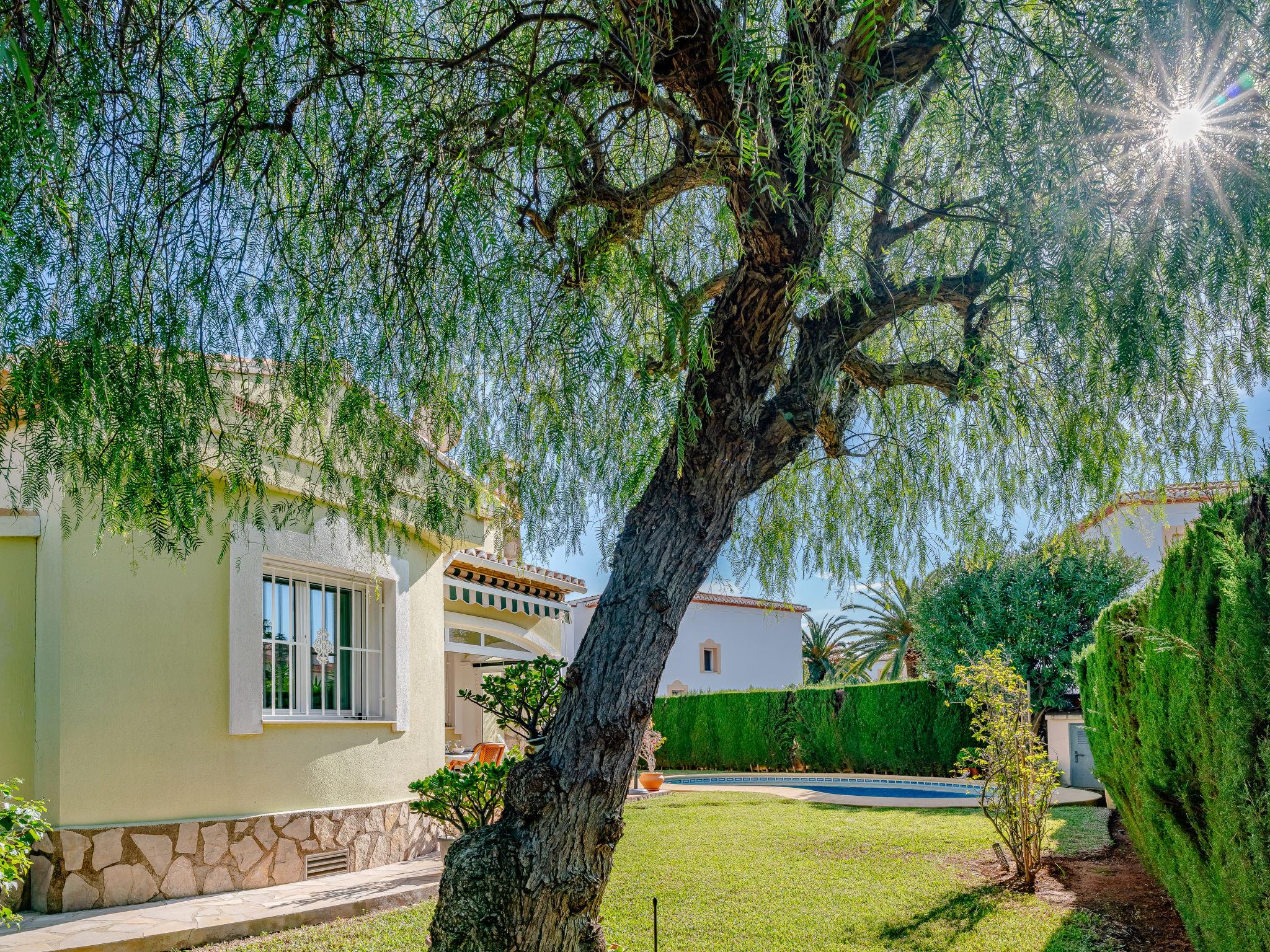 Beautiful, cosy house "Maison Xoriguer". On the outskirts, 4 km from the centre of Dénia, in a quiet, sunny position, 700 m from the sea, 700 m from the beach. Private: large, well-kept garden with lawn and wildlife garden, swimming pool kidney shaped (8 x 4 m, depth 40 - 220 cm, seasonal availability: 01.Jan. - 31.Dec.) with internal staircase. Outdoor shower, roofed, parking. Shop, supermarket 300 m, restaurant 50 m, bakery, café 650 m, bus stop 700 m, sandy beach "Les Marines" 700 m. Sports harbour 3.8 km, tennis 3 km.