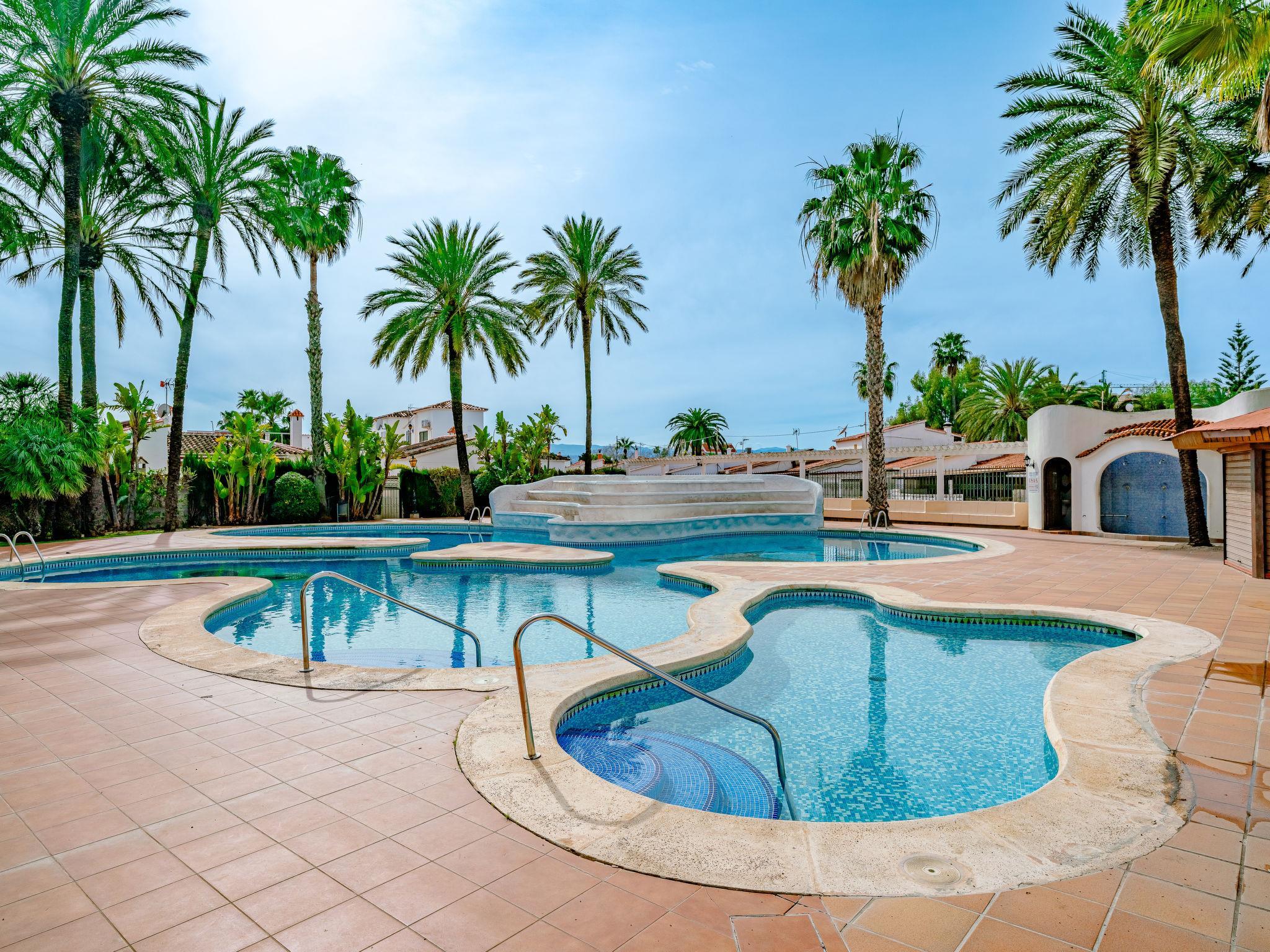 Beautiful, cosy apartment block "Essence", renovated. In the district of Las Marinas, in the resort 3 km from the centre of Denia, in a sunny position, 280 m from the sea, 280 m from the beach. For shared use: swimming pool (23 x 20 m, depth 40 - 210 cm, seasonal availability: 01.Jan. - 31.Dec.) with internal staircase. Unconventional pool shape. Shower/WC in the pool area, children's pool. Shop 1 km, supermarket 1.5 km, restaurant, bar 280 m, bakery 1 km, café 280 m, bus stop 350 m, sandy beach "Les Marines" 280 m. Sports harbour 3 km, marina 3 km, tennis 1.5 km. The owner does not accept any youth groups.