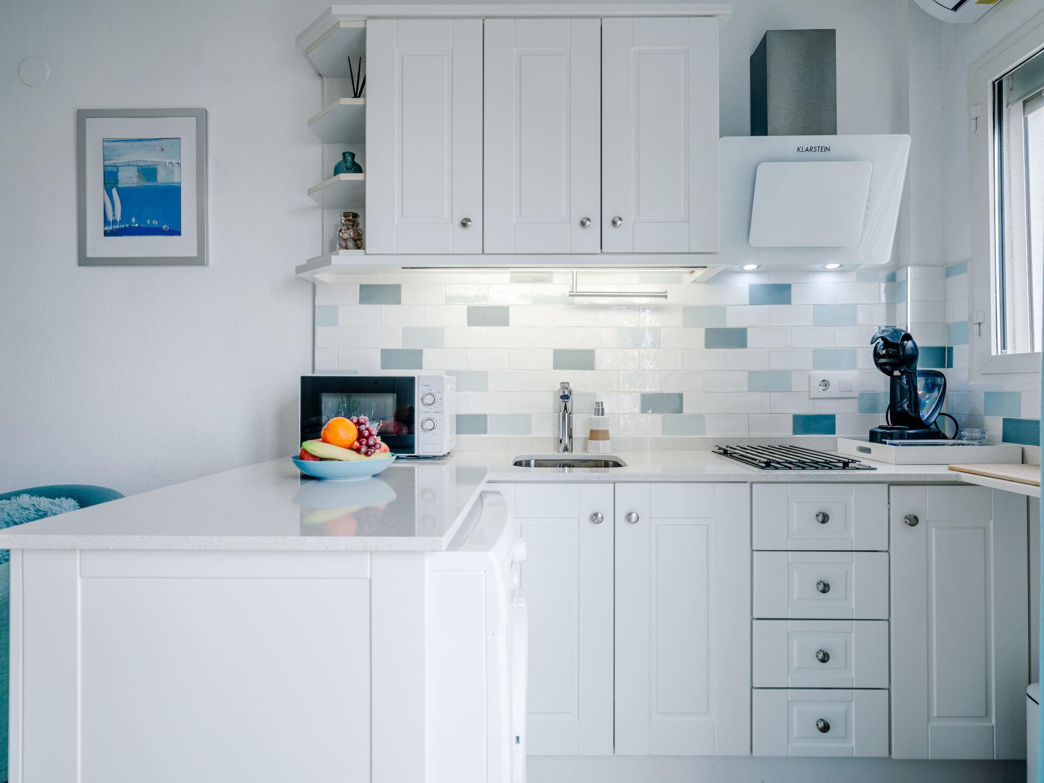 "Essence", 2-room apartment 32 m2. Bright, very beautiful and stylish furnishings: living/dining room with digital TV, air conditioning and forced-air heating. Exit to the balcony. 1 room with 1 french bed (150 cm, length 190 cm), fan. Exit to the balcony. Open kitchen (2 induction hot plates, toaster, microwave, freezer, grill, electric coffee machine, Capsules for coffee machine (Dolce Gusto) extra). Shower/WC. 2 balconies. Facilities: washing machine, iron, hair dryer. Internet (WiFi, free). Please note: TV only ES. VT-472669-A // Reg. Nr.: ESFCTU00000304500035731700000000000000000VT-472669-A3