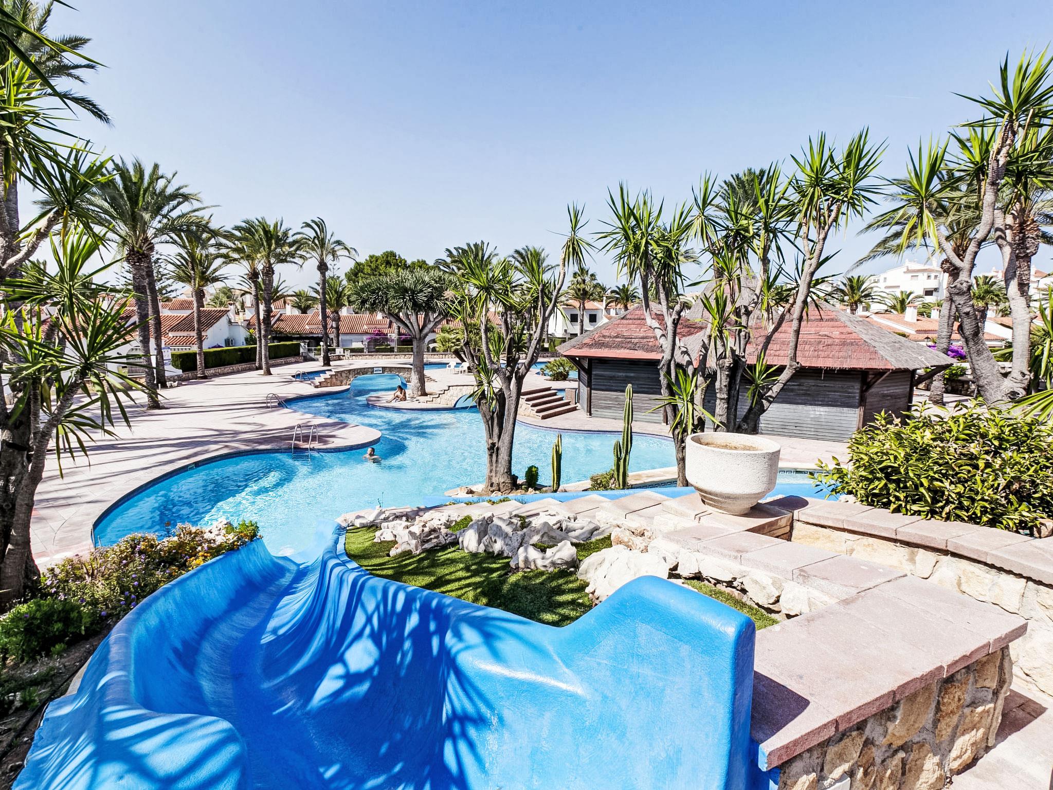 Residence with 2 shared swimming pools. Tennis open from middle of June to middle September (extra) 250 m away. Large, cosy residence "El Palmar 9". In the district of Las Marinas, 4.5 km from the centre of Dénia, 400 m from the sea, road to cross. For shared use: swimming pool (35 x 30 m, depth 80 - 210 cm, seasonal availability: 01.Jan. - 31.Dec.) with internal staircase. Children's pool, slide, children's playground, public car park. Supermarket 400 m, restaurant 300 m, bar, café 300 m, bus stop 300 m, sandy beach 400 m. Golf course (18 hole) 11 km, tennis 2 km. Please note: no lift.