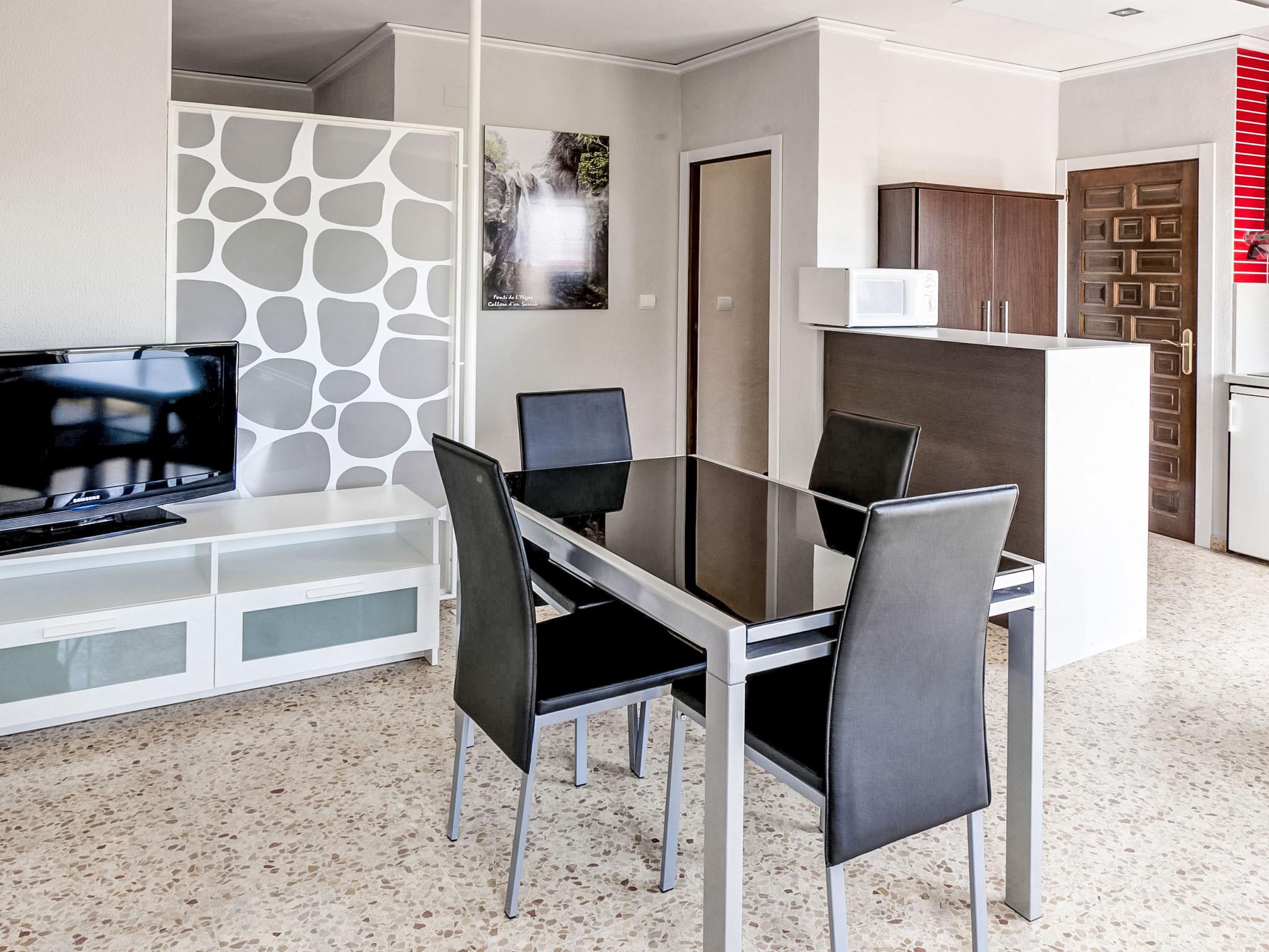"Residencia El Palmar", 2-room apartment 45 m2. Bright, renovated in 2017, simple and tasteful furnishings: living/dining room with 1 sofabed (135 cm, length 70 cm), digital TV, flat screen, air conditioning and forced-air heating. Exit to the balcony. 1 room with 2 beds (90 cm, length 180 cm). Open kitchen (2 ceramic glass hob hotplates, toaster, kettle, microwave, electric coffee machine) with air conditioning and forced-air heating. Exit to the balcony. Shower/WC. Facilities: iron, children's high chair, baby cot for up to 2 year olds. Internet (WiFi, free). AT-458589-A // Reg. Nr.: ESFCTU00000304500034028900000000000000000AT-458589-A7