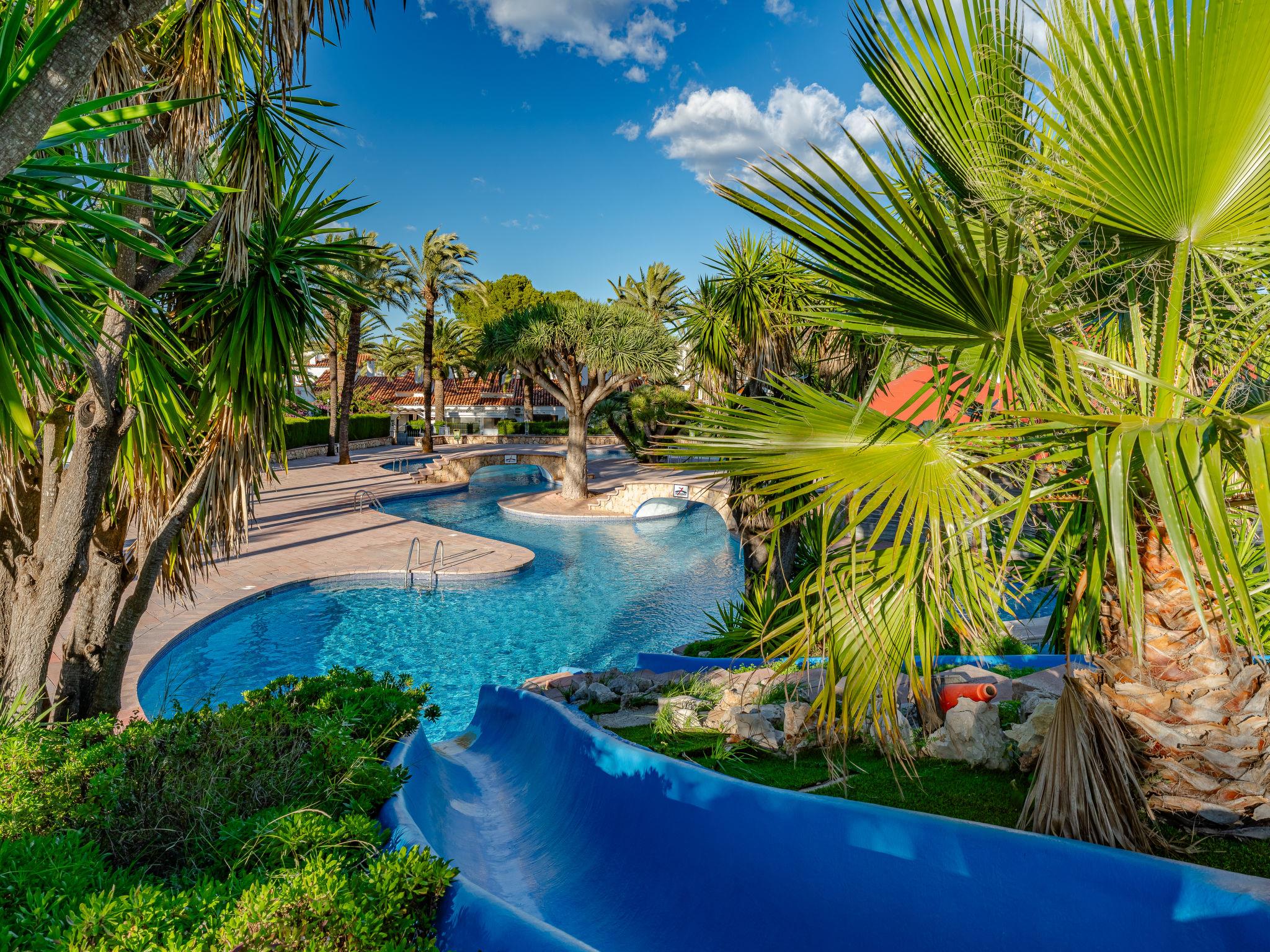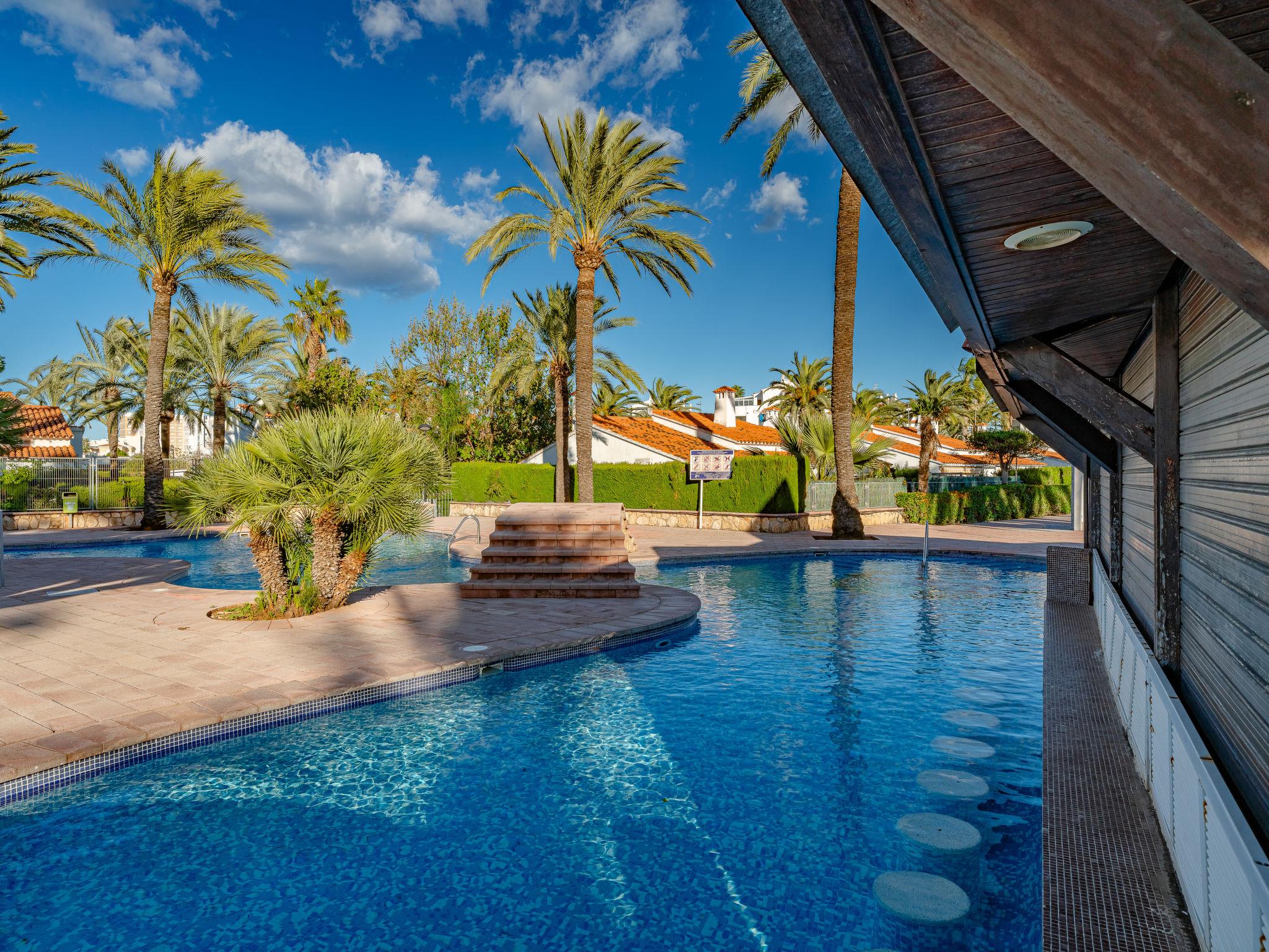 Very beautiful, cosy, very comfortable terraced house "Residencia La Perla". In the resort 4 km from the centre of Dénia, from the sea, 700 m from the beach. For shared use: 2 swimming pools (seasonal availability: 01.Jan. - 31.Dec.) with internal staircase. Unconventional pool shape. Children's pool, slide, outdoor shower, children's playground. Private: property with lawn, parking at the house. Shop 300 m, supermarket 900 m, restaurant 400 m, bar 450 m, bus stop 800 m, railway station 6 km, ferry 6 km, sandy beach "Playa de les Bovetes" 700 m. Sports harbour 4.5 km, marina 4.5 km, sailing school 700 m. The owner does not accept any youth groups.