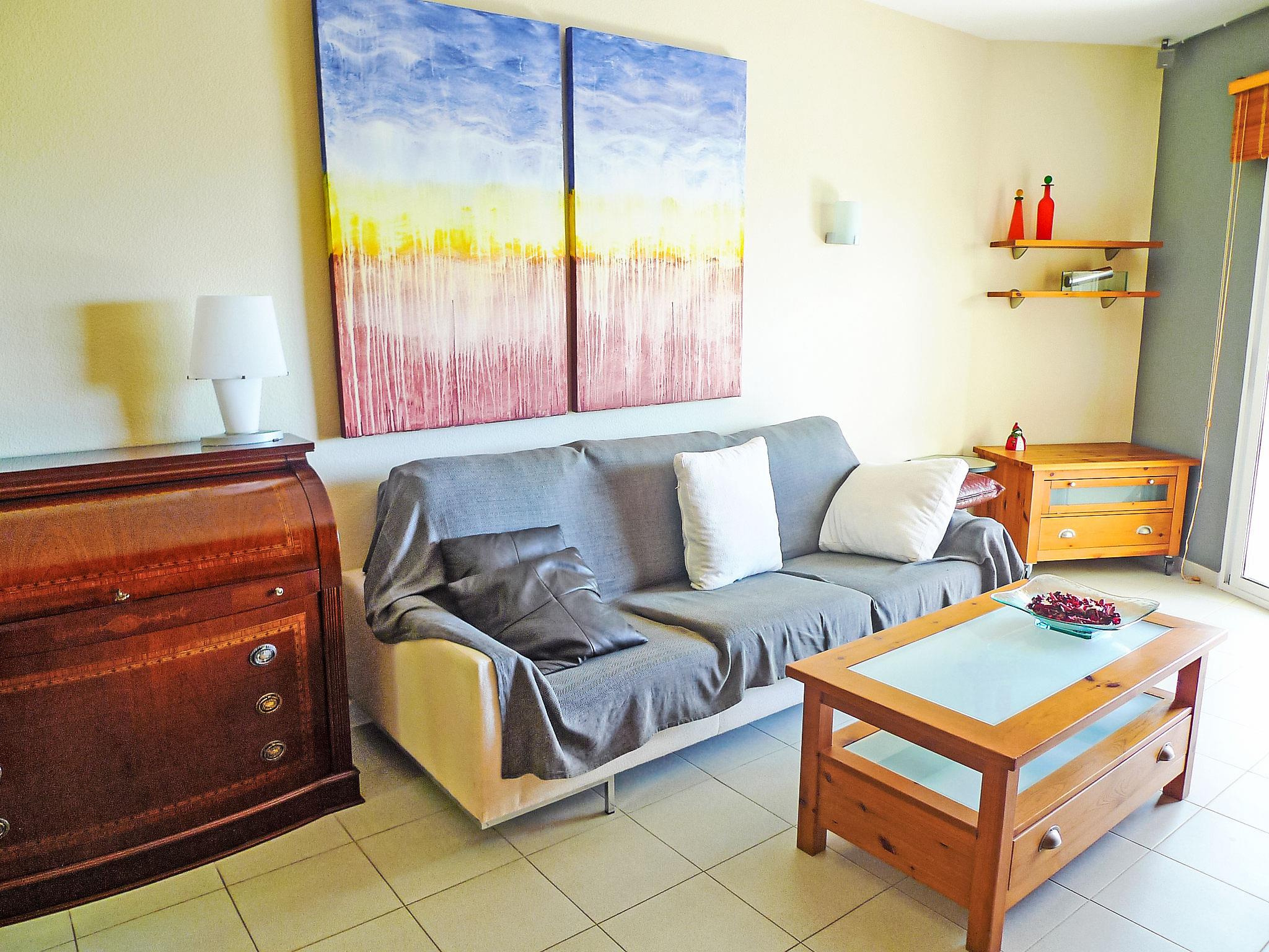 4-room apartment 64 m2 on 1st floor. Bright, comfortable furnishings: living/dining room with digital TV and flat screen. Exit to the terrace. 1 room with 1 french bed, bath/WC and hand-basin. 1 room with 2 beds. Open kitchen (oven, dishwasher, 4 ceramic glass hob hotplates, toaster, kettle, microwave, freezer, electric coffee machine). Shower/WC. Air-conditioning, forced-air heating. Terrace 14 m2. Terrace furniture. View of the sea, the swimming pool and the garden. Facilities: washing machine, iron, hair dryer. Internet (WiFi, free). Parking. Maximum 1 pet/ dog allowed. AT-437862-A // Reg. Nr.: ESFCTU00000304500052499300000000000000000AT-437862-A4