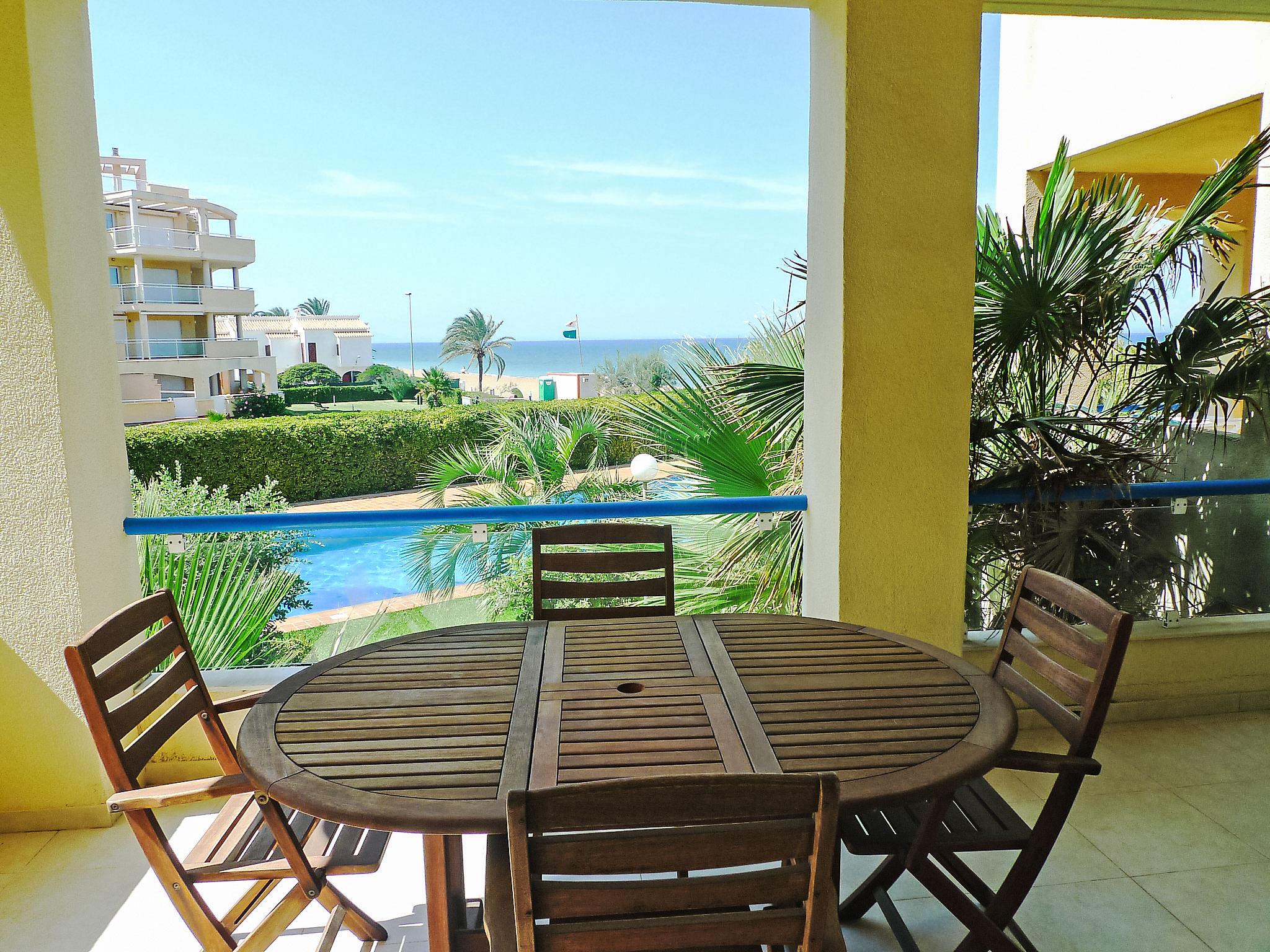 Apartment block "Las Dunas". 7 km from the centre of Dénia, 20 m from the sea, on the beach. For shared use: well-kept garden with lawn, swimming pool (9 x 16 m, seasonal availability: 01.Jan. - 31.Dec.) with internal staircase. In the house: lift. Parking on the premises. Supermarket 200 m, restaurant 300 m, bus stop 100 m, sandy beach 20 m. The owner does not accept any youth groups.