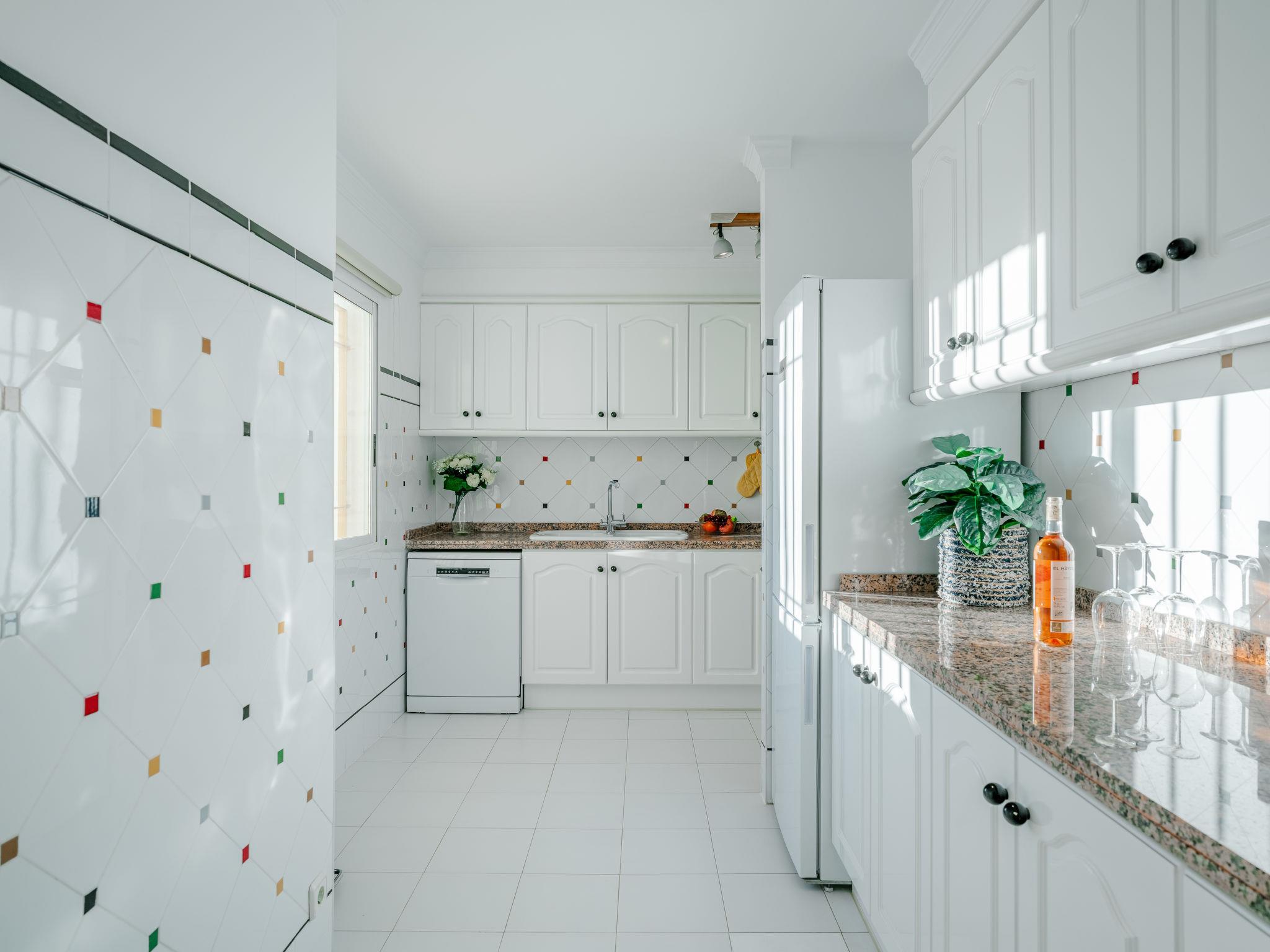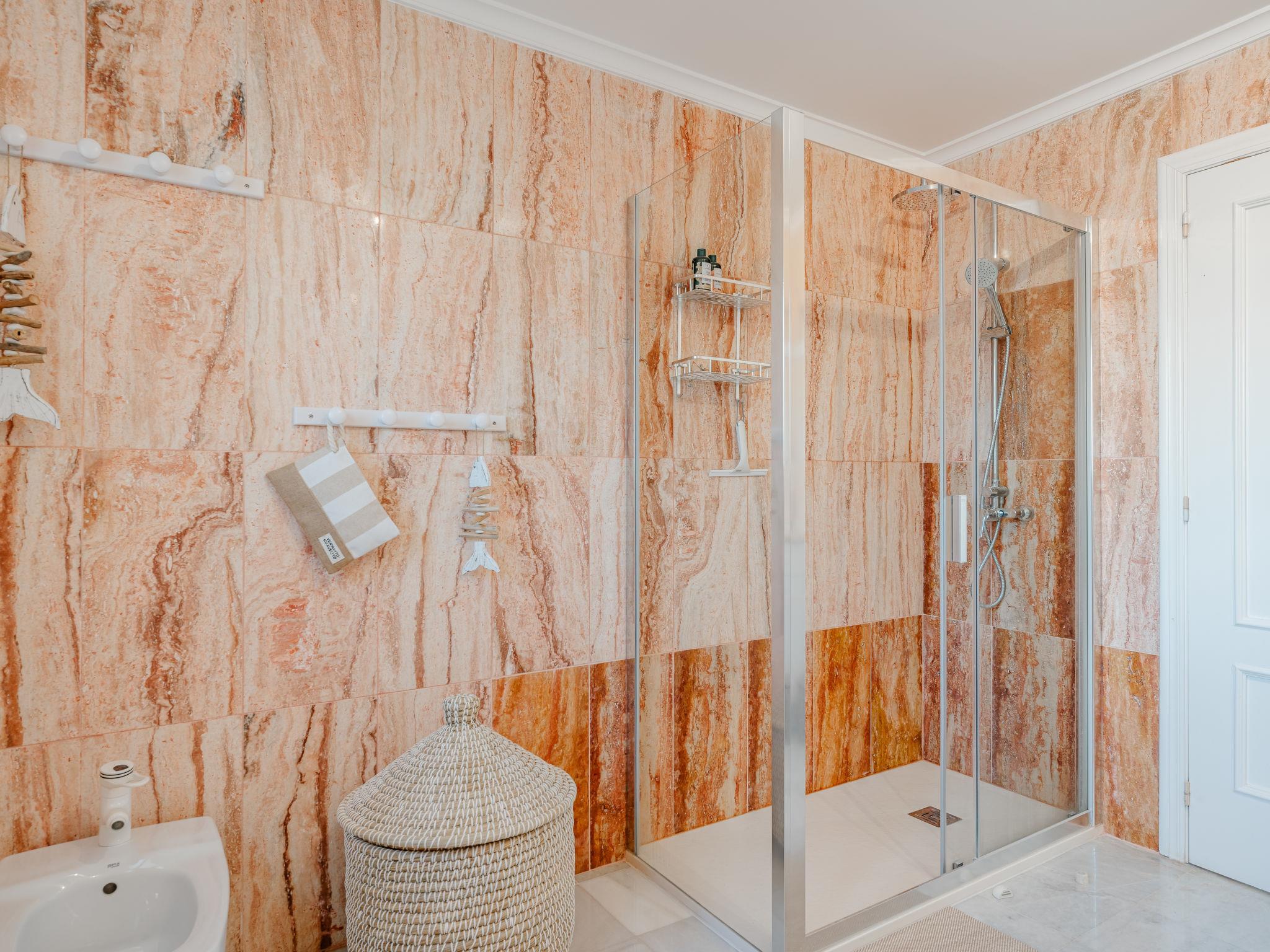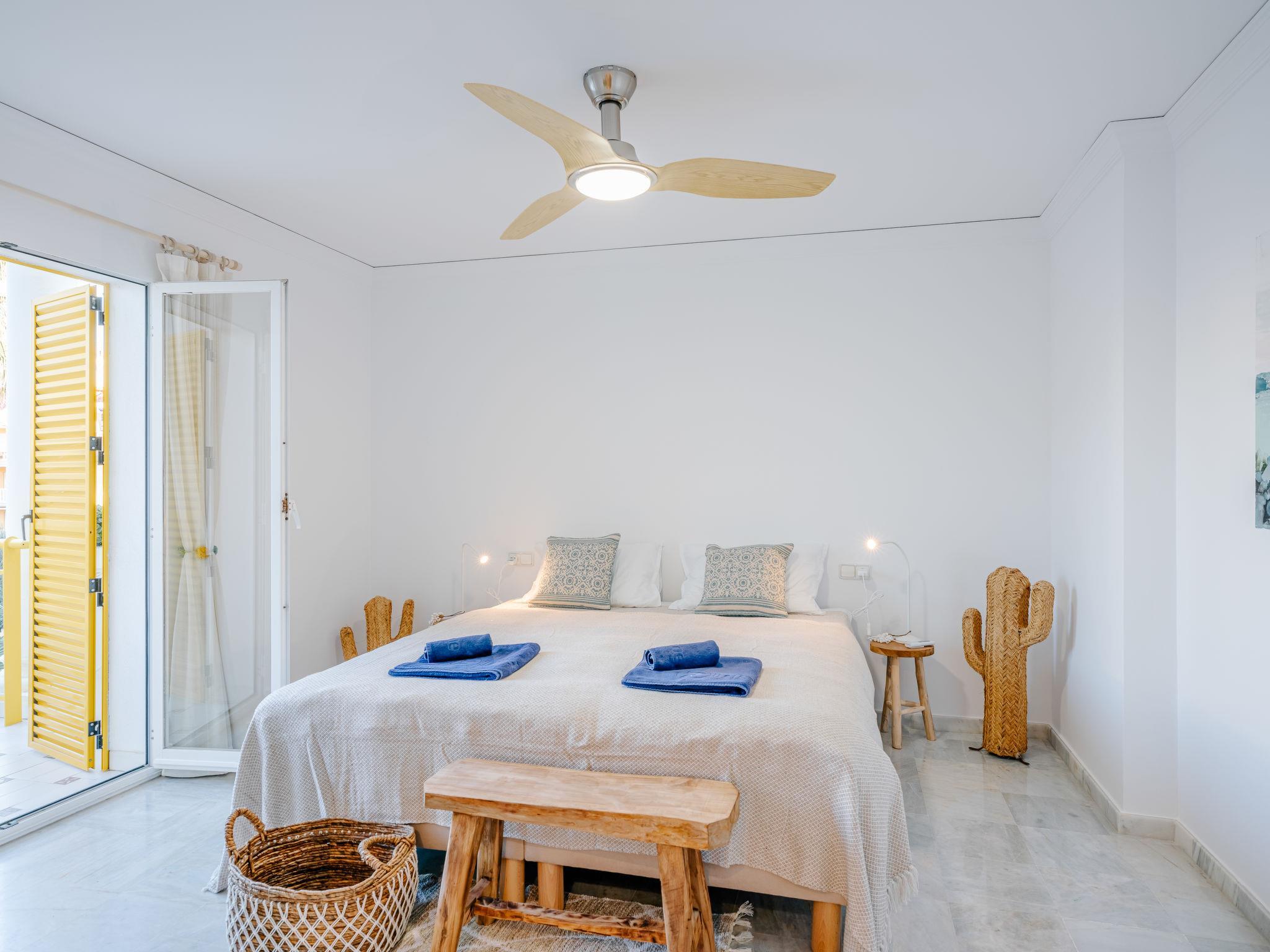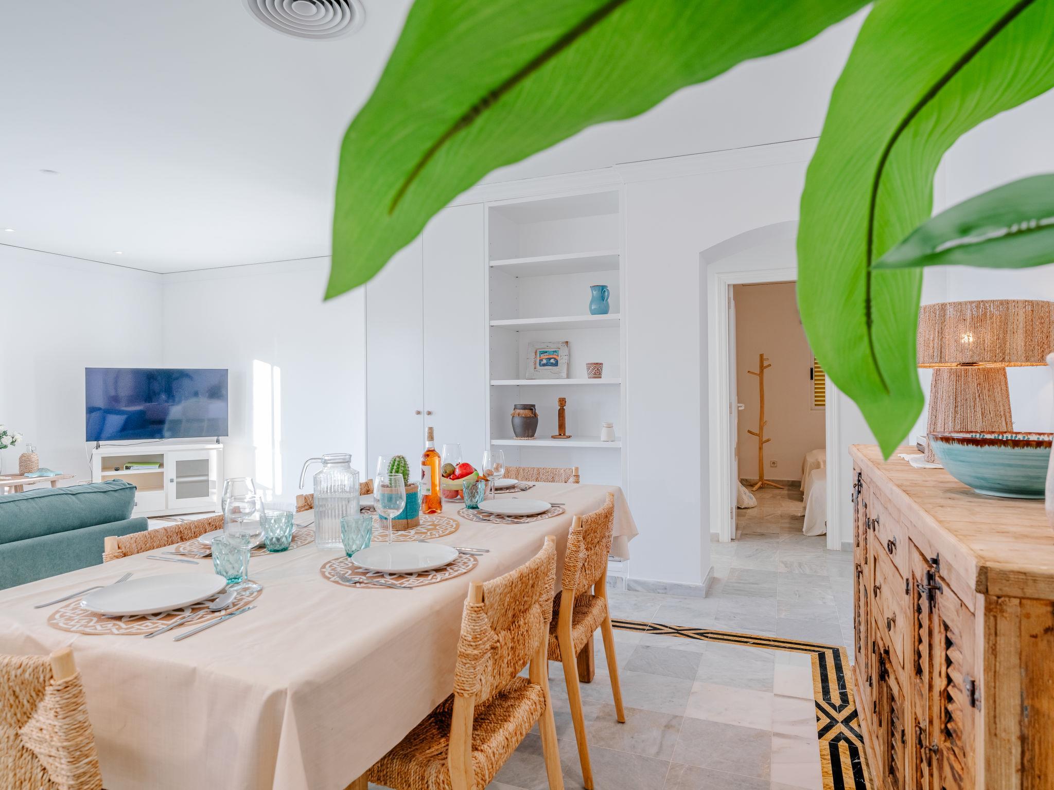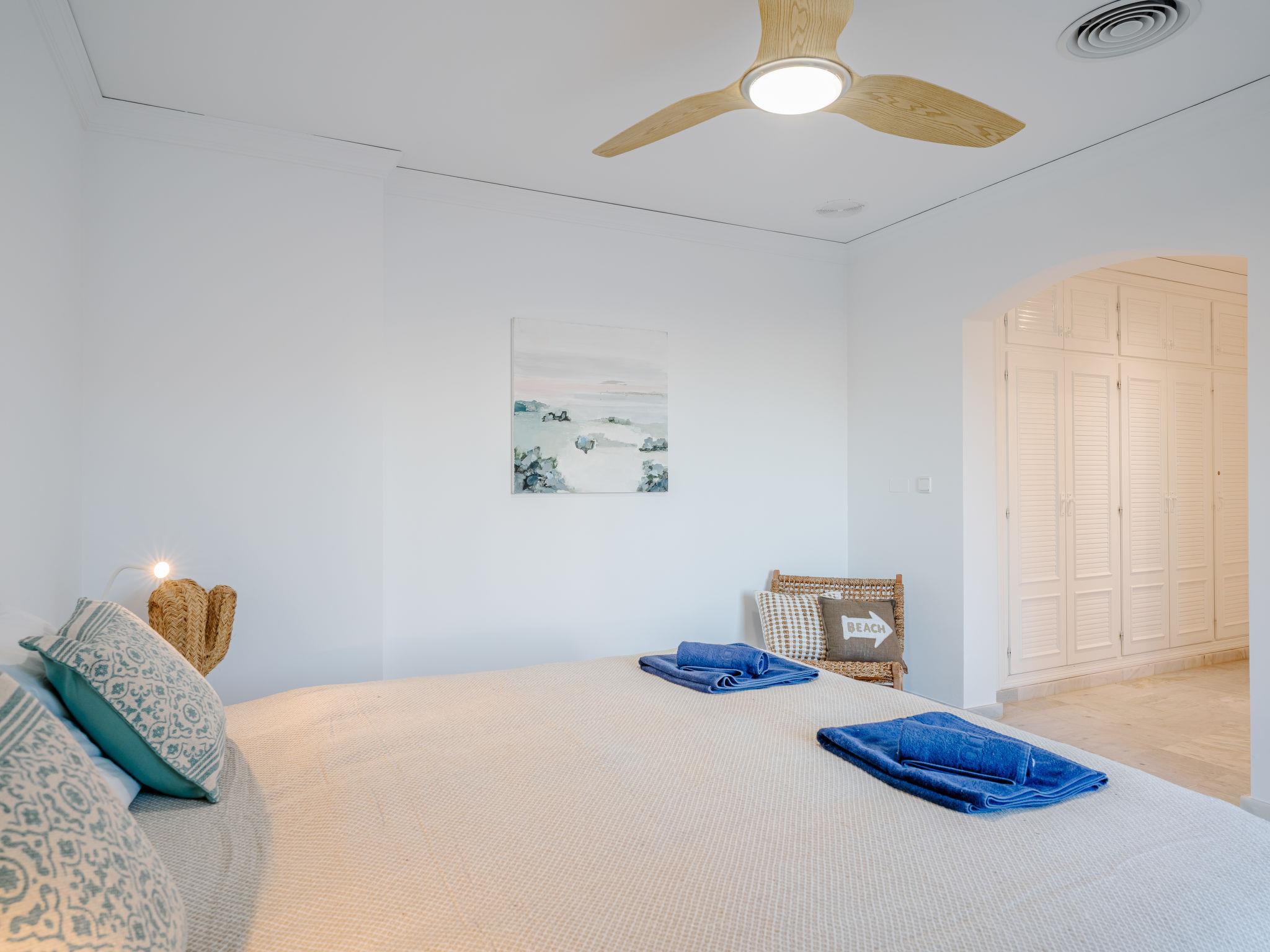 "L'Alberca Plus", 3-room apartment 120 m2 on 2nd floor. Spacious and bright, very beautiful and stylish furnishings: living/dining room with digital TV, air conditioning and forced-air heating. Exit to the terrace. 1 room with 1 french bed (180 cm, length 200 cm), shower/bidet/WC, air conditioning, fan and forced-air heating. Exit to the terrace. 1 room with 2 beds (90 cm, length 190 cm), air conditioning and forced-air heating. 1 room with 2 beds (90 cm, length 190 cm), air conditioning and forced-air heating. Kitchen (oven, dishwasher, 4 ceramic glass hob hotplates, toaster, kettle, microwave, freezer, electric coffee machine). Shower/bidet/WC. Large terrace, east facing position, small terrace. Marvellous view of the sea, the swimming pool and the garden. Facilities: washing machine, iron, children's high chair, baby cot, hair dryer. Internet (WiFi, free). Please note: non-smokers only. VT-484904-A // Reg. Nr.: ESFCTU00000304500043021800000000000000000VT-484904-A2