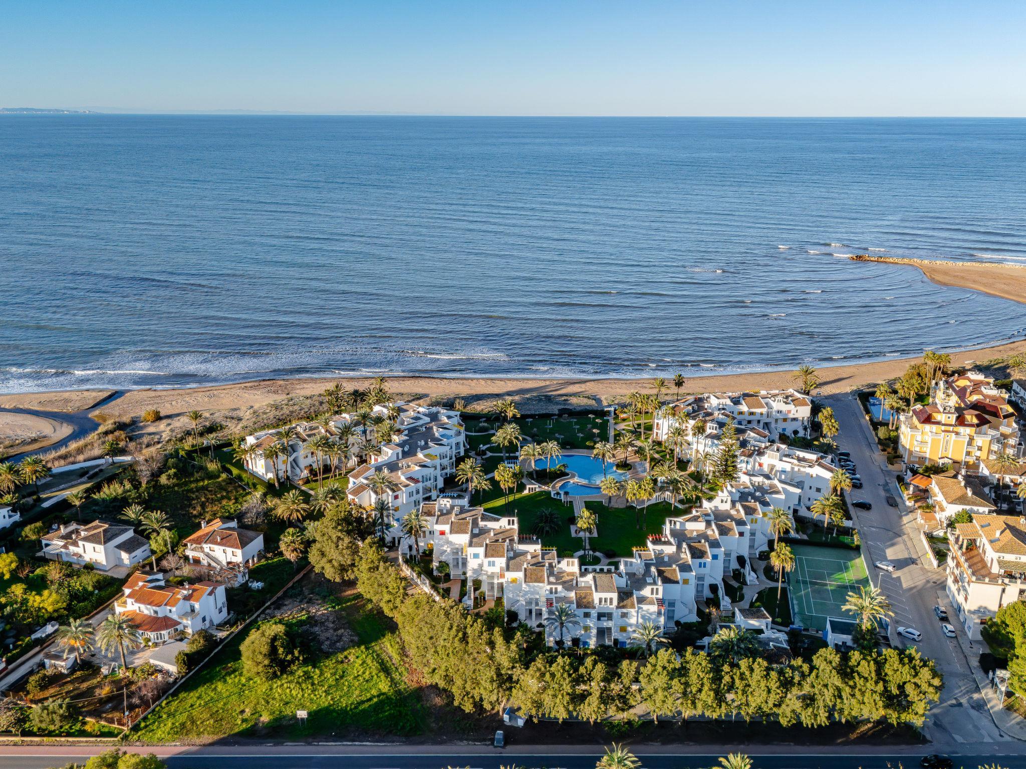 Very large, very beautiful, very comfortable apartment block "L'Alberca". Outside the resort, 6 km from the centre of Dénia, in a quiet, sunny position, 20 m from the sea, direct access to the beach. For shared use: beautiful, well-kept garden (fenced) with lawn and plants, swimming pool (20 x 20 m, depth 80 - 210 cm, seasonal availability: 01.Jan. - 31.Dec.) with internal staircase. Unconventional pool shape. Children's pool, outdoor shower, public parking on the road. Supermarket, restaurant, bar, café 250 m, bus stop 20 m, sandy beach "Els Molins" 20 m. Golf course (18 hole) 8 km, sailing school 50 m. Nearby attractions: Kunz Cycling Holidays 500 m. Please note: no lift. The owner does not accept any youth groups.