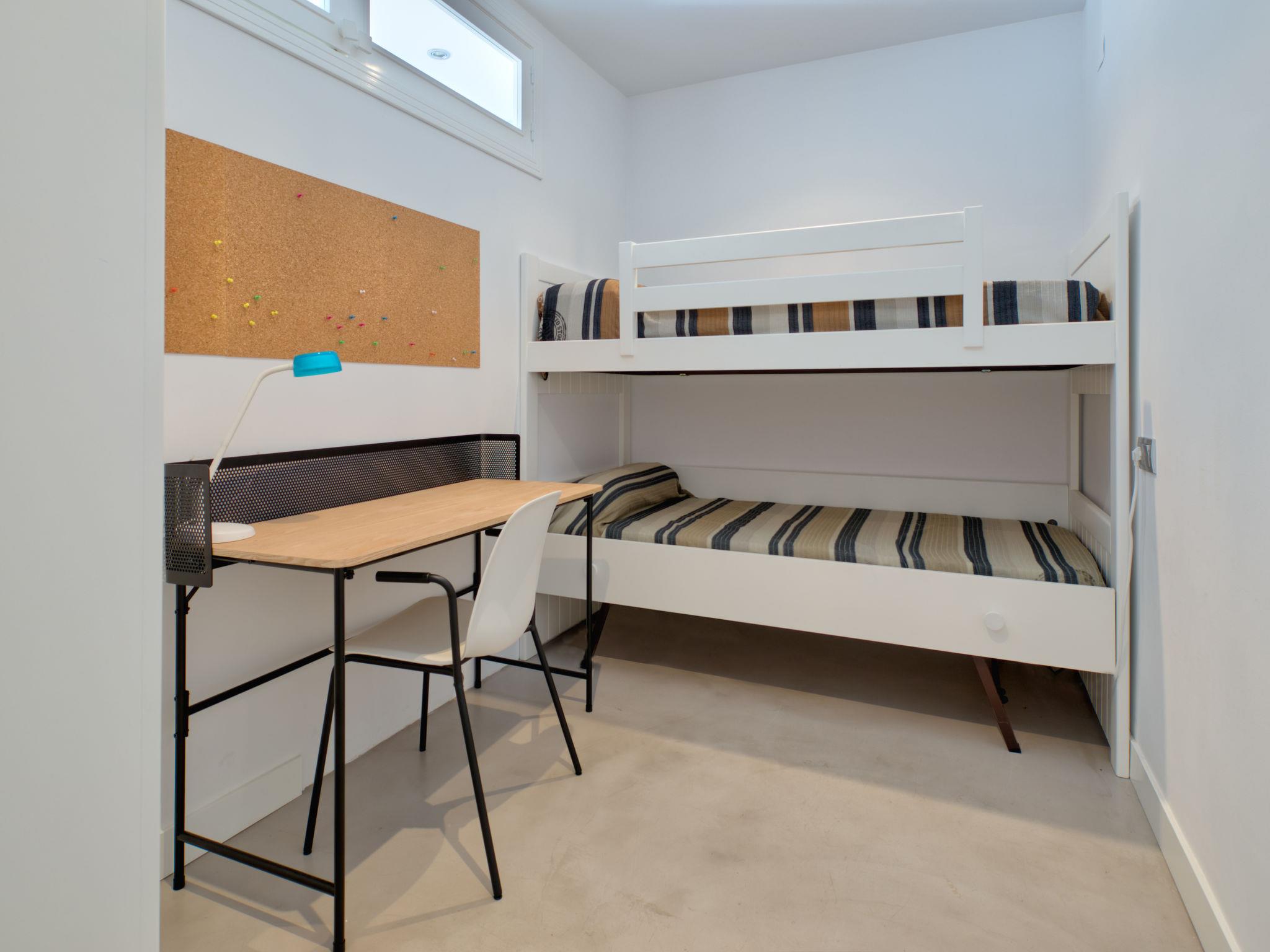 "La Senia", 4-room apartment 90 m2. Spacious and bright, very beautiful and stylish furnishings: living/dining room with satellite TV, air conditioning and forced-air heating. Exit to the terrace. 1 room with 1 french bed (180 cm, length 200 cm), bath/bidet/WC, air conditioning and forced-air heating. 1 room with 2 beds (90 cm, length 190 cm), fan. 1 room with 1 x 2 bunk beds (80 cm, length 190 cm), air conditioning and forced-air heating. Kitchen (oven, dishwasher, 3 induction hot plates, toaster, kettle, microwave, freezer, electric coffee machine). Shower/WC. Terrace 20 m2. Terrace furniture. Very beautiful view of the sea. Facilities: washing machine, iron, mosquito net, children's high chair, baby cot for up to 2 year olds, hair dryer. Internet (WiFi, free). Parking space n 22. VT-474009-A // Reg. Nr.: ESFCTU00000304500044651600000000000000000VT-474009-A5