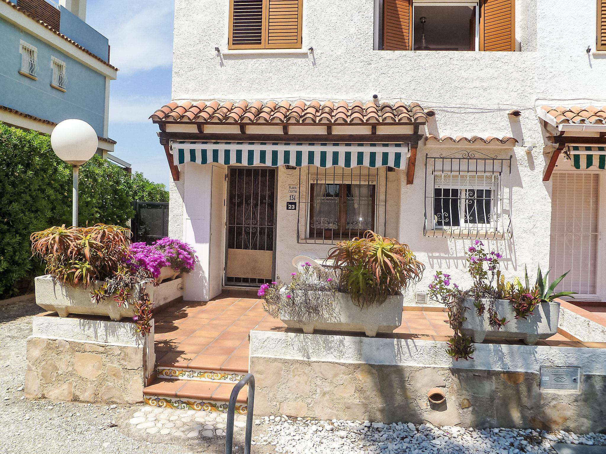 Cosy terraced house "Mimosa", 2 storeys. In the district of Playa Almadrava, 8.5 km from the centre of Dénia, 50 m from the sea. For shared use: beautiful, well-kept garden with lawn and plants, swimming pool (20 x 10 m, depth 230 - 80 cm, seasonal availability: 01.Jan. - 31.Dec.). Outdoor shower, public parking on the road. Supermarket, restaurant 150 m, bus stop 100 m, sandy beach 1.5 km, shingle beach 50 m. Golf course (18 hole) 11 km, tennis 8 km. Please note: not suitable for small children. The owner does not accept any youth groups.