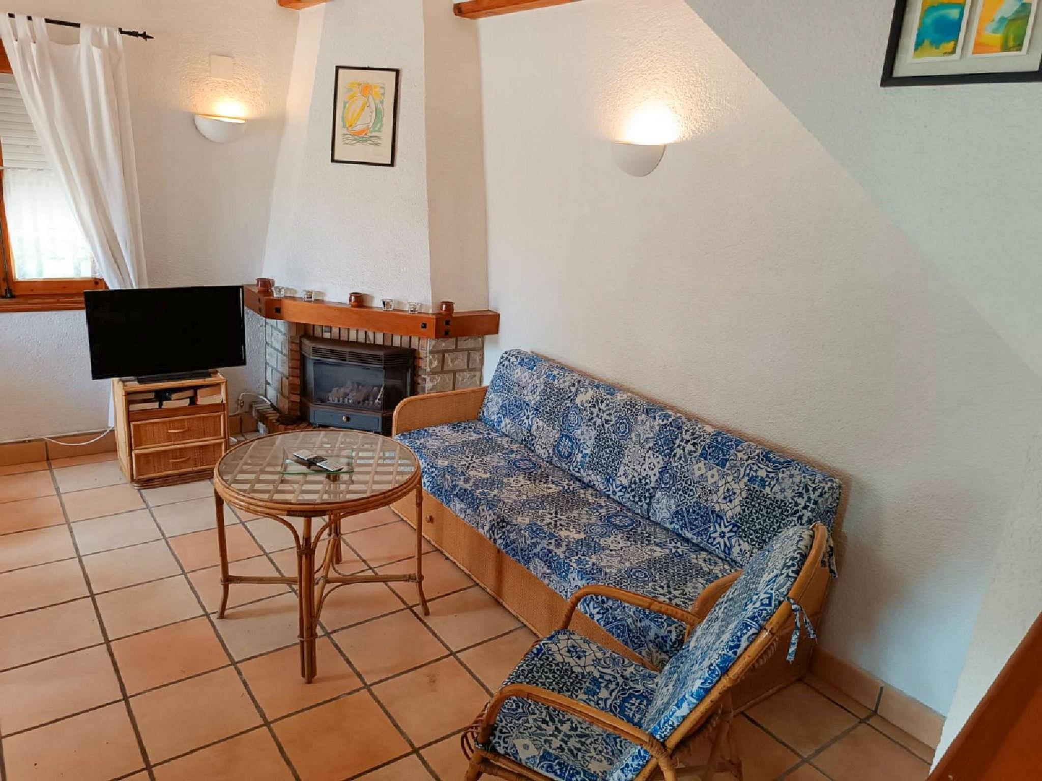 "Mimosa I", 3-room terraced house 70 m2 on 2 levels. Living/dining room with open-hearth fireplace, satellite TV, digital TV and electric heater. Exit to the garden, to the terrace, to the swimming pool. Open kitchen (oven, dishwasher, 4 ceramic glass hob hotplates, toaster, microwave, freezer, electric coffee machine). Upper floor: 1 room with 1 french bed (150 cm, length 190 cm), air conditioning and forced-air heating. Exit to the balcony. 1 double bedroom with 2 beds (90 cm, length 190 cm), air conditioning and forced-air heating. Shower/WC. Balcony 1 m2, terrace 24 m2. Terrace furniture. View of the swimming pool and the garden. Facilities: washing machine. Internet (WiFi, free). Please note: non-smokers only. AT-421813-A