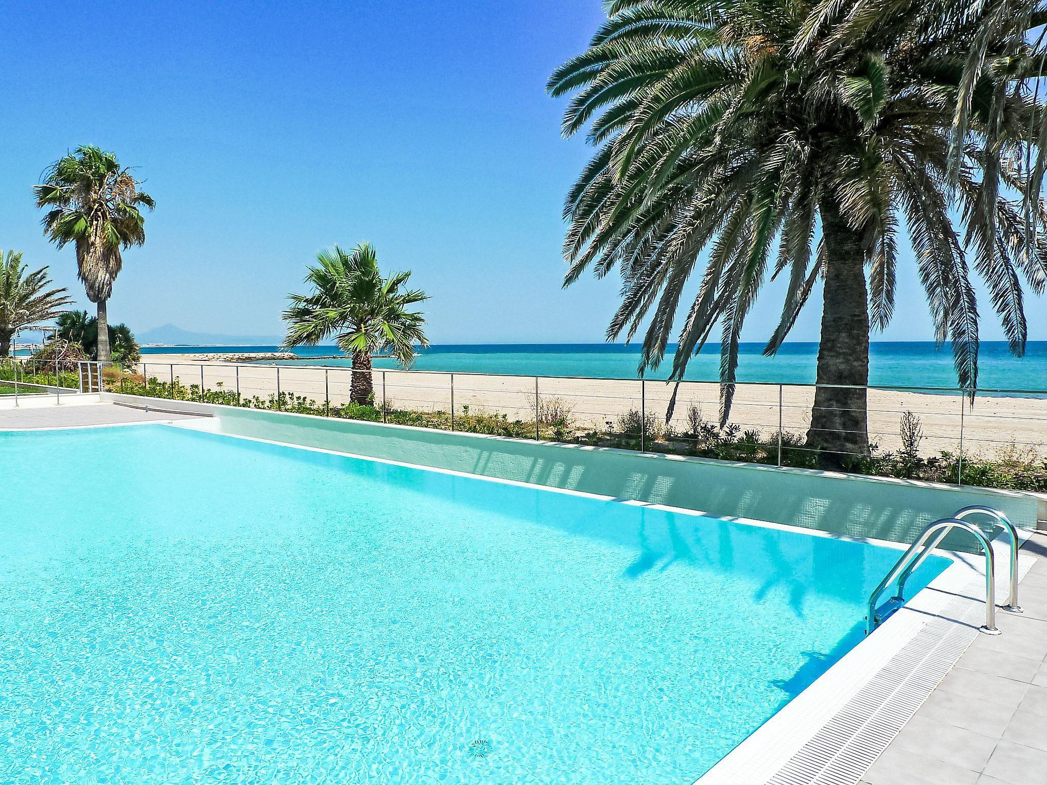 Modern, cosy, comfortable apartment block "Marenia", 3 storeys, built in 2011. 31 apartments in the residence. Playa 3 km from the centre of Els Poblets, 10 km from the centre of Dénia, 20 m from the sea, direct access to the beach. For shared use: garden with lawn and plants, swimming pool angular (16 x 7 m, seasonal availability: 01.Jan. - 31.Dec.) with salt water and internal staircase. Outdoor shower. In the house: lift. Communal covered parking. Supermarket 600 m, restaurant 600 m, bar, café 400 m, bus stop 200 m, sandy beach 20 m, shingle beach 50 m. Sports harbour 10 km, golf course (18 hole) 8 km. The owner does not accept any youth groups.