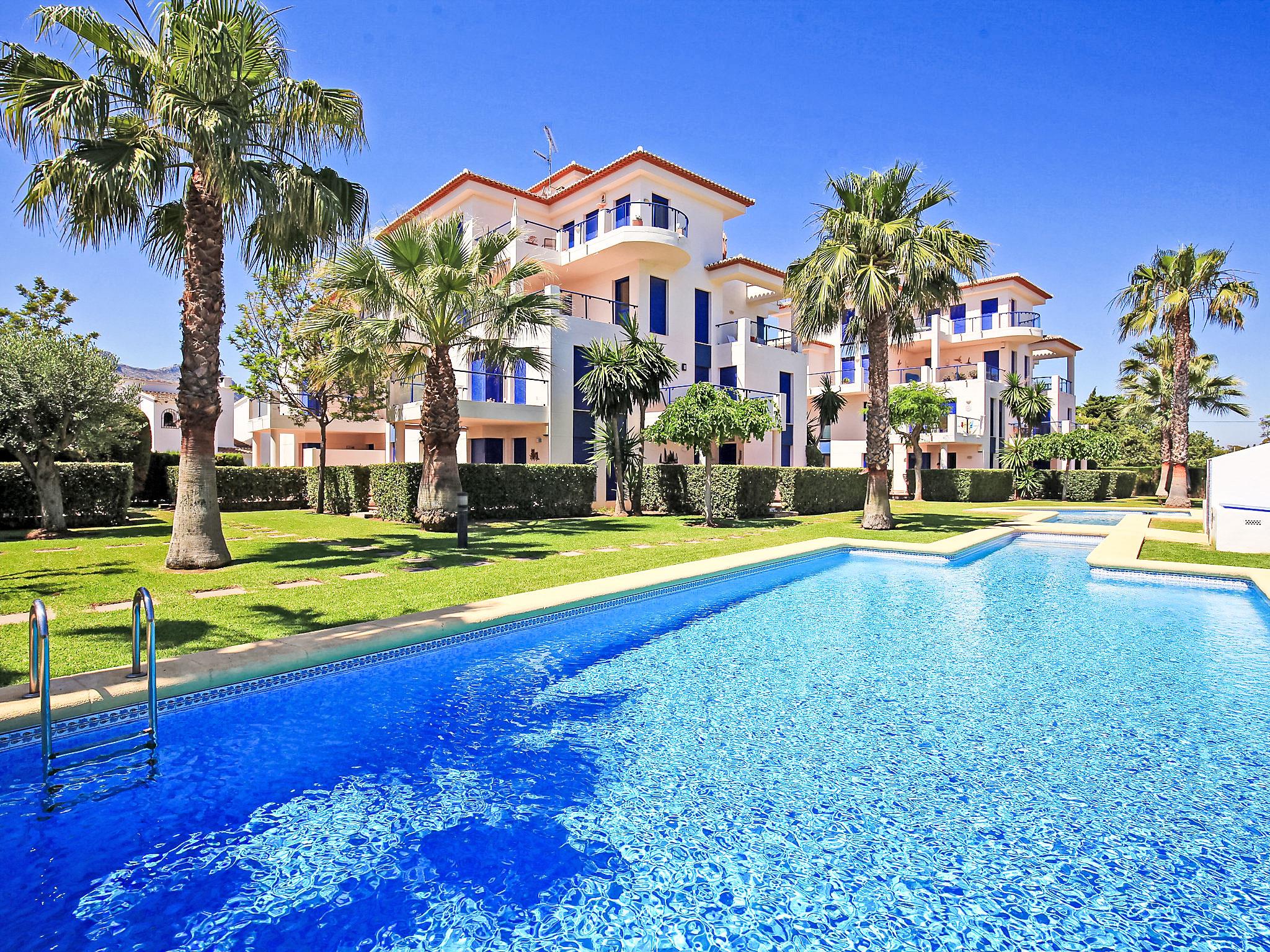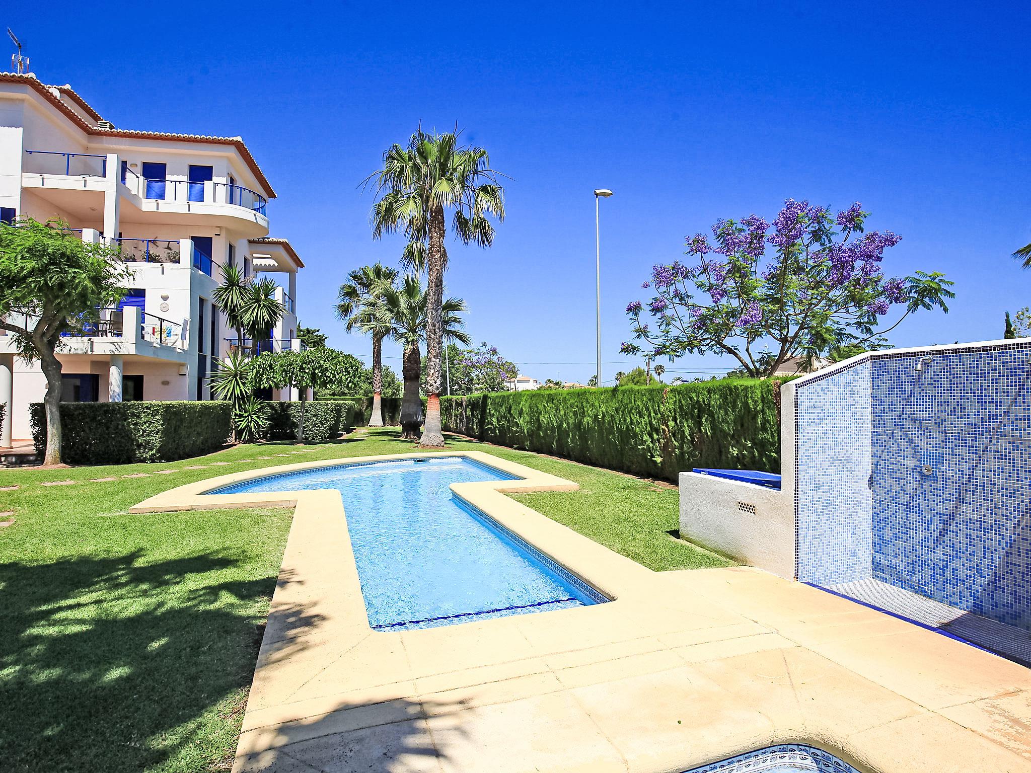 Apartment block "Alma del Sol", 3 storeys, built in 2002. 3 km from the centre of Els Poblets, 10 km from the centre of Dénia, 400 m from the sea, road to cross, on a main road. For shared use: well-kept garden with lawn and plants, swimming pool (8 x 14 m, depth 40 - 210 cm, seasonal availability: 01.Jan. - 31.Dec.) with internal staircase. Children's pool, outdoor shower, parking. Supermarket 900 m, restaurant 600 m, bar, café 600 m, bus stop 100 m, sandy beach 400 m, shingle beach 800 m. Golf course (18 hole) 8 km. Groups of teenagers on request only.