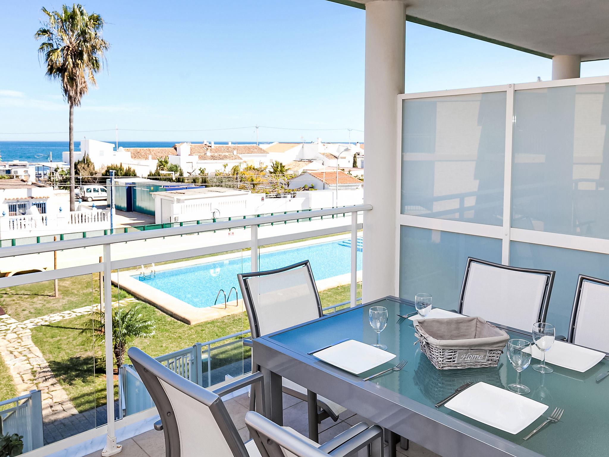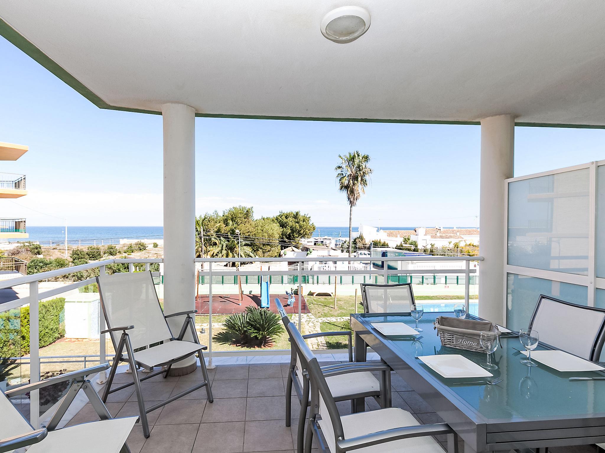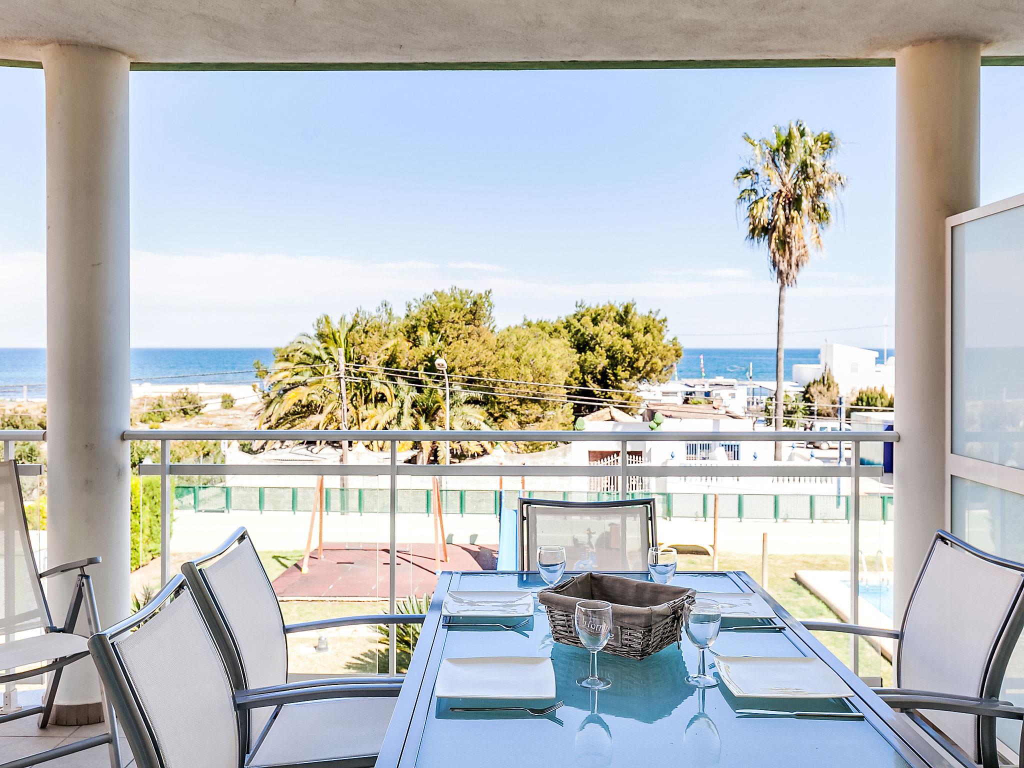 Les Deveses 11 km from Dénia: Very modern, luxurious apartment block "Marina Park". 3 km from the centre of Els Poblets, outside the resort, 11 km from the centre of Dénia, in the district Les Deveses, in a quiet, sunny position, 30 m from the sea, 30 m from the beach, in a cul-de-sac. For shared use: large garden (fenced) with lawn and trees, swimming pool angular (14 x 6 m, depth 80 - 210 cm, seasonal availability: 01.Jan. - 31.Dec.). Children's pool, outdoor shower. In the house: lift. Shop 100 m, restaurant 120 m, café 130 m, pub garden 100 m, bus stop 250 m, railway station 12 km. The owner does not accept any youth groups.