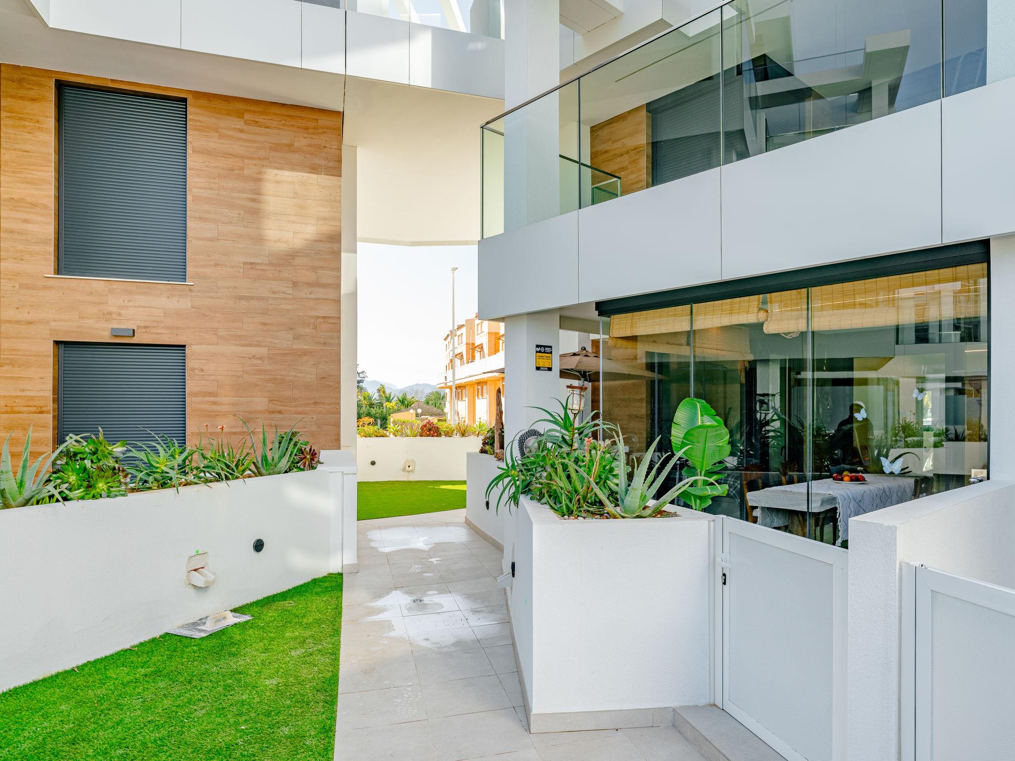 Large, modern, cosy apartment block "Villa Romana", built in 2024. In the resort 7 km from the centre of Denia, in a quiet, sunny position, 10 m from the sea, 10 m from the beach, direct access to the beach. For shared use: large, beautiful, well-kept garden, swimming pool angular (25 x 10 m, depth 40 - 180 cm, seasonal availability: 01.Jan. - 31.Dec.) with internal staircase. Children's pool, outdoor shower, children's playground, communal covered parking. Supermarket 1.8 km, restaurant 100 m, café 1 km, bus stop 140 m, sandy beach "Playa Els Molins" 10 m. Sports harbour 7 km, surf school 1.5 km, sailing school 7 km, tennis 6 km. The owner does not accept any youth groups.