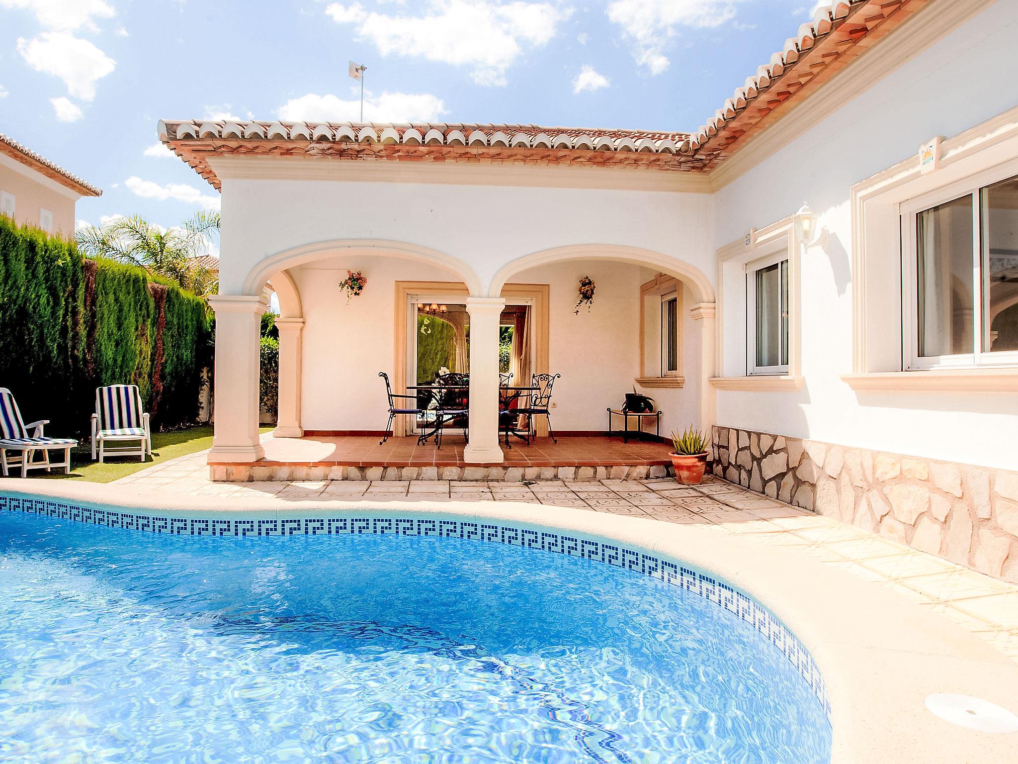 Cosy villa "Lyndy". In the district of Xironets 700 m from the centre of Els Poblets, 8 km from the centre of Denia, 1.7 km from the sea. Private: property 250 m2 (fenced), wildlife garden, swimming pool (8 x 4 m, seasonal availability: 01.Jan. - 31.Dec.) with internal staircase. Terrace (15 m2), garden furniture, barbecue, parking at the house. Supermarket, restaurant 700 m, bus stop 1 km, railway station 10 km, sandy beach 2.5 km, shingle beach 1.7 km. The owner does not accept any youth groups.