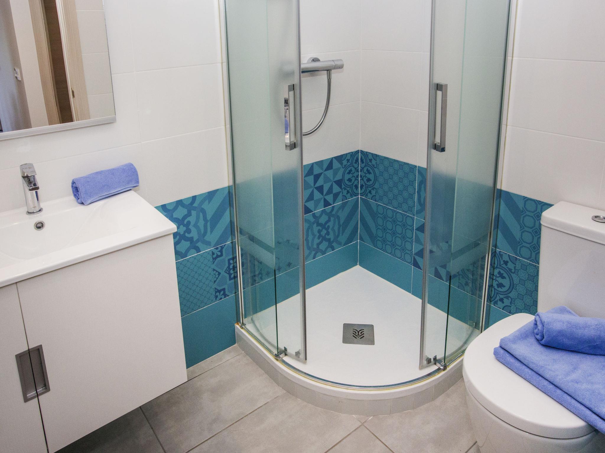 "Casa Jill", 4-room semi-detached house 85 m2. Spacious and bright, beautiful and cosy furnishings: living/dining room with satellite TV, digital TV, air conditioning and forced-air heating. Exit to the patio. 1 room with 1 french bed (150 cm, length 190 cm), air conditioning and forced-air heating. Exit to the patio. 1 room with 1 bed (90 cm, length 190 cm), air conditioning and forced-air heating. 1 room with 1 bed (90 cm, length 190 cm), air conditioning and forced-air heating. Open kitchen (oven, dishwasher, 3 ceramic glass hob hotplates, toaster, kettle, microwave, freezer, electric coffee machine). 2 showers/WC. Large terrace. Terrace furniture. Facilities: washing machine, iron, children's high chair, baby cot, hair dryer. Internet (WiFi, free). Parking. VT-475059-A // Reg. Nr.: ESFCTU00000304500105233400000000000000000VT-475059-A1