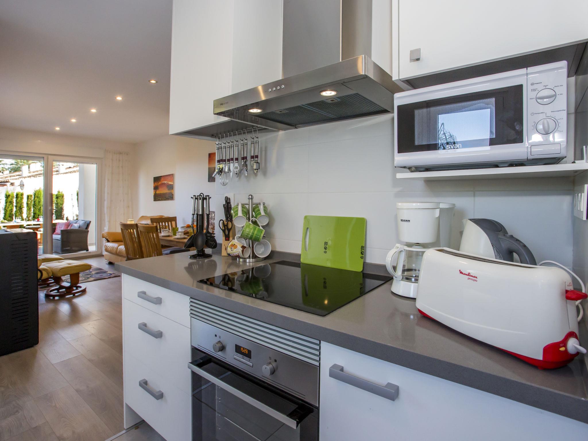Modern, beautiful, very comfortable semi-detached house "Jill", built in 2020. In the resort Els Poblets, in a quiet, sunny position, 1 km from the sea, 1 km from the beach. For shared use: swimming pool angular (10 x 5 m, depth 80 - 210 cm, seasonal availability: 01.Jan. - 31.Dec.). Children's pool, outdoor shower. Private: patio, pergola, garden furniture, parking on the premises. Shop 350 m, supermarket 1 km, restaurant 350 m, bar 200 m, bakery, café 350 m, bus stop 2 km, railway station 1.1 km, ferry 1.1 km, sandy beach "Playa Les Deveses" 1.5 km pebble beach "La Almadrava" 1 km. Sports harbour 10 km. The owner does not accept any youth groups.