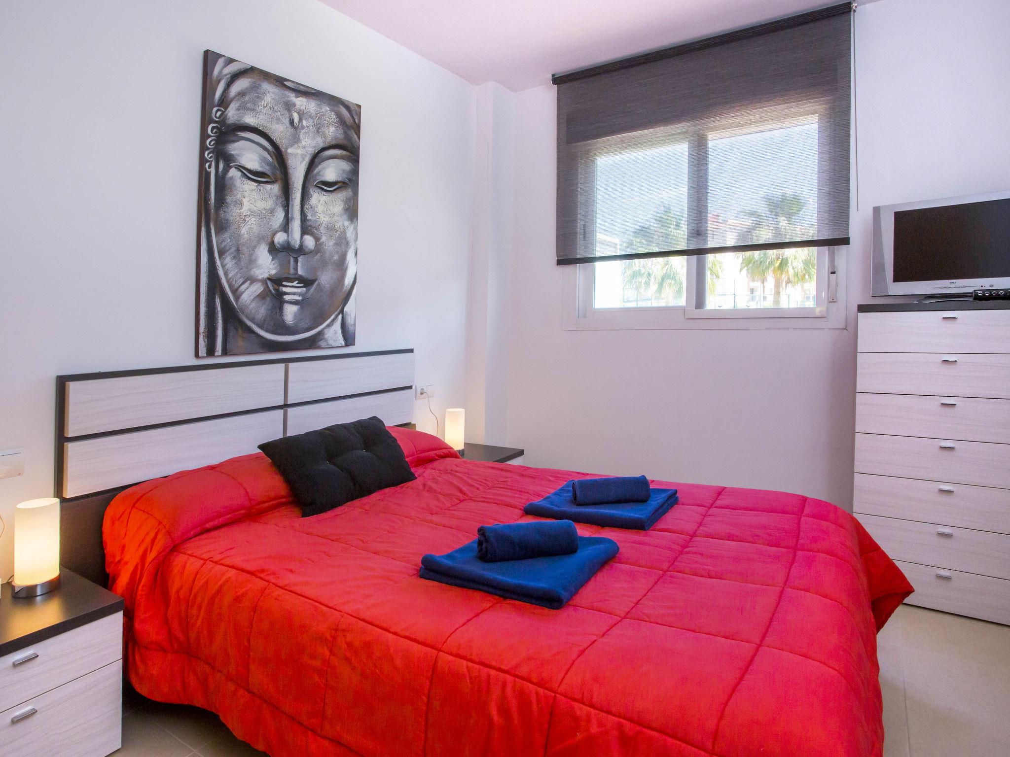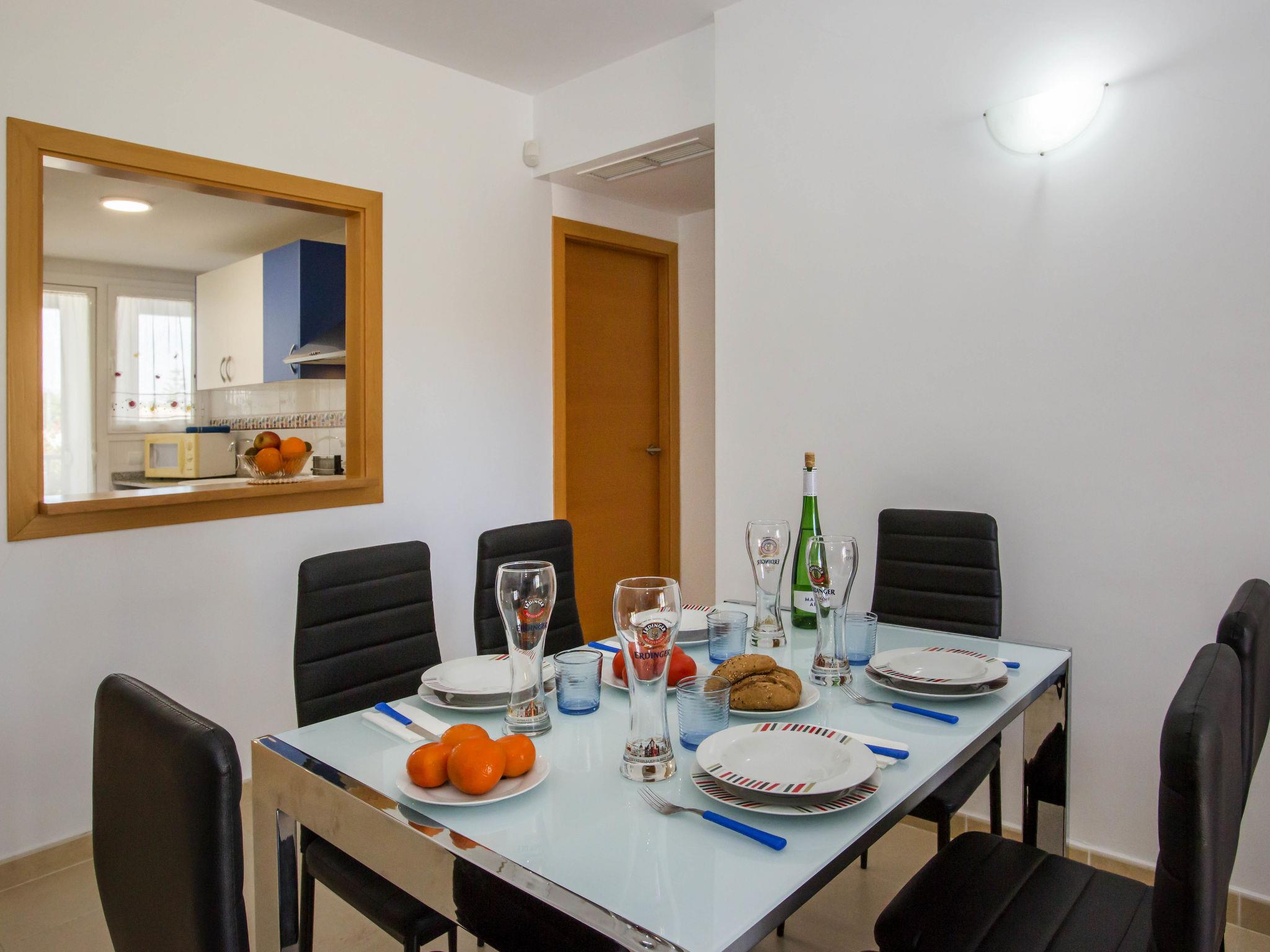 "Agua Blanca", 3-room apartment 70 m2. Spacious and bright, beautiful and cosy furnishings: living/dining room with digital TV, air conditioning and forced-air heating. Exit to the terrace, to the swimming pool. 1 room with 1 french bed (150 cm, length 200 cm), bath/WC, air conditioning and forced-air heating. 1 room with 2 beds (90 cm, length 200 cm), air conditioning and forced-air heating. Kitchen (oven, dishwasher, 4 ceramic glass hob hotplates, toaster, kettle, microwave, freezer, electric coffee machine, Capsules for coffee machine (Nespresso) extra). Shower/WC. Terrace. Terrace furniture, covered balcony. Facilities: washing machine, iron, children's high chair, baby cot, hair dryer. Internet (WiFi, free). Garage space n 32. Please note: TV only ES. VT-509791A // Reg. Nr.: ESFCTU000003045000867687000000000000000000VT-509791A5