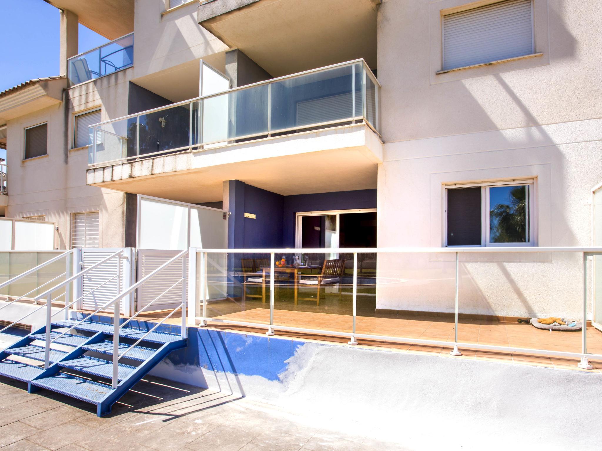 Cosy, comfortable apartment block "Agua Blanca". In the district of El Vergel, in a quiet, sunny position, 800 m from the sea, from the beach. For shared use: large garden with lawn, swimming pool (37 x 15 m, depth 40 - 210 cm, seasonal availability: 01.Jan. - 31.Dec.) with internal staircase. Unconventional pool shape. Children's pool, outdoor shower. In the house: lift. Communal covered parking. Supermarket 650 m, restaurant 400 m, bar 450 m, tram 1.7 km, bus stop 1.2 km, ferry 1.3 km, sandy beach "Les Deveses" 800 m. Tennis 800 m. The owner does not accept any youth groups.