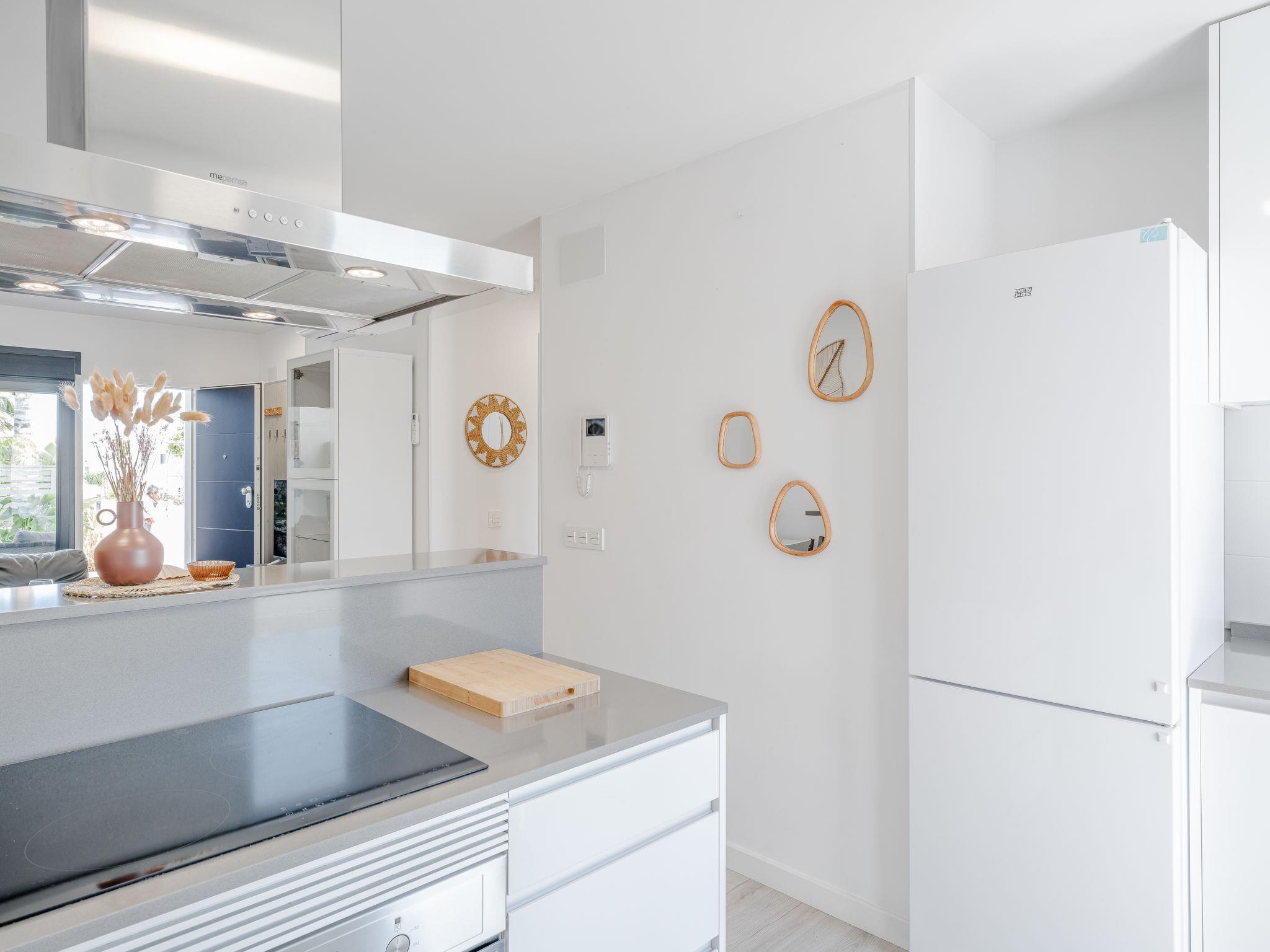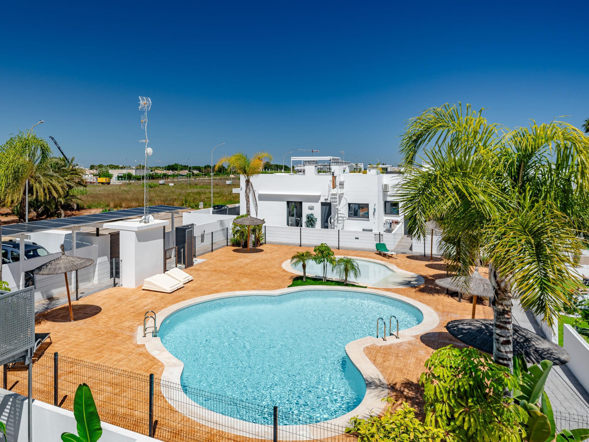 Modern, beautiful semi-detached house "Vergel Beach", built in 2024. In the resort El Vergel, in a quiet, sunny position, 1.2 km from the sea, 1.2 km from the beach. For shared use: swimming pool (19 x 9 m, depth 40 - 180 cm, seasonal availability: 01.Jan. - 31.Dec.) with internal staircase. Unconventional pool shape. Outdoor shower, parking on the premises. Shop 600 m, supermarket 550 m, restaurant, café 450 m, bus stop 2 km, sandy beach 1.2 km. Sports harbour 10 km, golf course (18 hole) 6.5 km, surf school 2 km, sailing school 2 km. Nearby attractions: La Sella Golf - 27 Holes. Please note: no lift. The owner does not accept any youth groups.