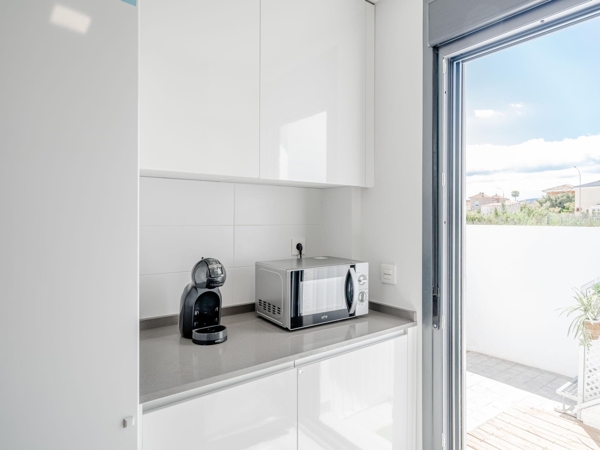 "Vergel Beach", 3-room semi-detached house 80 m2. Spacious and bright, very beautiful and stylish furnishings: living/dining room with satellite TV, air conditioning and forced-air heating. Exit to the terrace, to the swimming pool. 1 room with 1 french bed (150 cm, length 200 cm), shower/WC, air conditioning and forced-air heating. 1 room with 1 double bed (2 x 90 cm, length 200 cm), air conditioning and forced-air heating. Open kitchen (oven, dishwasher, 3 induction hot plates, toaster, kettle, microwave, freezer, electric coffee machine, Capsules for coffee machine (Dolce Gusto) extra) with air conditioning and forced-air heating. Exit to the terrace. Shower/WC. 2 large terraces. Terrace furniture, deck chairs, covered balcony, sitting area. View of the mountains, the valley and the swimming pool. Facilities: washing machine, iron, children's high chair, baby cot, hair dryer. Internet (WiFi, free). Parking space n 3. CV-VUT0519380-A