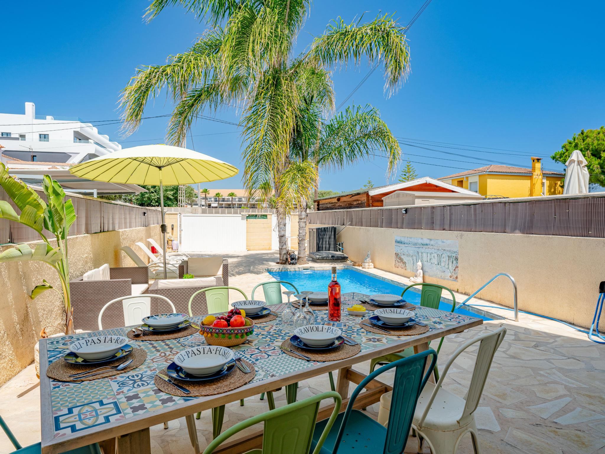 Simple, comfortable terraced house "Fa", 2 storeys. In the district of Les Marines, in the resort 13 km from the centre of Denia, in a quiet, sunny position, 200 m from the sea, 200 m from the beach, road to cross. Private: swimming pool (6 x 2 m, depth 40 - 160 cm, seasonal availability: 01.Jan. - 31.Dec.) with internal staircase. Garden furniture. Supermarket 3.8 km, restaurant, café 350 m, bus stop 250 m, sandy beach "Platja Santa Ana" 200 m. Surf school 250 m, tennis 3.7 km. The owner does not accept any youth groups.