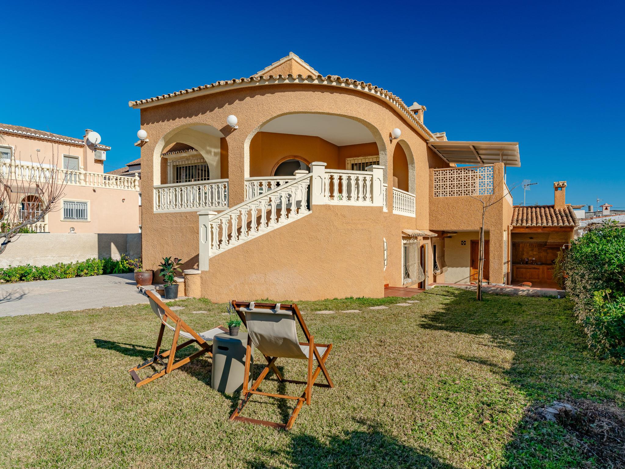 Beautiful, comfortable house "Riu Segura". In the district of Les Marines, on the outskirts, 13 km from the centre of Denia, in a quiet, sunny position, 100 m from the sea, 100 m from the beach. Private: beautiful, well-kept garden with lawn. Garden furniture, barbecue. Stepped path (10 steps) to the house. Parking on the premises. Supermarket 6 km, shopping centre, restaurant, café 400 m, bus stop 90 m, sandy beach 100 m. Sports harbour 13 km, marina 13 km, surf school 2.4 km. The owner does not accept any youth groups.