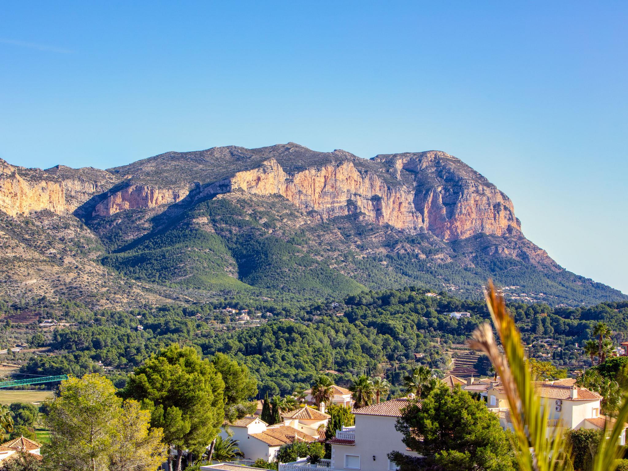 La Sella 7 km from Dénia: Very large, very beautiful, cosy villa "Villa Alta Vista", surrounded by trees. Outside the resort, 8 km from the centre of Dénia, in a quiet, sunny position on a slope, residential area (villas), traffic calmed area, 6 km from the sea, 6 km from the beach. Private: swimming pool angular (4 x 10 m, depth 90 - 210 cm, seasonal availability: 01.Jan. - 31.Dec.). Shower/WC in the pool area, pool house with fridge, shower, WC and cooking stove, patio, arbour, pergola, terrace, garden furniture, barbecue house, parking (for 2 cars) on the premises. Restaurant 2 km, bar 2 km, café 2 km, bus stop 5.9 km, railway station 10 km, ferry 10.2 km. Sports harbour 10 km, marina 10 km, golf course (18 hole) 5 km, surf school 10 km, sailing school 10 km, tennis 2 km. Nearby attractions: La Sella Golf 5 km. The owner does not accept any youth groups. Please note: the complex has night security. Neighbourhood highly sensitive to noise. Quietness and good behaviour expected.