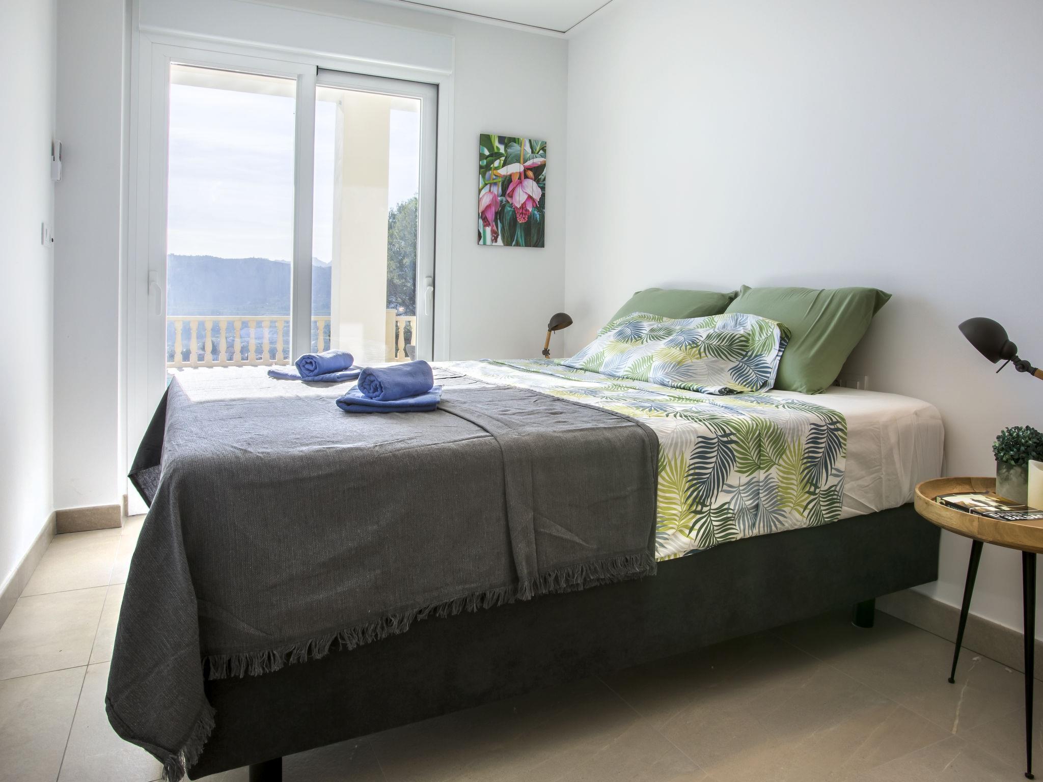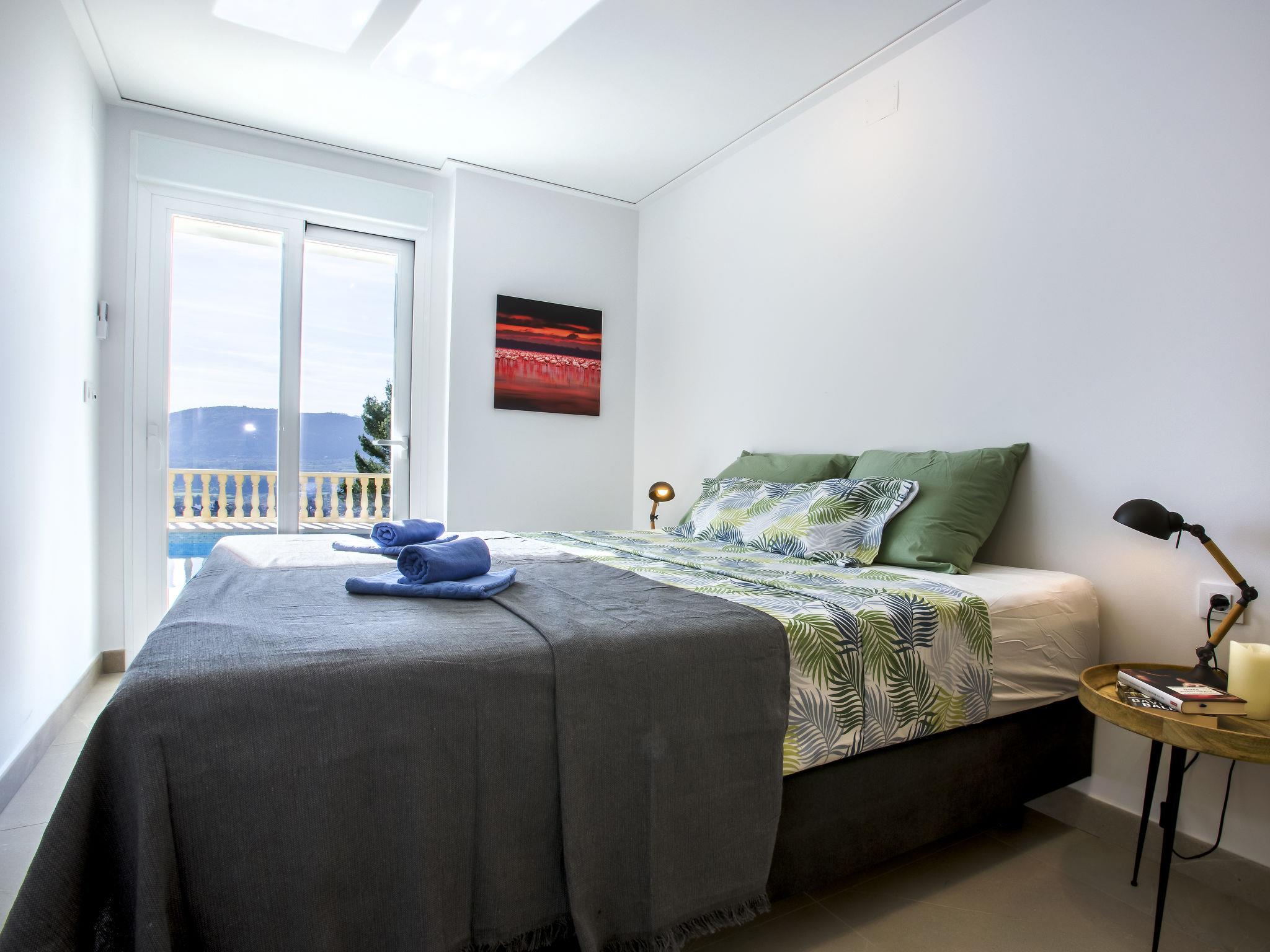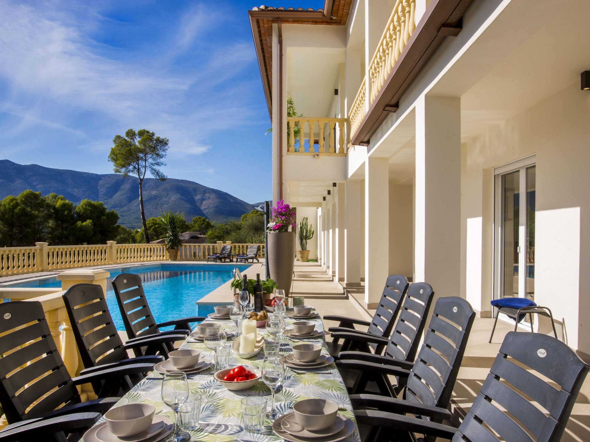 "Villa Cara Mull Alcalalí", 9-room villa 350 m2 on 2 levels. Spacious and bright, very beautiful and luxurious furnishings: living/dining room with satellite TV. Exit to the terrace, pergola. 1 room 35 m2 with 1 french bed (180 cm, length 200 cm), bath/shower/WC and double hand-basin. Exit to the terrace. 2 rooms, each room with 1 french bed (180 cm, length 200 cm). Exit to the terrace. Large, open kitchen (oven, dishwasher, 3 induction hot plates, toaster, kettle, microwave, freezer, electric coffee machine). Shower, sep. WC. On the lower ground floor: living/dining room with satellite TV. Exit to the terrace, to the swimming pool. 1 room with 1 french bed (180 cm, length 200 cm), shower/WC. Exit to the terrace, to the swimming pool. 3 rooms, each room with 1 french bed (180 cm, length 200 cm). Exit to the terrace, to the swimming pool. Large, open kitchen (oven, dishwasher, 4 induction hot plates, toaster, microwave, freezer, electric coffee machine). Sep. WC, bath/shower/WC. 2 large terraces. Terrace furniture, barbecue, deck chairs, sitting area. Marvellous view of the mountains, the valley and the countryside. Facilities: washing machine, dryer, safe, iron, children's high chair, baby cot, hair dryer. Internet (WiFi, free). Maximum 1 pet/ dog allowed. TV with Smart TV. VT-513471-A // Reg. Nr.: ESFCTU00000304900046121000000000000000000VT-513471-A0