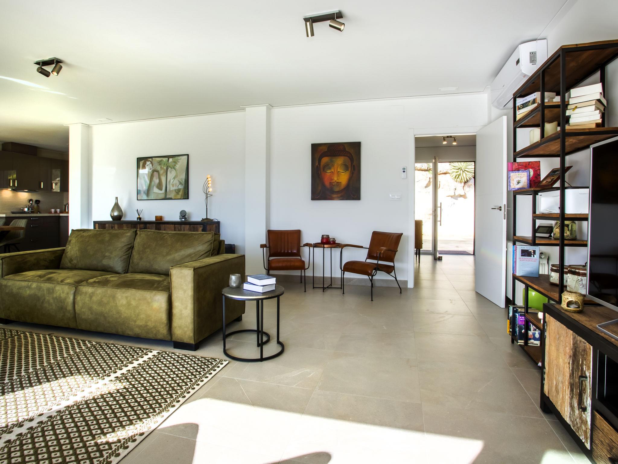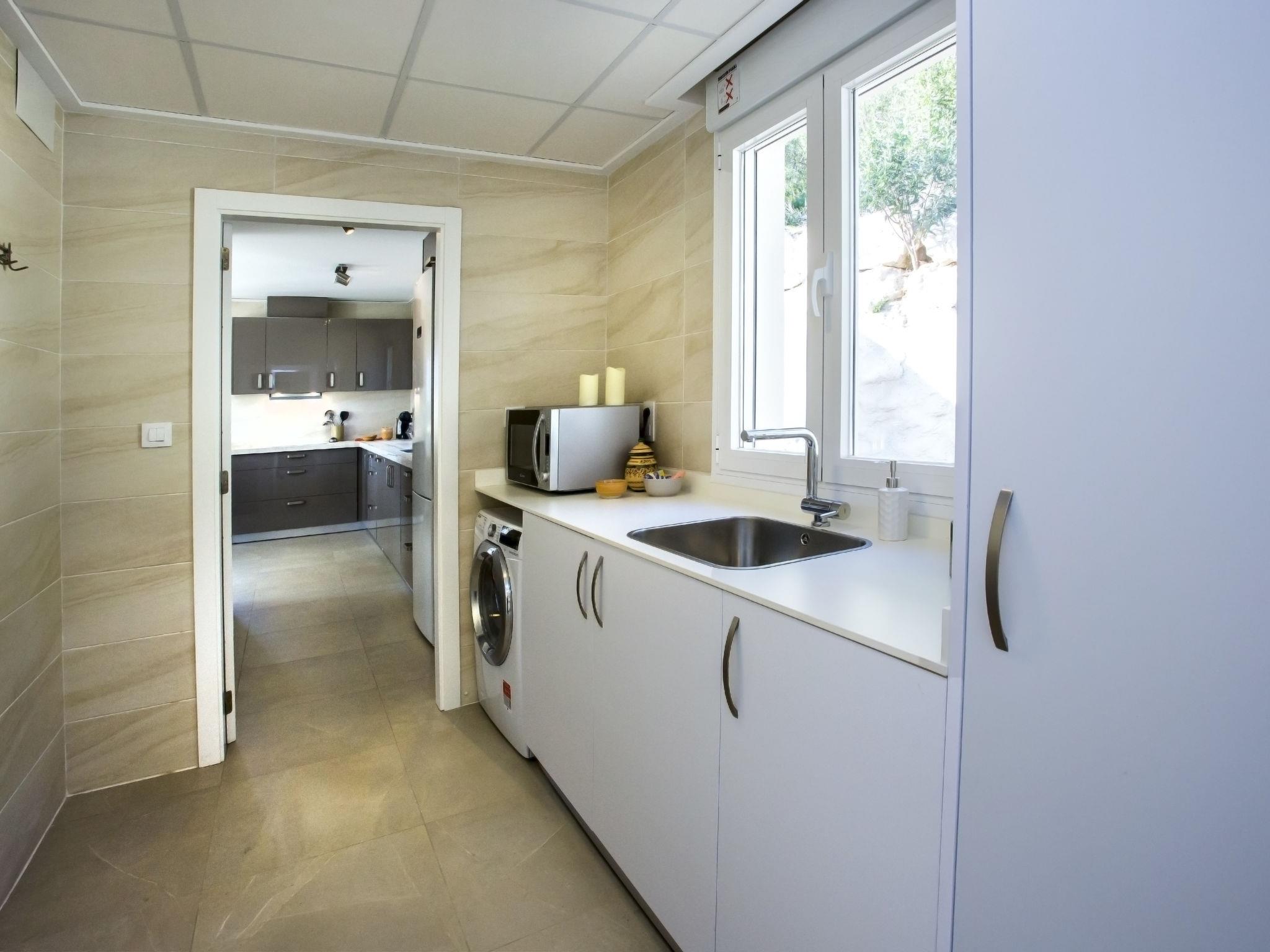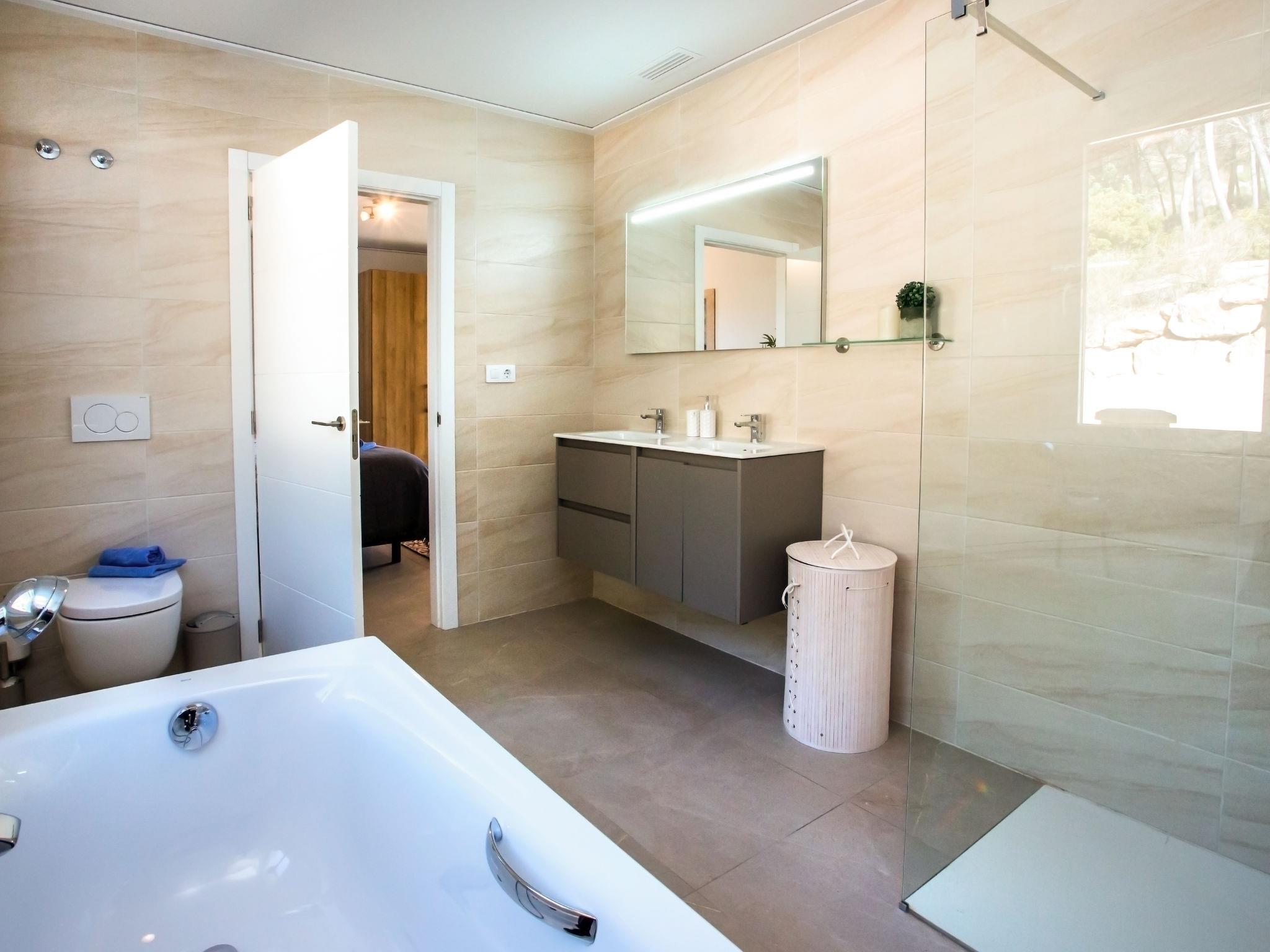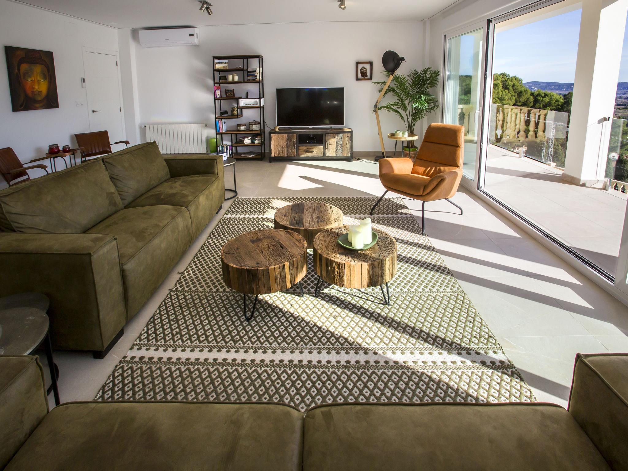 "Villa Cara Mull Alcalalí", 9-room villa 350 m2 on 2 levels. Spacious and bright, very beautiful and luxurious furnishings: living/dining room with satellite TV. Exit to the terrace, pergola. 1 room 35 m2 with 1 french bed (180 cm, length 200 cm), bath/shower/WC and double hand-basin. Exit to the terrace. 2 rooms, each room with 1 french bed (180 cm, length 200 cm). Exit to the terrace. Large, open kitchen (oven, dishwasher, 3 induction hot plates, toaster, kettle, microwave, freezer, electric coffee machine). Shower, sep. WC. On the lower ground floor: living/dining room with satellite TV. Exit to the terrace, to the swimming pool. 1 room with 1 french bed (180 cm, length 200 cm), shower/WC. Exit to the terrace, to the swimming pool. 3 rooms, each room with 1 french bed (180 cm, length 200 cm). Exit to the terrace, to the swimming pool. Large, open kitchen (oven, dishwasher, 4 induction hot plates, toaster, microwave, freezer, electric coffee machine). Sep. WC, bath/shower/WC. 2 large terraces. Terrace furniture, barbecue, deck chairs, sitting area. Marvellous view of the mountains, the valley and the countryside. Facilities: washing machine, dryer, safe, iron, children's high chair, baby cot, hair dryer. Internet (WiFi, free). Maximum 1 pet/ dog allowed. TV with Smart TV. VT-513471-A // Reg. Nr.: ESFCTU00000304900046121000000000000000000VT-513471-A0