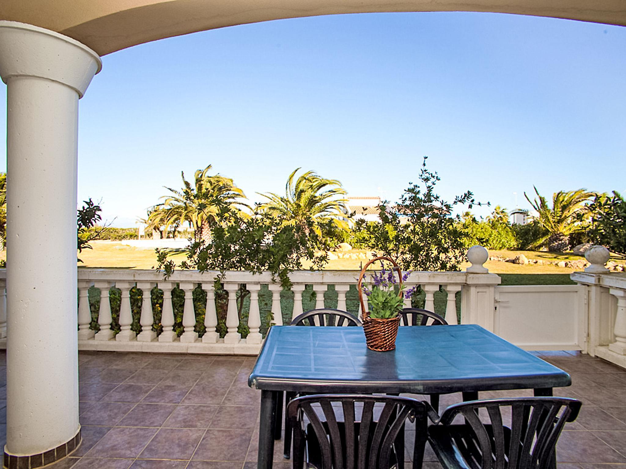 Riumar 10 km from Deltebre: Child friendly, beautiful apartment block "Royal Delta", 2 storeys, surrounded by fields. 20 apartments in the residence. In a quiet, sunny position, 50 m from the sea, 50 m from the beach, direct access to the beach. For shared use: beautiful garden with lawn, swimming pool angular (20 x 10 m, seasonal availability: 01.Jan. - 31.Dec.) with internal staircase. Children's pool, outdoor shower, tennis, barbecue. In the house: WiFi. Parking on the premises. Shop, restaurant 100 m, bus stop "Riumar" 1 km. Please note: baby equipment on request. Groups of teenagers on request only. The photograph shows a typical example.